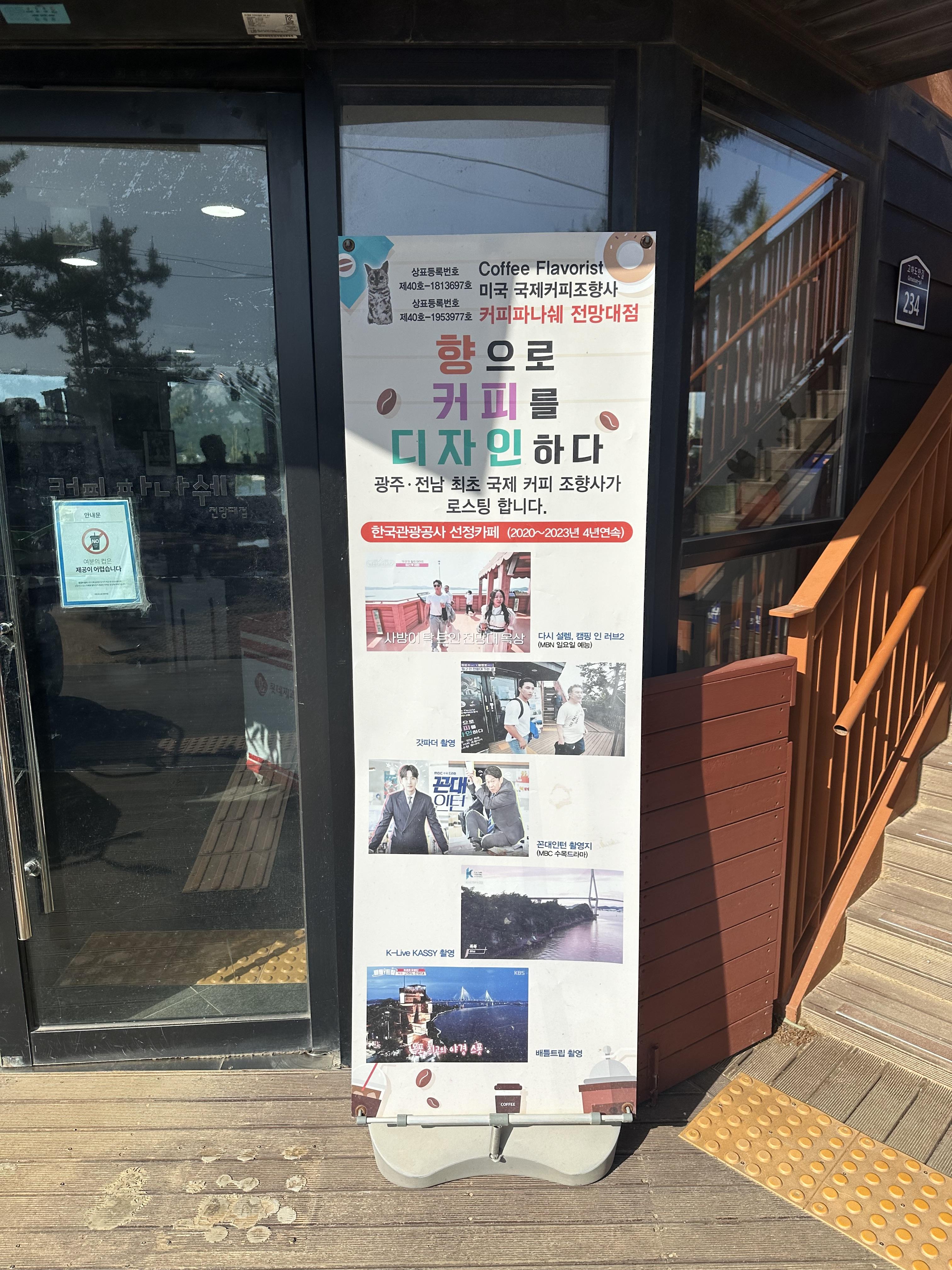 고하도 1층에는 미국 국제커피조향사 커피파나쉐 전망대점이 있습니다. 광주와 전남 최초 국제 커피 조향사가 로스팅을 한다는 곳입니다. 커피와 음료 다양한 음식 간식류를 판매하고 있습니다. 2020년 2023년까지 한국광공사 선정카페로 4년 연속 등록된 카페라고 합니다. 이 외에도 다양한 드라마와 예능이 출연을 했는데요. 2020년에 재미있게봤던 배우 박해진과 배우 김응수가 직장상사와 부하직원에서 역할이 체인지 되어 꼰대 인턴이라는 재미있는 드라마였는데요. 당시에는 몰랐는데 꼰대인턴에서 나왔던 카페가 고하도에 있는 커피파나쉐 전망대점이라고 합니다.