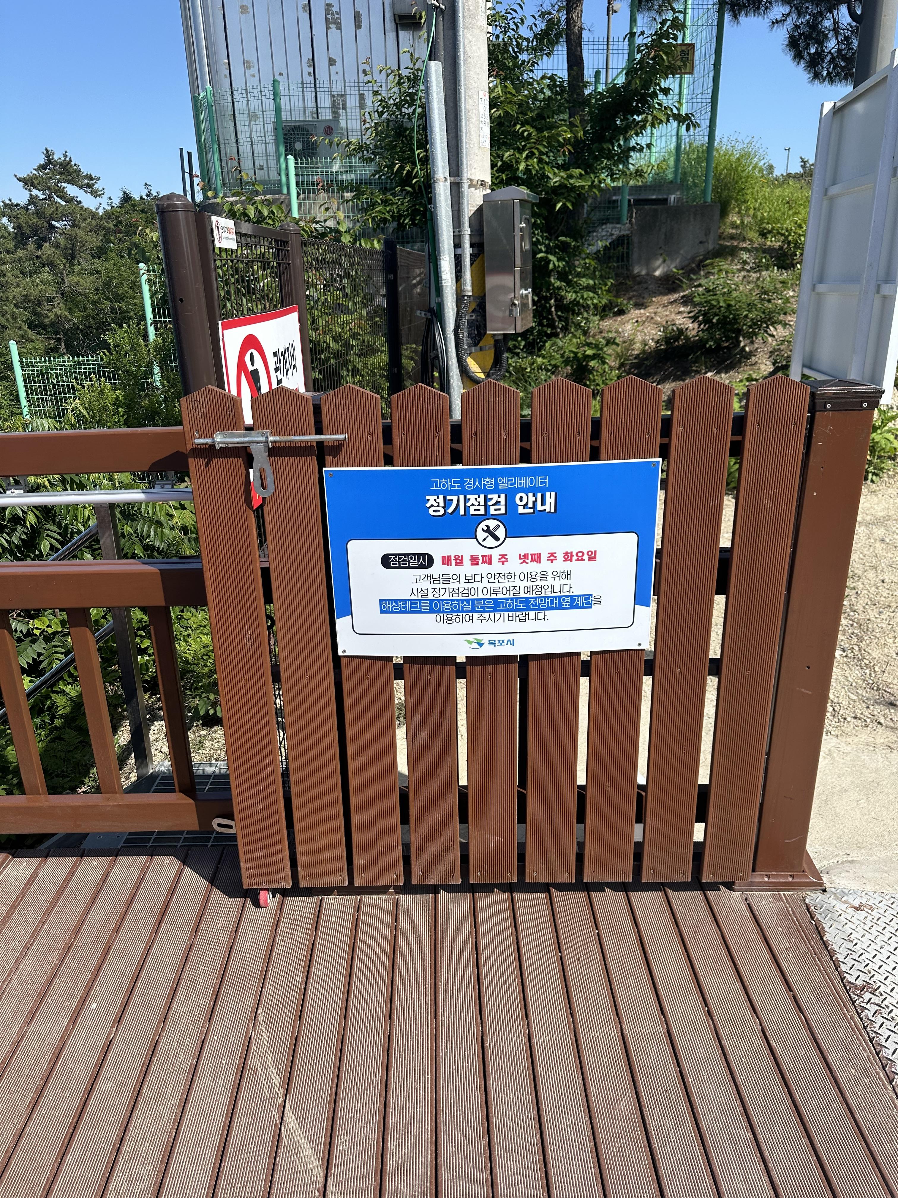 - 매주 둘째주, 넷째주 화요일은 정기점검이라고 합니다. 보다 안전한 운영을 위해 시설 정기점검이 이루어지기 때문에 고하대 전맘ㅇ대 옆 계단을 이용해달라고 합니다.