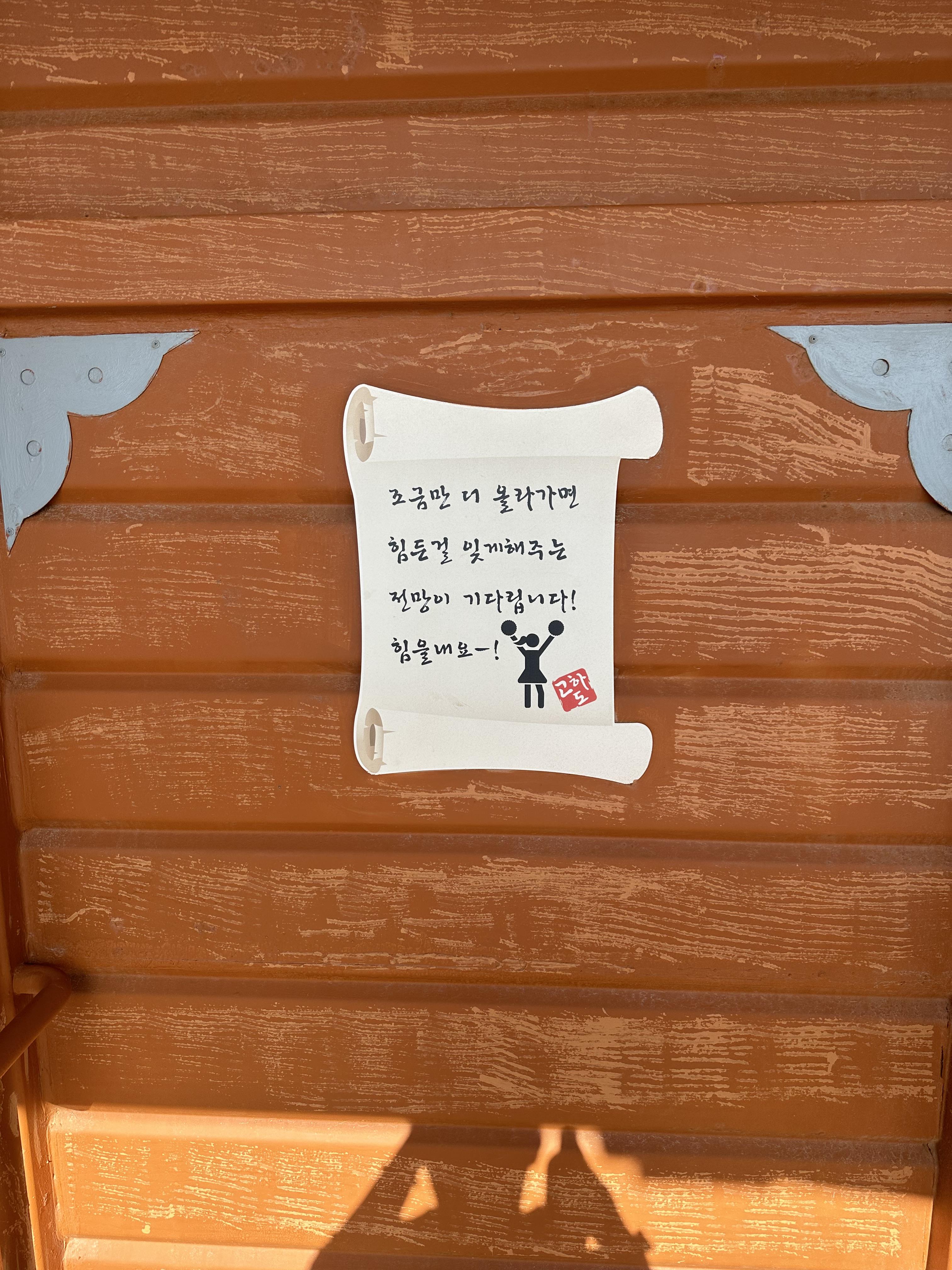 - 안전한 운행을 위해 10분간 운행하고 10분간 휴식을 한다고 합니다. 경사형 엘레베이터 상행과 하행에 각각 시간표 붙어있으니 참고바랍니다.