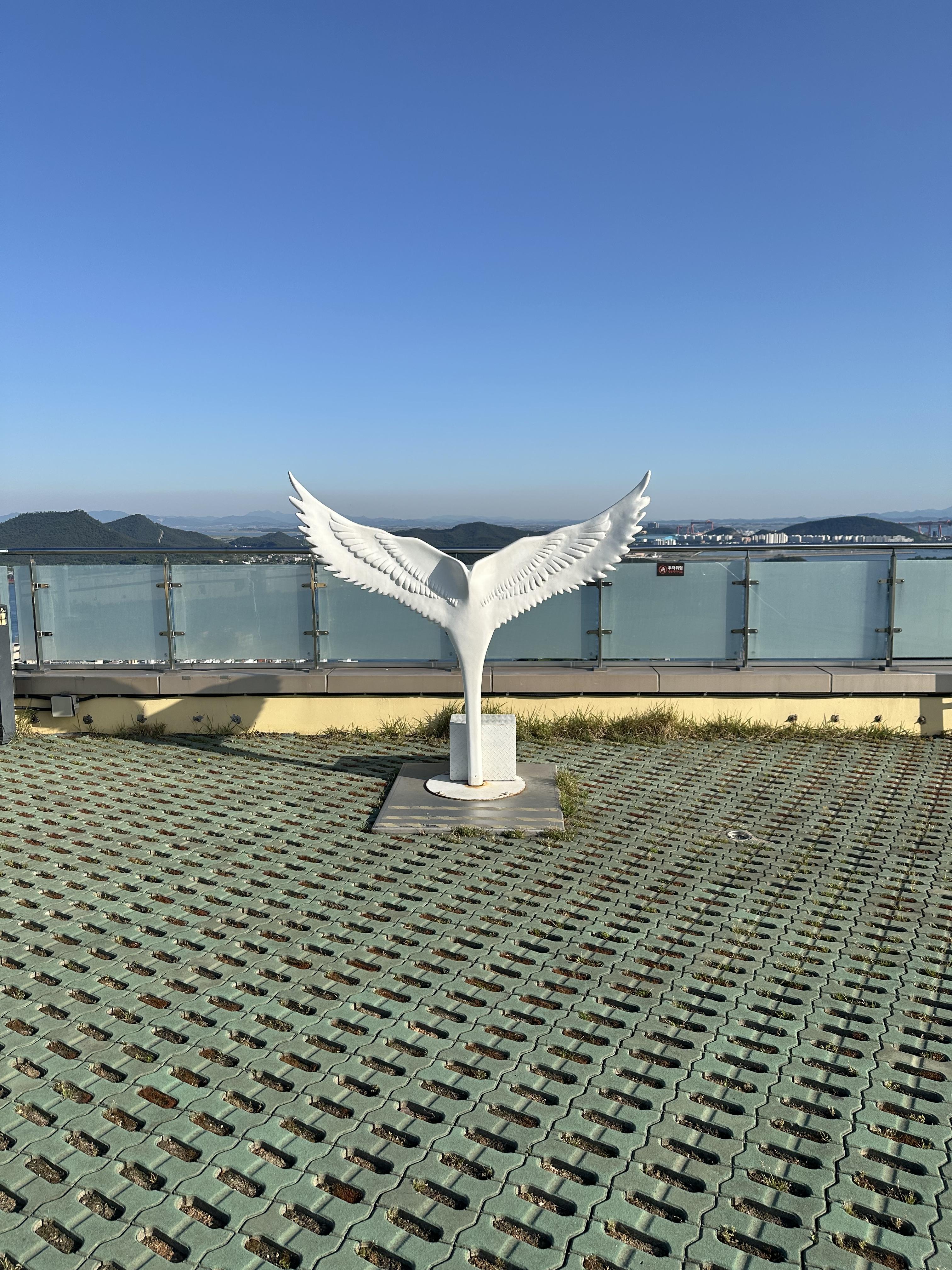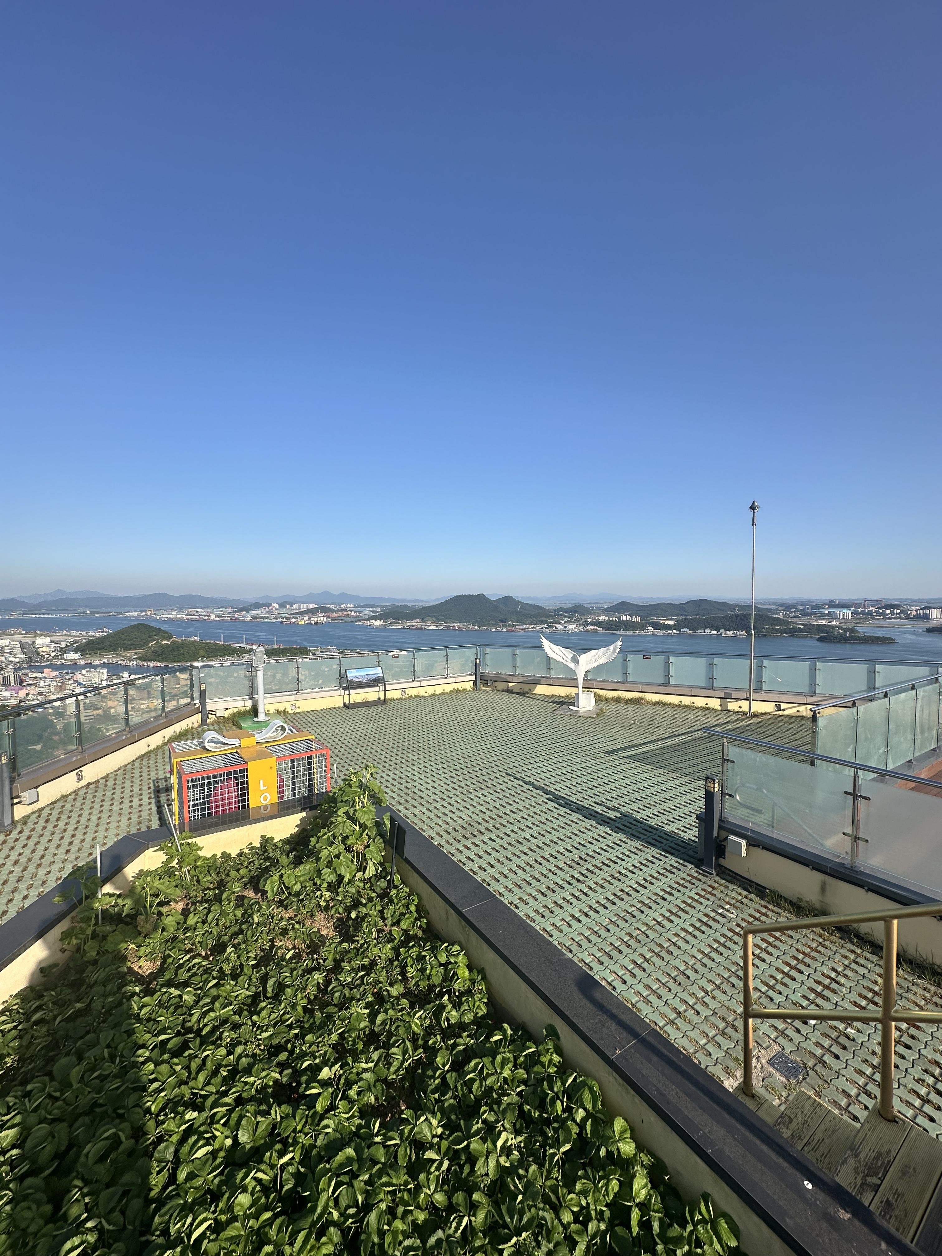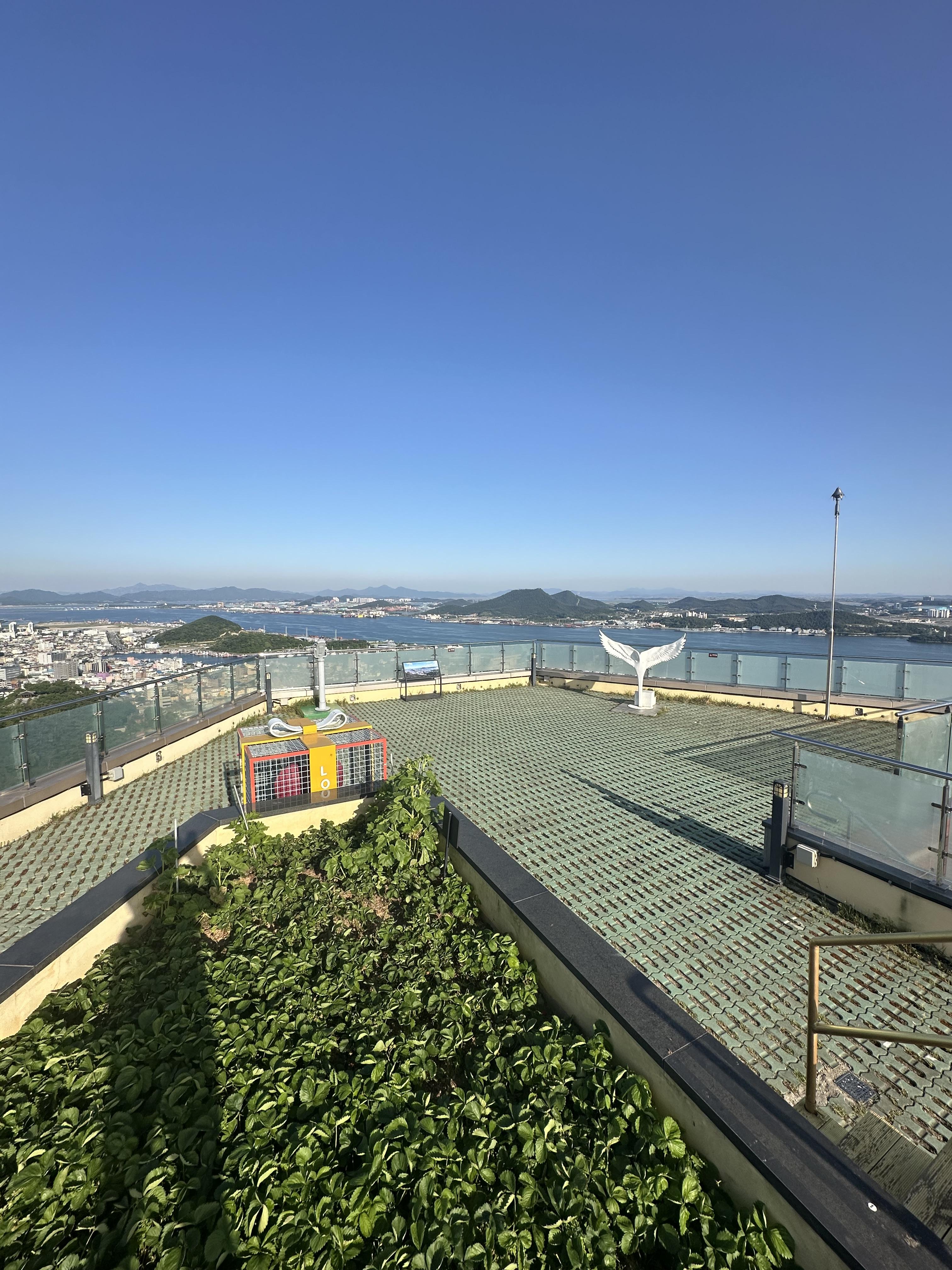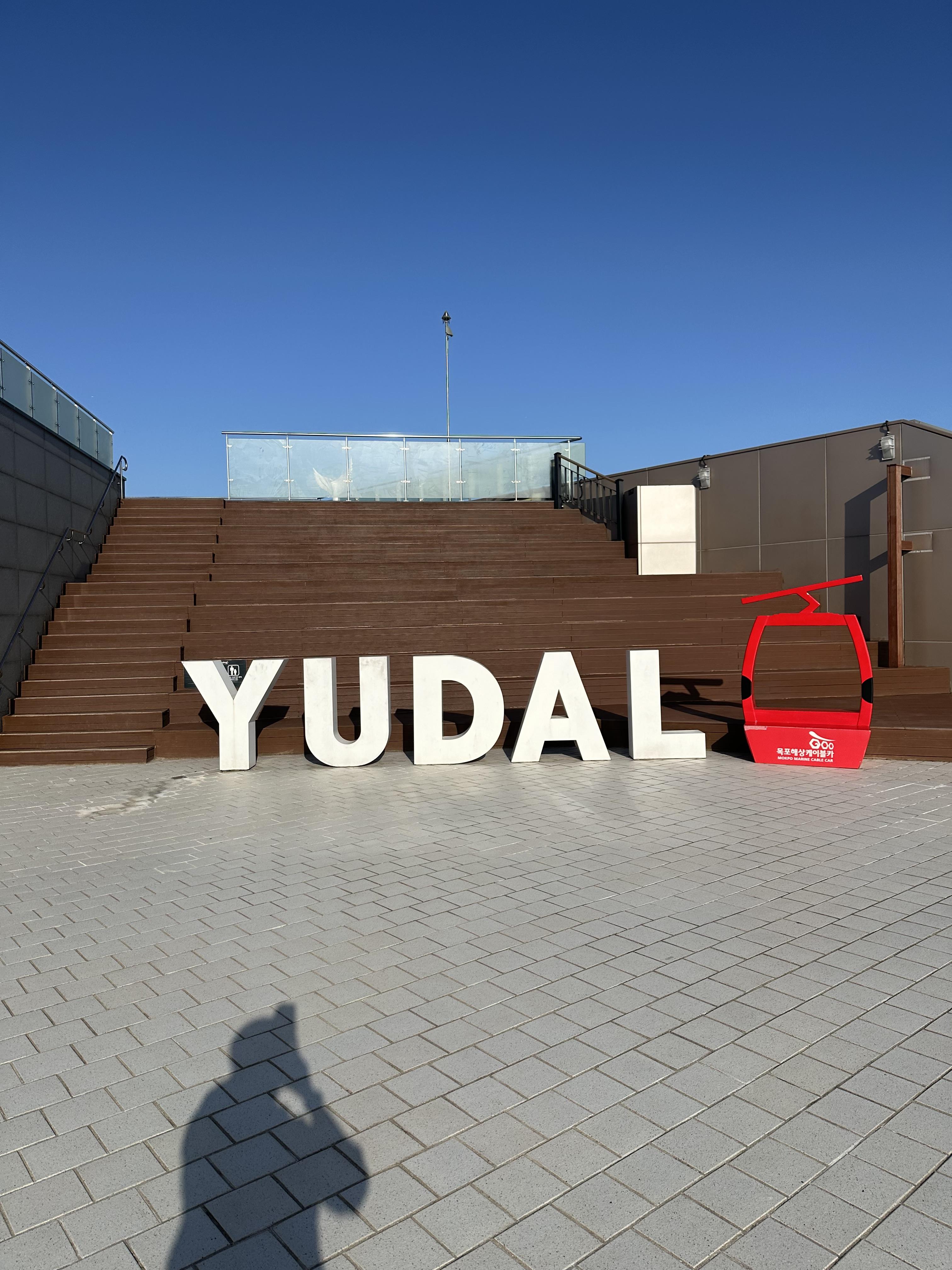 전망대에 올랐습니다. 유달산 케이블카와 함께 YUDAL 이라는 콩글리쉬 발음으로 꾸며져있었습니다. 유달산 스테이션 건물 옥상 전망대에는 사람이 많은 주말과 성수기에는 공연도 할 수 있을 공연장처럼 계단 겸 의자가 보였습니다.