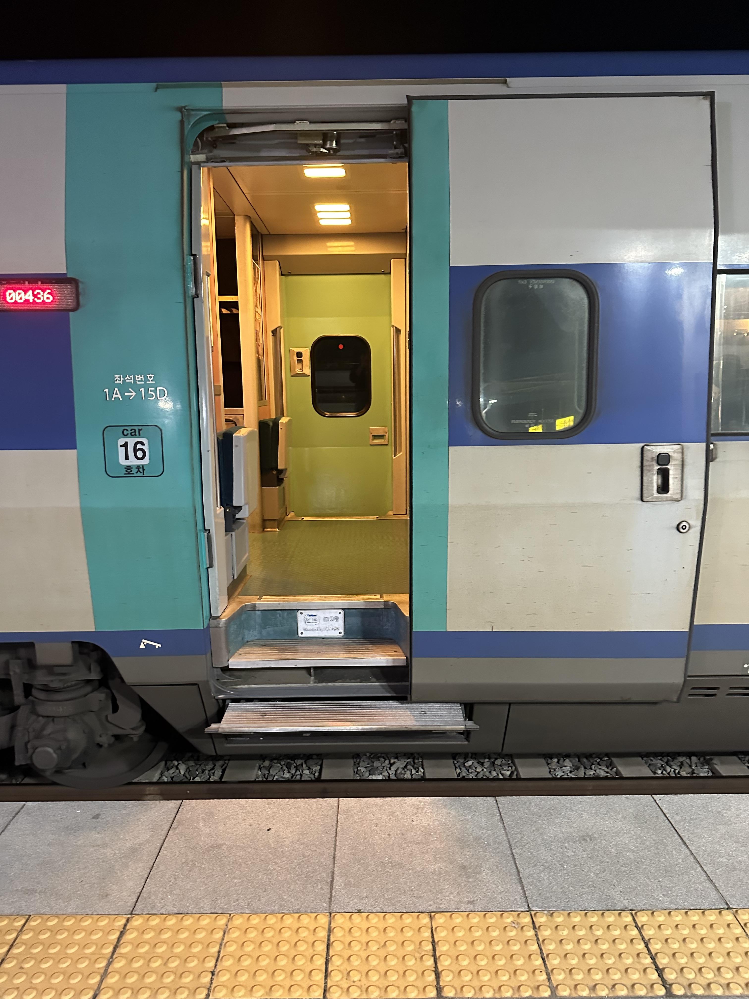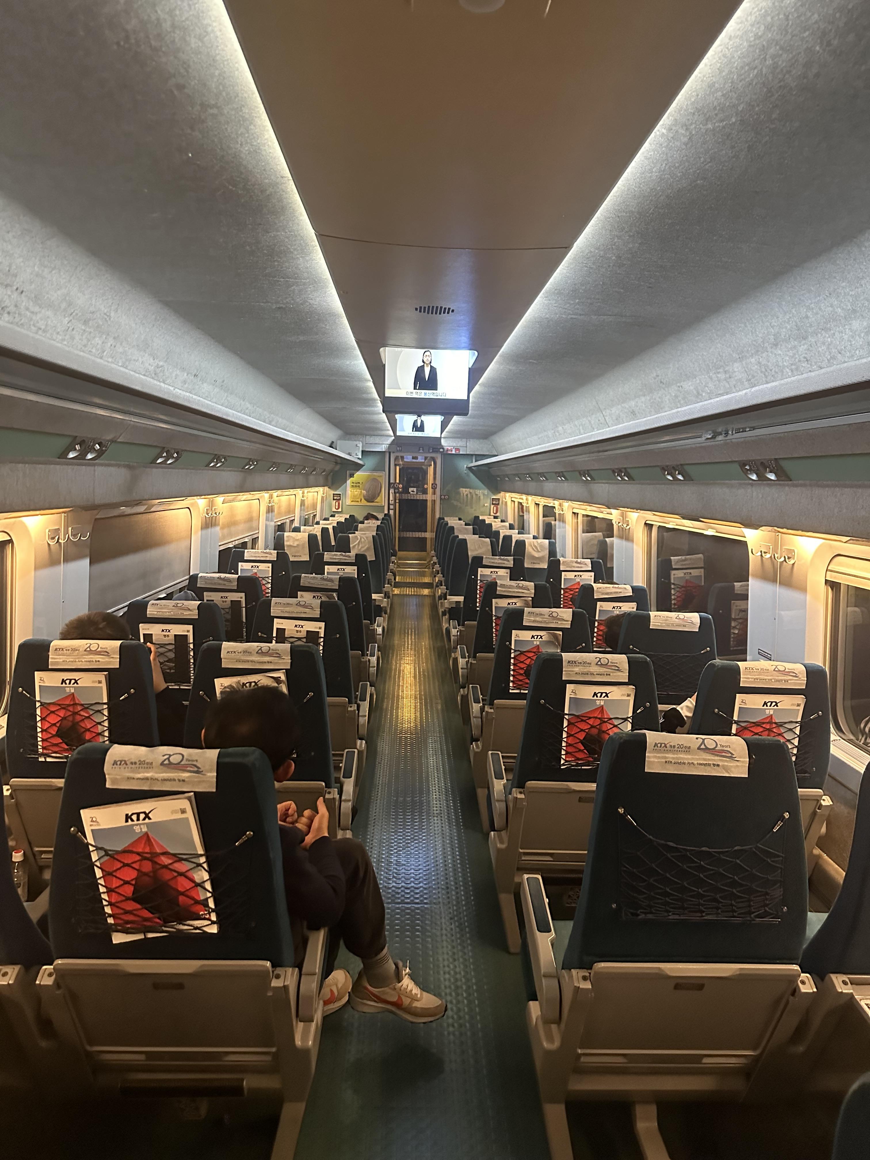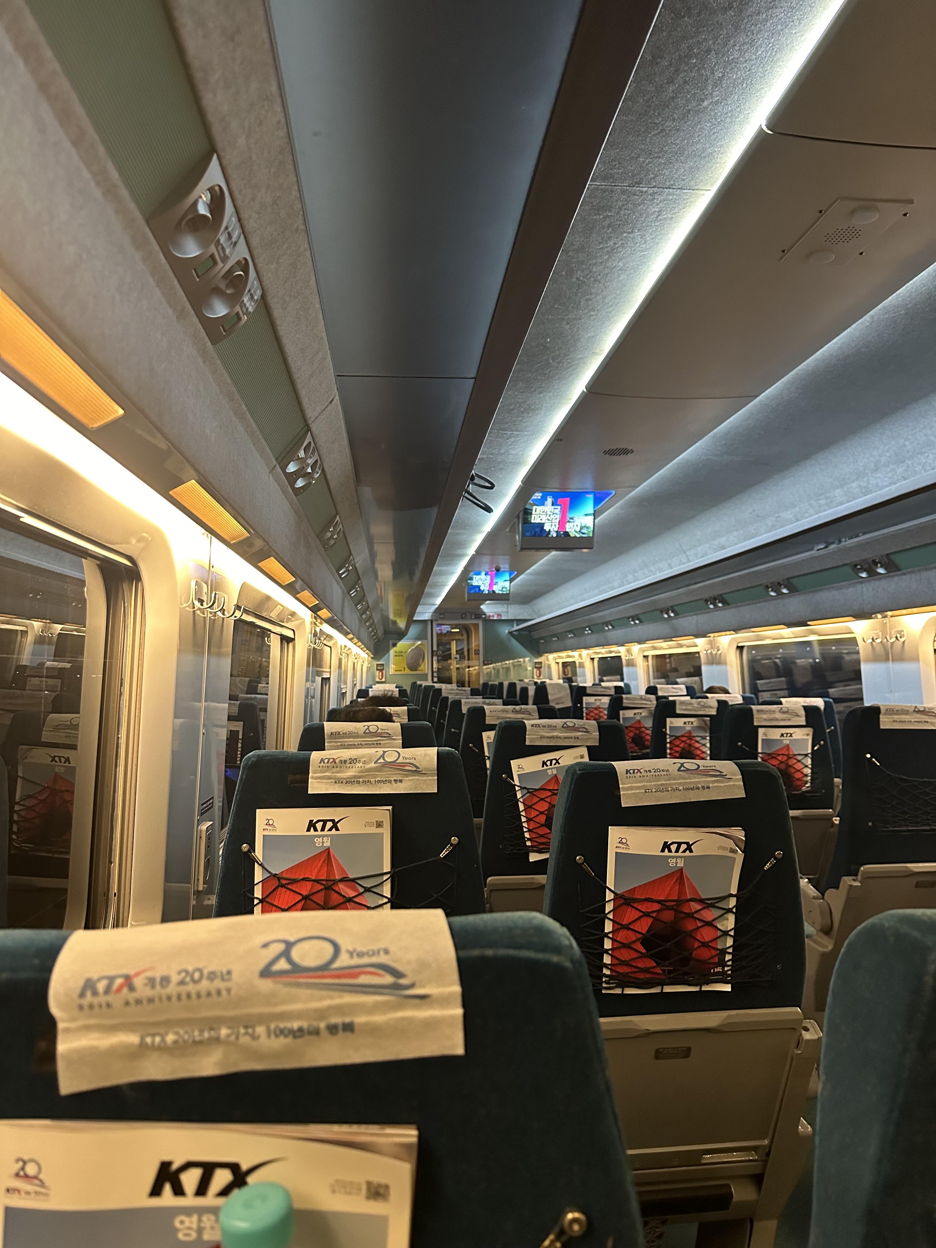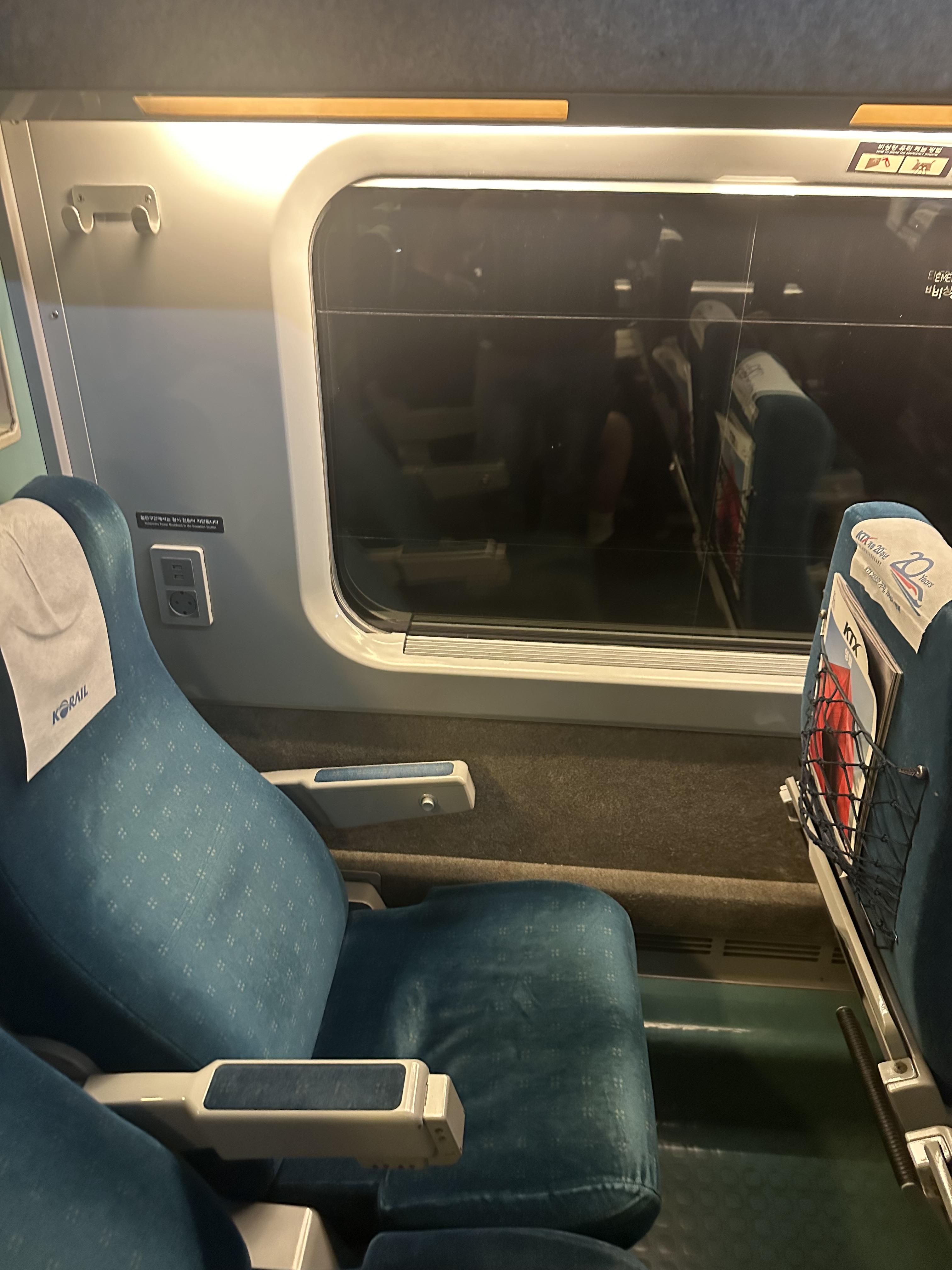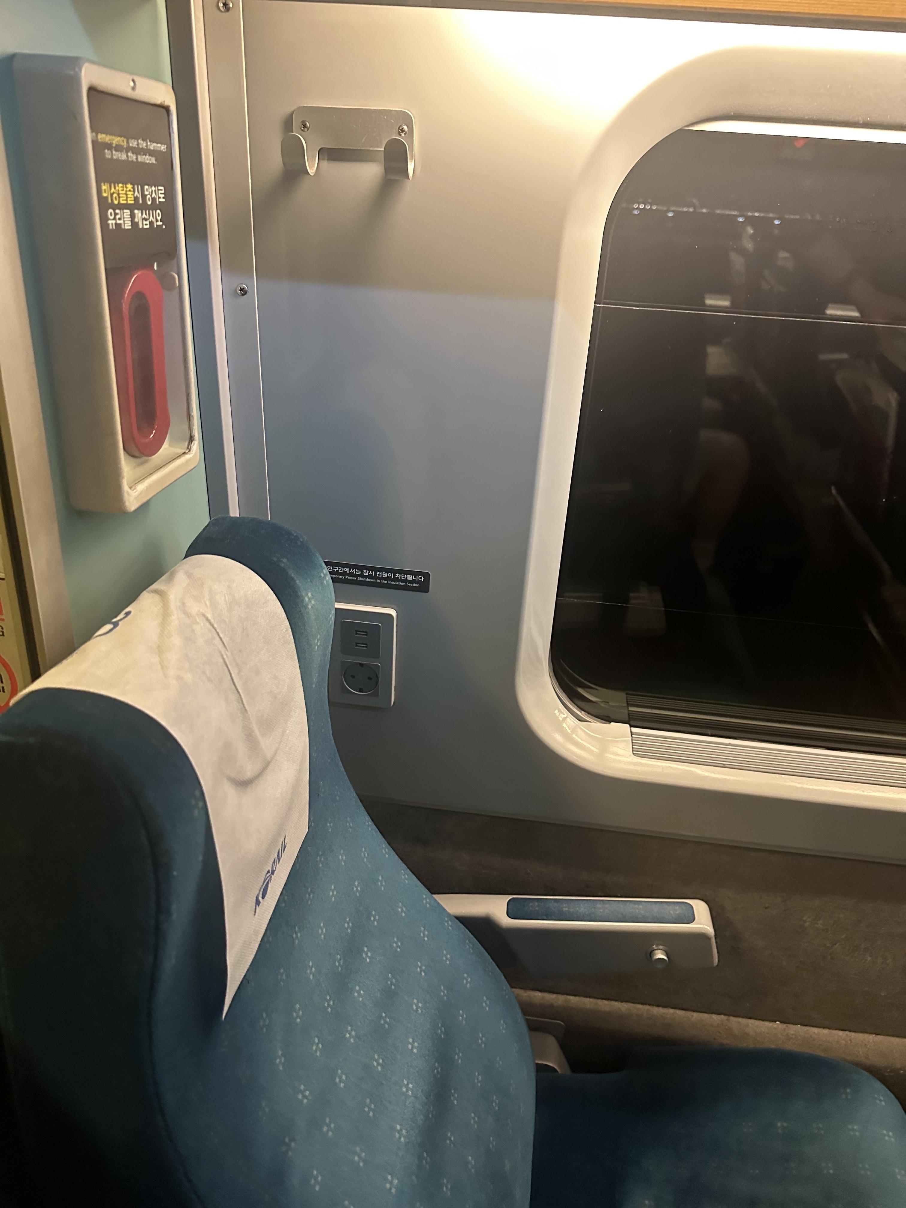 20시 50분에 KTX 초기 열차에 탑승했습니다. 혼자 여행을 다니기 때문에 제가 앉고 싶은 좌석을 앉을 수 있는것이 장점같습니다. 핸드폰 충전을 자주 하는 저로써는 KTX 초기열차는 물론이고 대부분 가장 뒷좌석에 앉습니다. 그래서 눈치 안보기 위해 당일이 아닌 몇일전에 예약한다면 좀더 자유롭고 편하게 여행 할 수 있습니다. KTX 초기 열차는 맨앞과 뒤에 콘덴서가 있고 그 외에는 좌석마다 있는곳과 없는 곳이 있습니다. 따라서 미리 블로그를 파악하거나 최근 코레일앱에 도입된 VR 기술을 통해 좌석 상황을 확인하면 좋을 것 같습니다. KTX 초기 열차의 경우 좌석마다 콘덴서가 있는게 아니라 창문쪽에 있다보니 통로측 앉은 사람은 사실 충전하기 눈치 보이긴합니다.