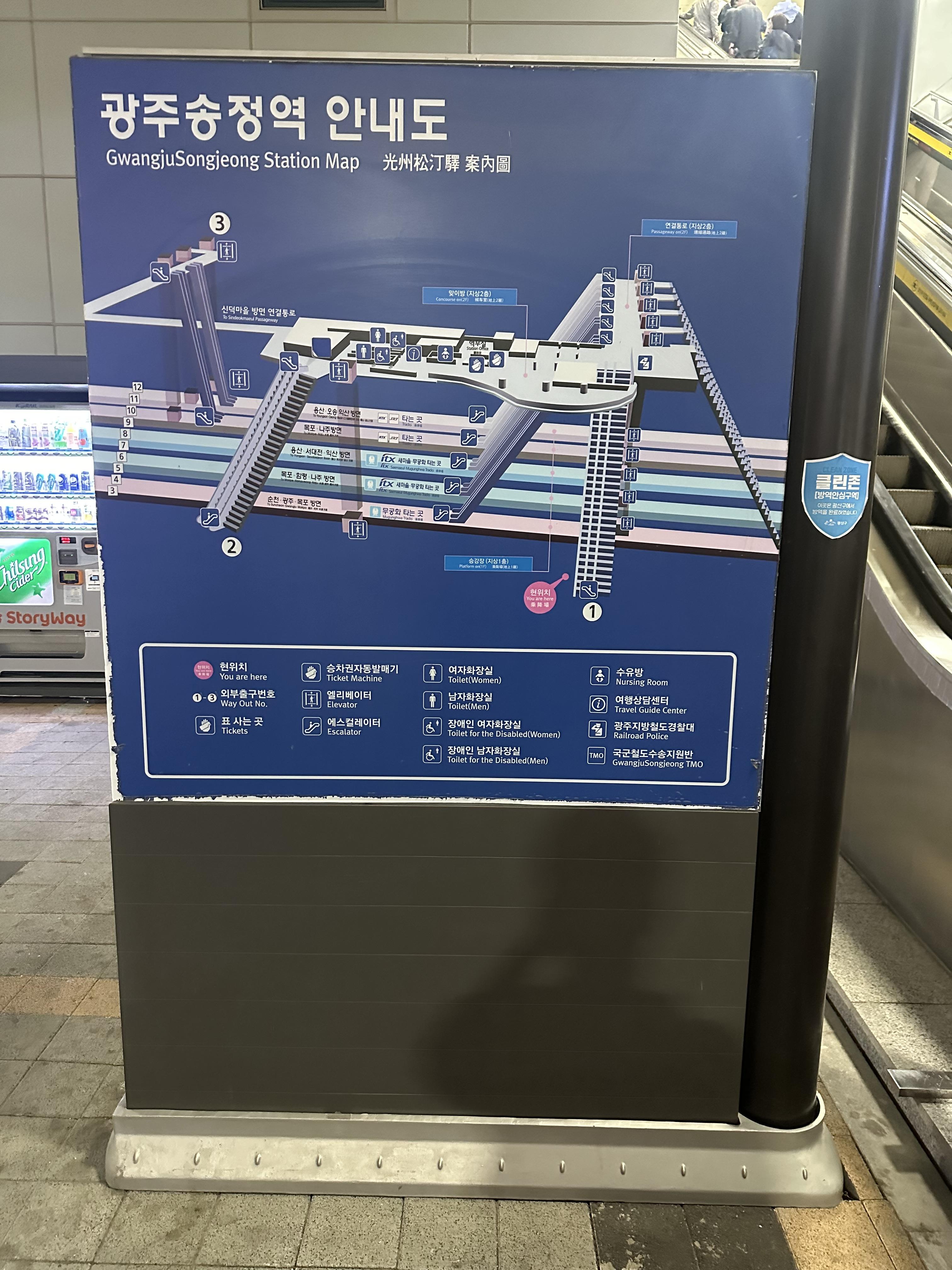 - 광주송정역은 역광장에서 대합실까지 높은 엘레베이터와 에스컬레이터, 계단을 통해 올라갑니다.