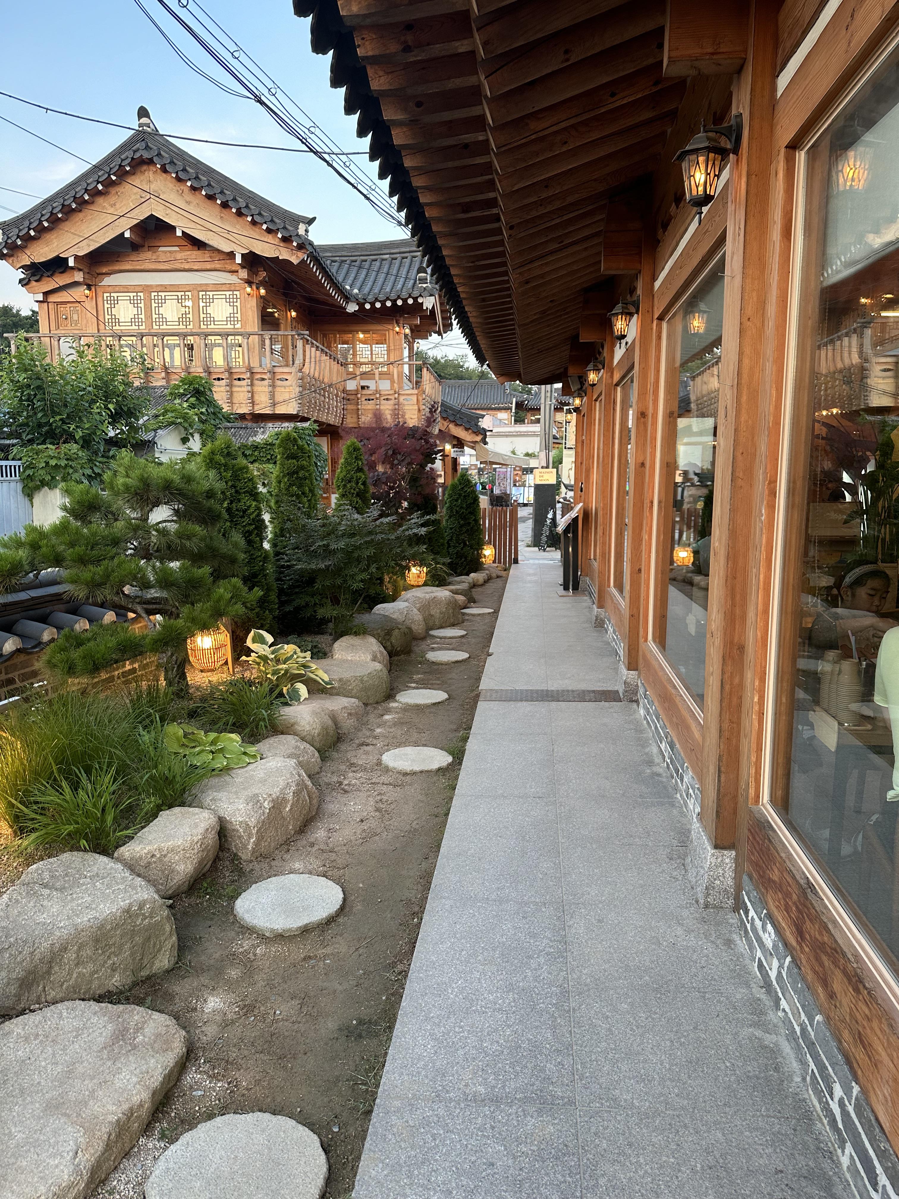 식사를 마치고 밖을 보니 들어올 때보다는 더 어두워졌습니다. 당시 6월달이라서 그런지 해가 길어져서 8시인데도 아직까지 완전 컴컴하지는 않았습니다. 노을이 진 모습이 보였습니다. 계산을 하는데 한옥 창문 사이로 보이는 황리단길의 모습을 서울과 수도권에서 바라보는 도시의 모습과는 다른 색다른 모습이었습니다. 신라면 맵기 정도의 매운맛이었던 돼지갈비찜이었는데요. 매워서 그런지 경주 야경을 하는데 배가 좀 아프긴 하더라구요. 여행을 할 때는 편하게 하는게 가장 좋은 것 같아서 먹고 싶은 음식이더라도 즐겁고 행복한 여행을 위해서 자기 자신을 배려하는 음식 습관도 중요한 것 같습니다.