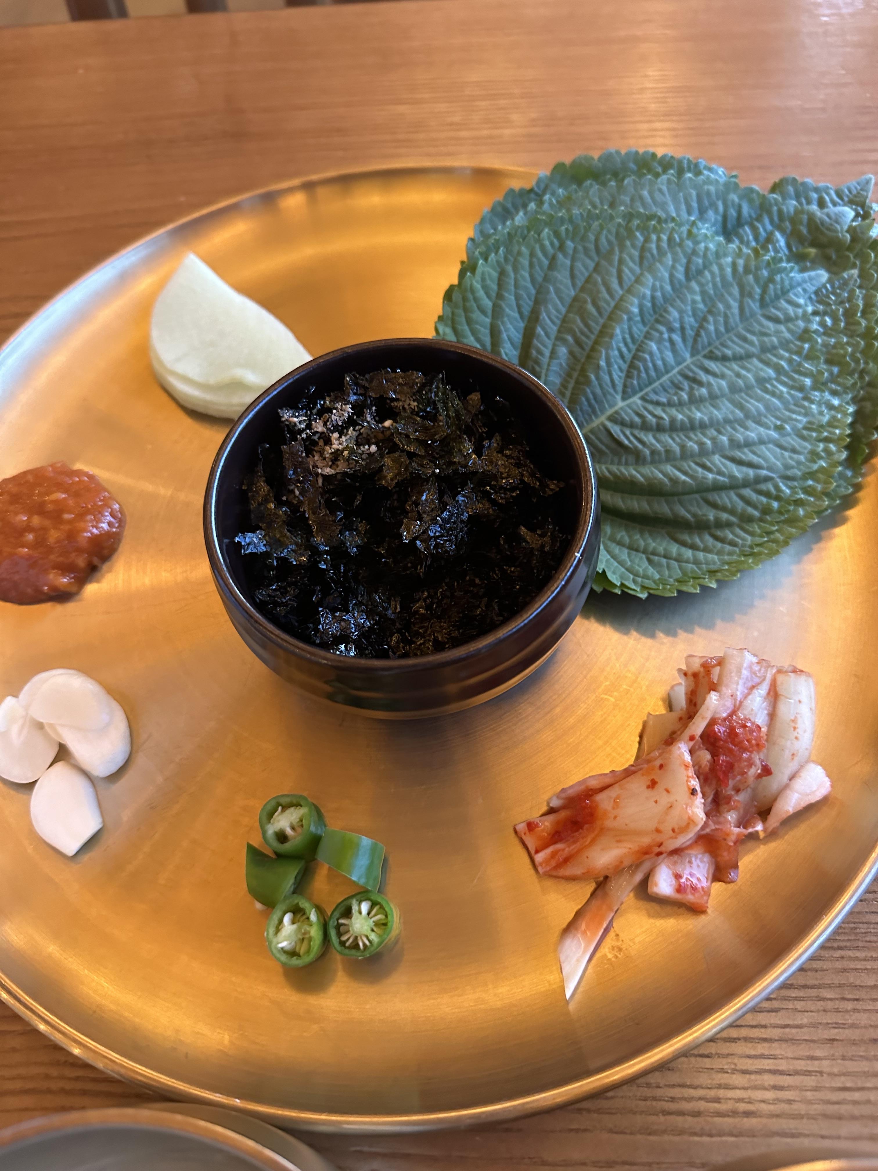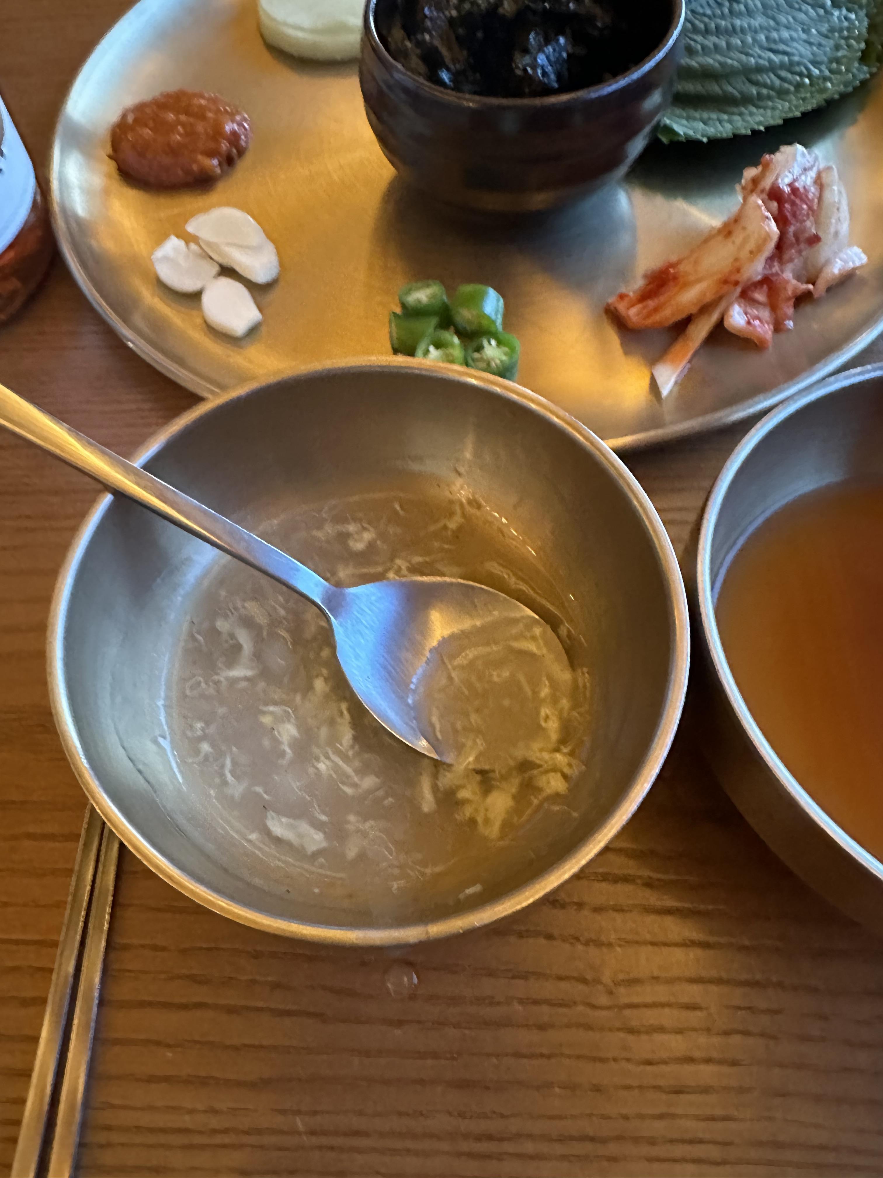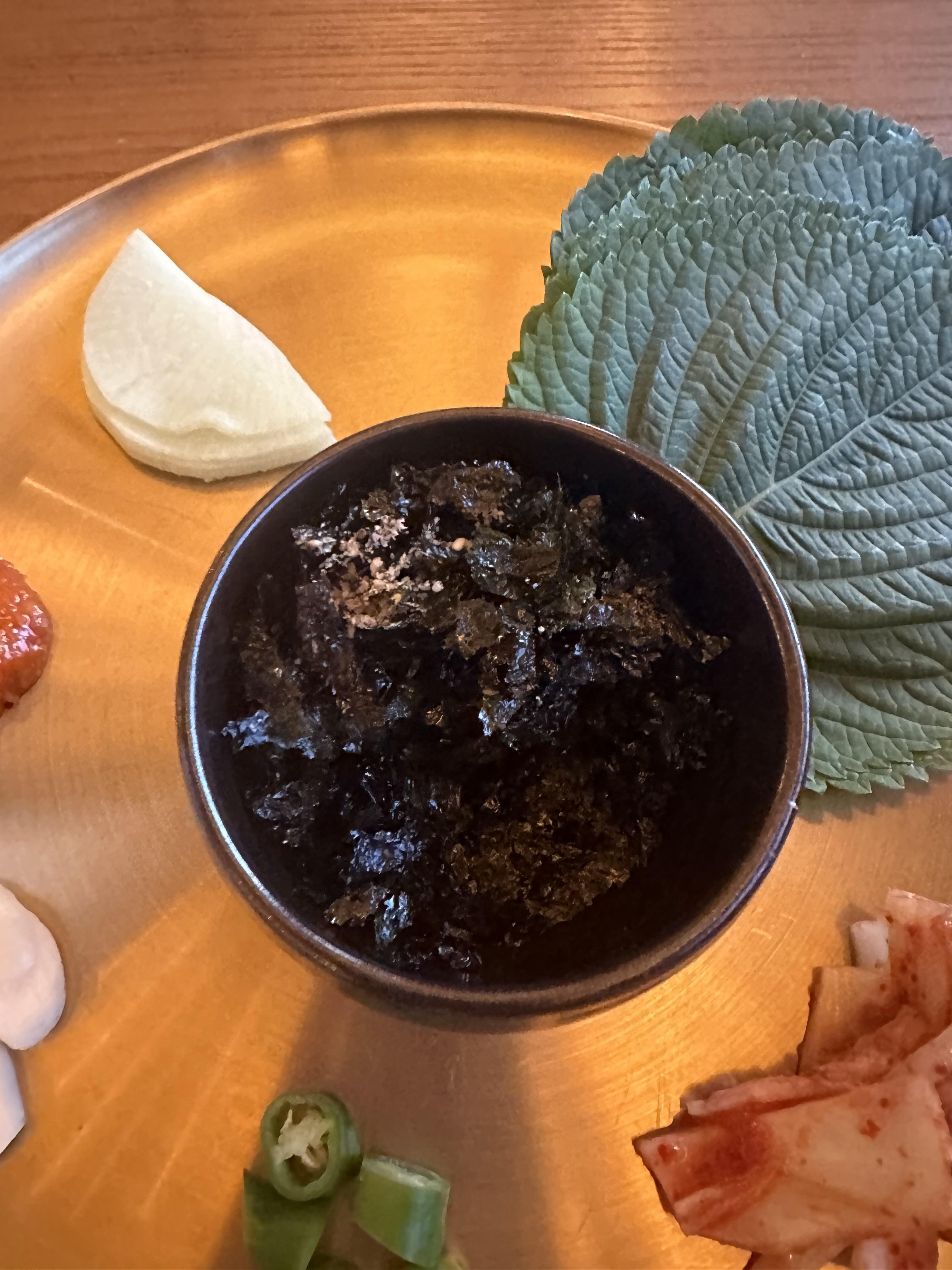 음식을 주문하고 나면 김가루와 따뜻하고 부드러운 계란죽을 함께 주세요. 6월에 방문한 경주는 더워서 따뜻한것보다는 시원한게 좋긴한데요. 시간이 좀 지나서 잘 기억은 나지않지만 날씨에 맞게 너무 뜨겁지는 않았습니다. 블로그 다른 후기를 찾아보면 좀 추울때는 따뜻하게도 해주시는 것 같습니다. 반찬중에는 김가루도 있었는데요. 공기밥 시키면 공기밥에다가 김가루 넣어서 먹으면 대박 맛있구요. 갈비찜 자체가 매운맛 조절해서 주문할 수 있다보니 매운 갈비찜과 김가루를 섞은 밥을 함께 먹으면 정말 맛있어요.