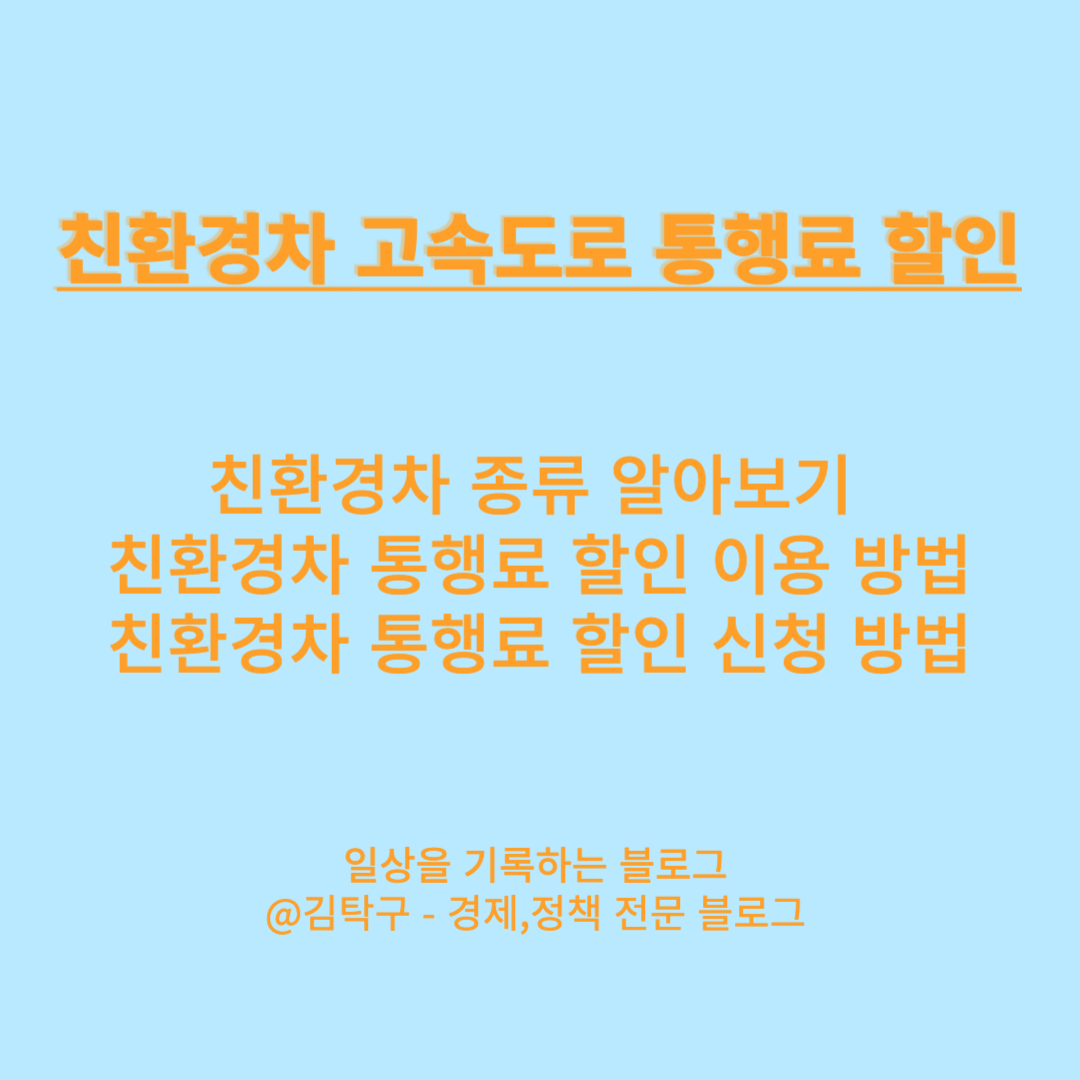 친환경차 고속도로 통행료 50% 할인 정보 정리 해드려요.