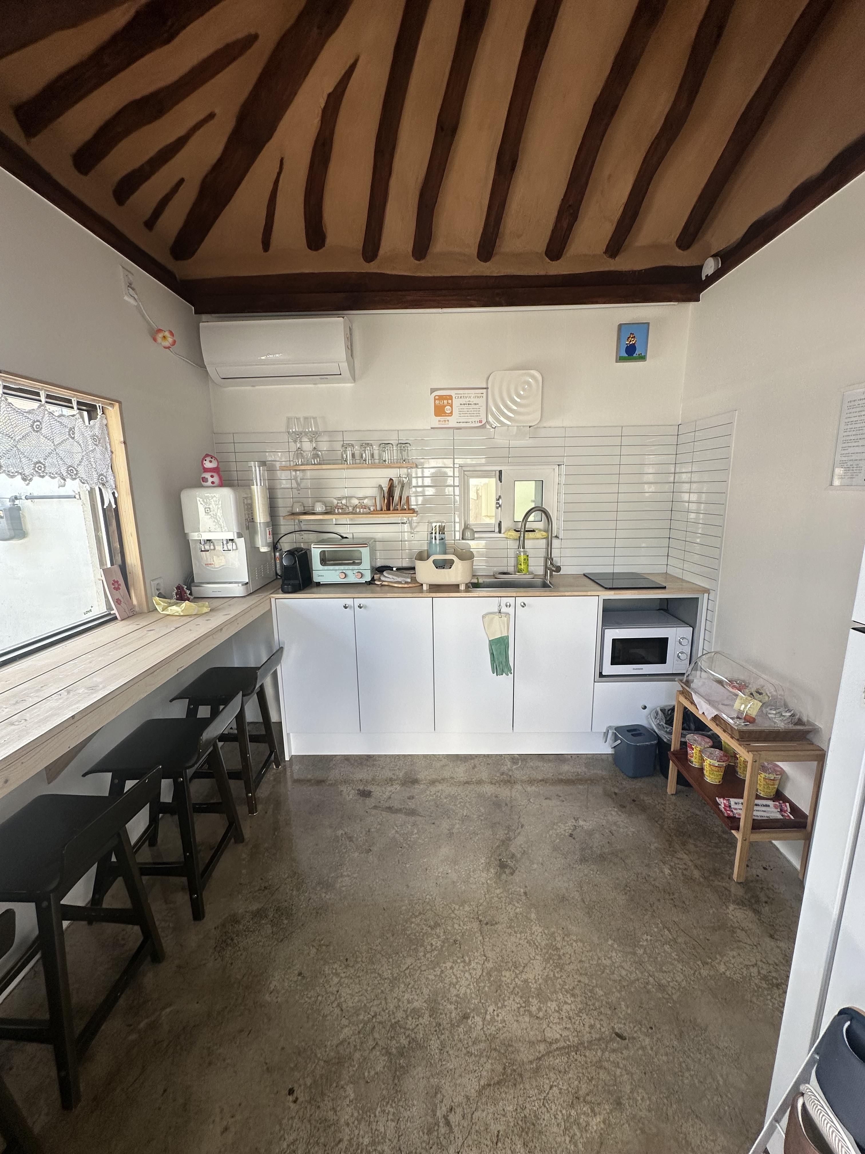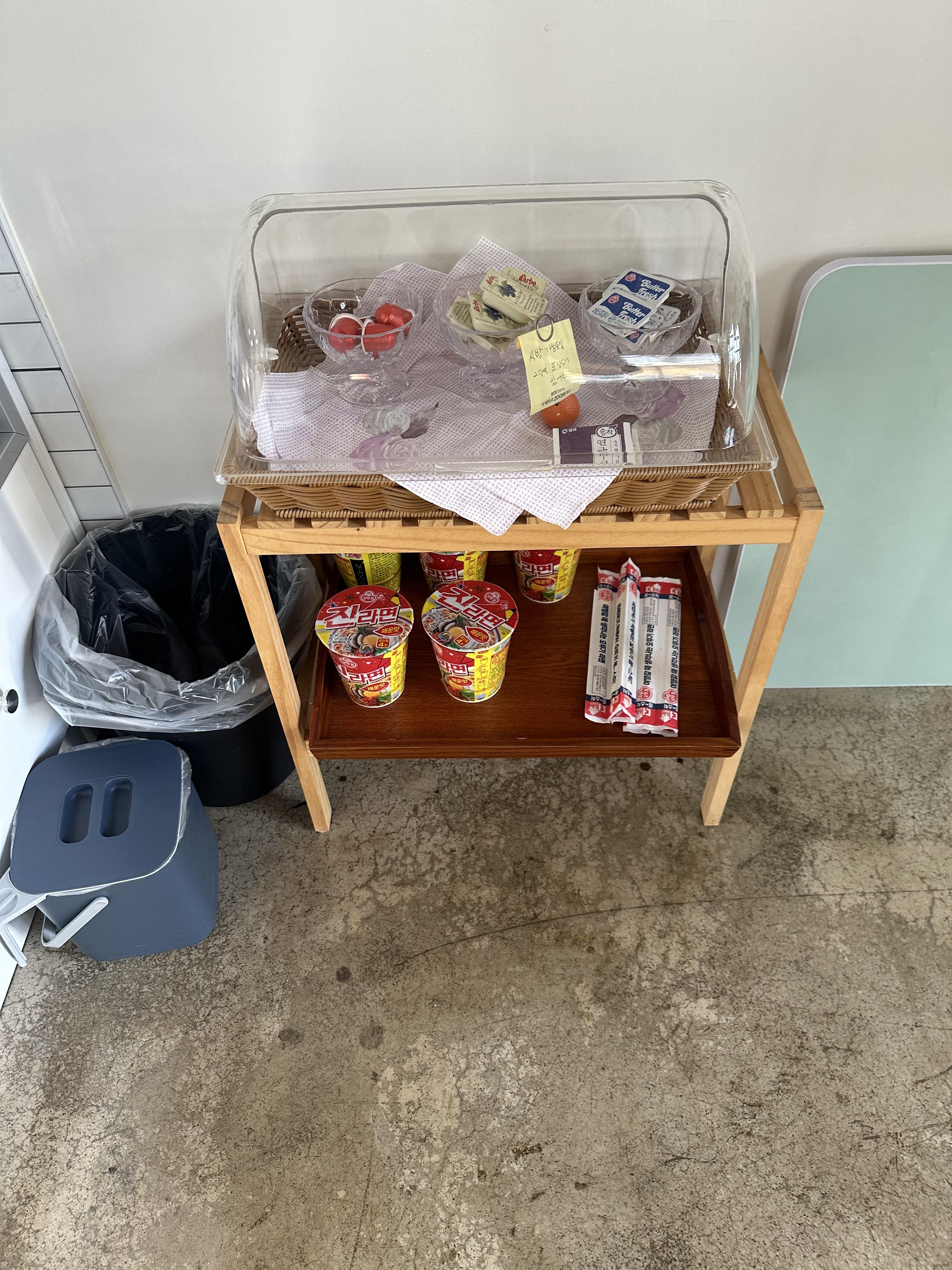 - 공동 거실이 있고, 게스트들에게 라면과 토스트, 음료정도는 제공되고 있어서 배고프거나 조식으로도 가능하고 있습니다