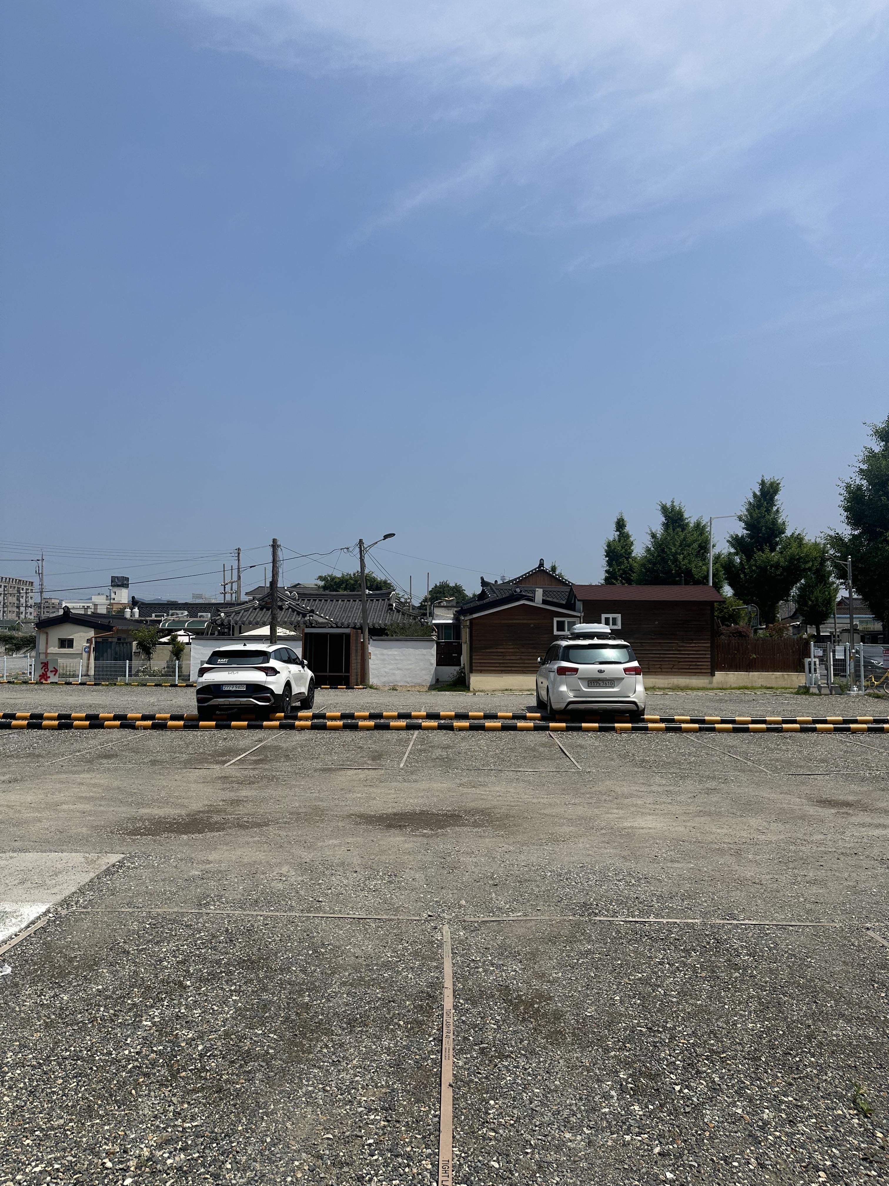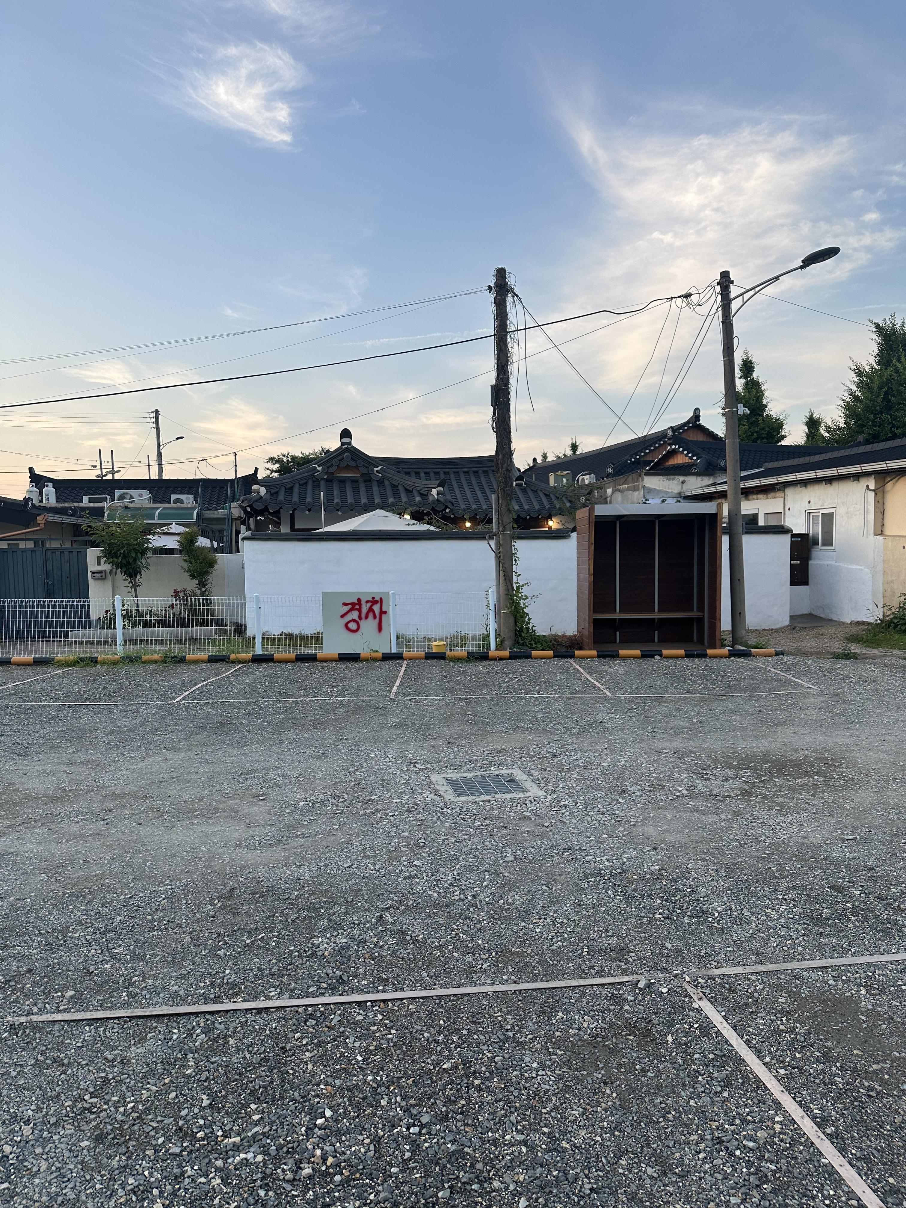황리단길 거송갈비찜을 향하기 위해 대문을 나섰습니다. 은정스테이 한옥숙소 앞에는 주차장이 있긴하는데요. 저는 대중교통으로 왔기 때문에 잘모르지만 아마 이곳에 주차해도 되지않을까 싶습니다. 주차에 관한 자세한 내용은 방문 시 사장님(호스트)에게 물어보시고 지정된곳이나 무료 주차장에 하시는 것을 꼭 확인하시길 바랍니다.