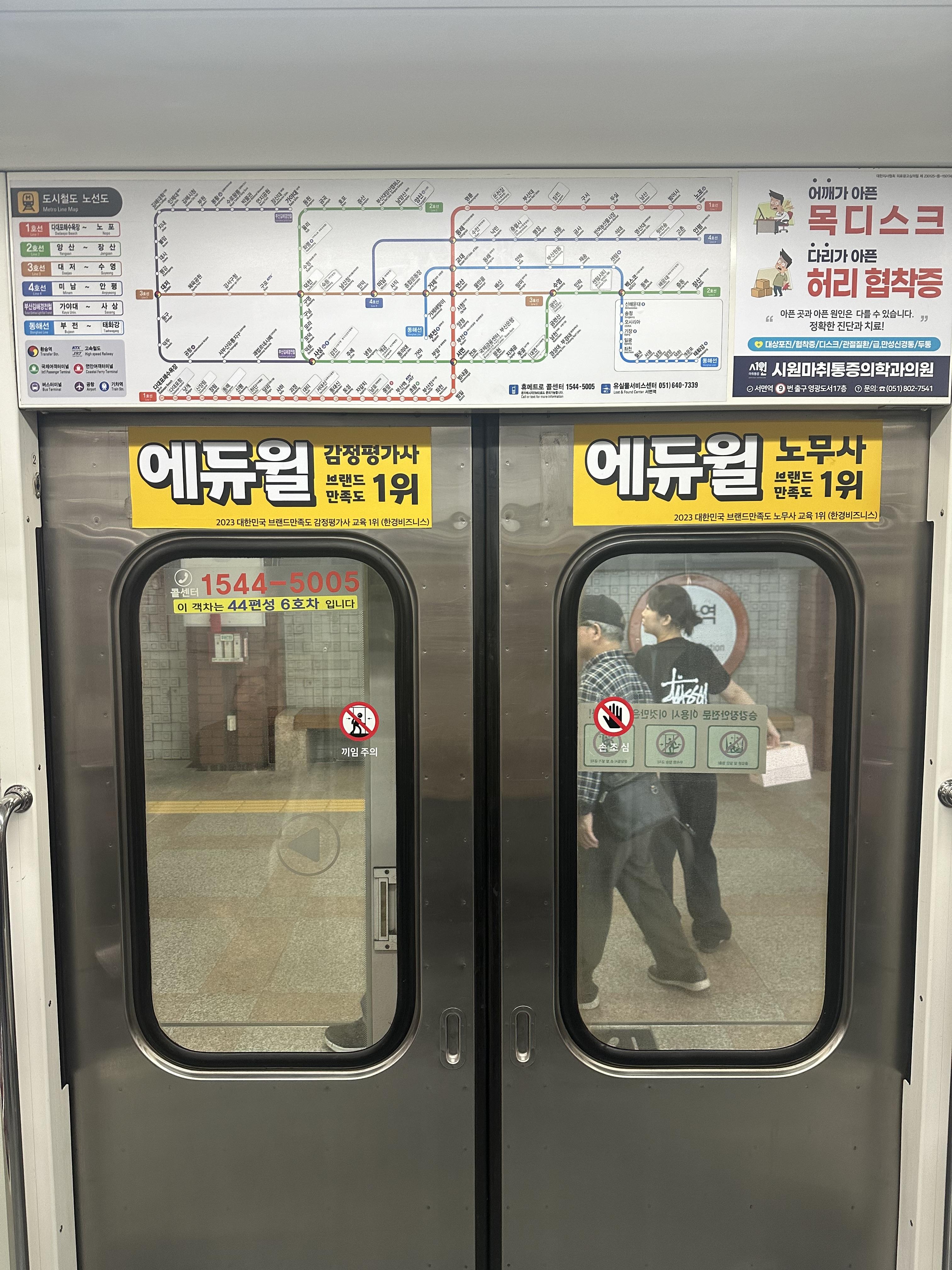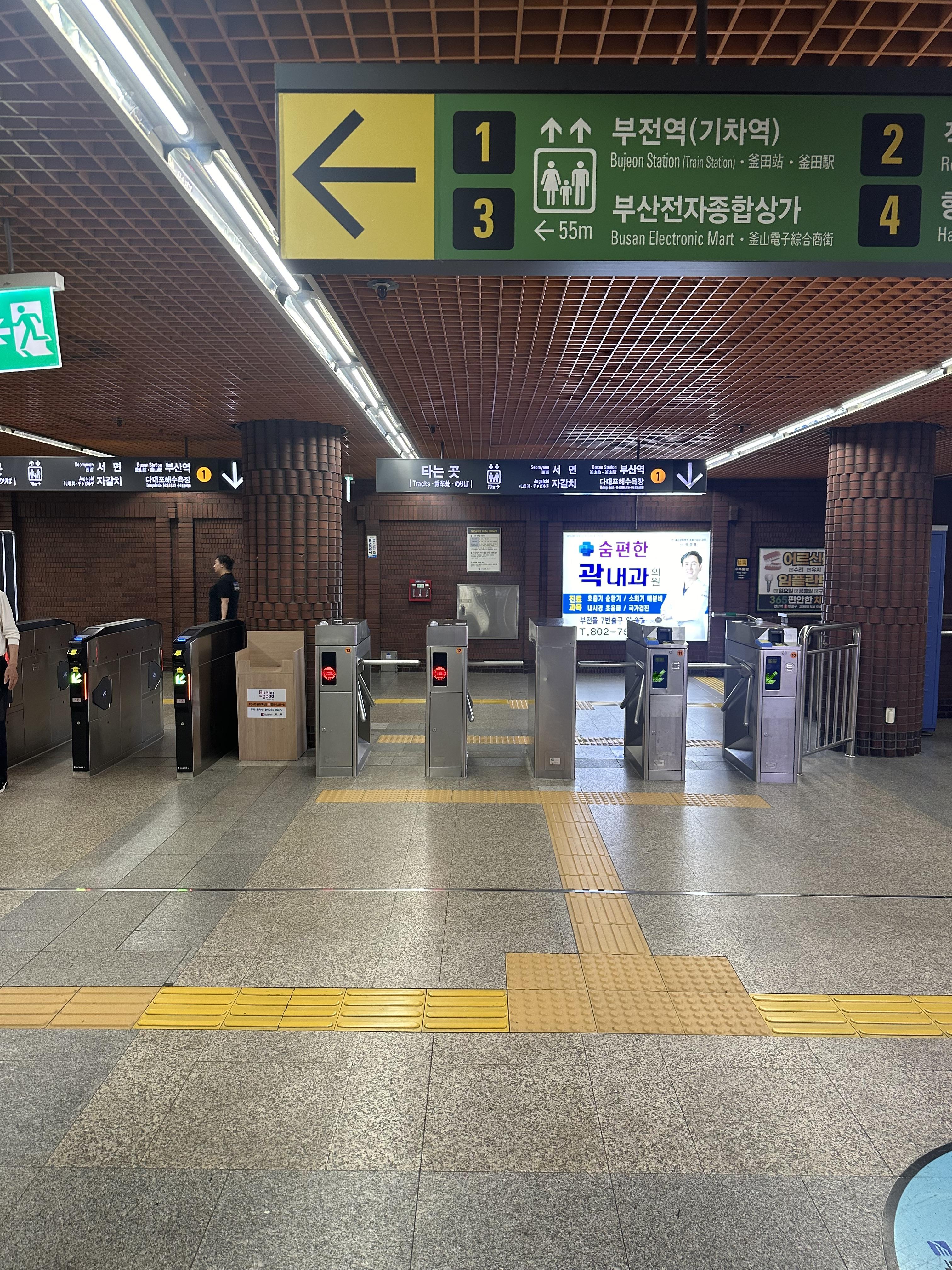 남포동으로 가기 위해서 저는 부전역에서 부산지하철 1호선을 탑승하고 부산지하철 중앙역까지 이동했습니다. 소요시간은 대략 30분정도 걸렸다고 보시면 됩니다. 남포동을 가려면 부산 지하철 1호선 중앙역이 아닌 남포역이나 자갈치시장역에서 내리시면 가깝습니다. 그러나 저는 부전역까지 오면서 숙소를 예약했는데요. 남포동 일대에도 에어비앤비가 많습니다. 그러나 남포동 사람들이 다니는 거리는 노후화된 시설들도 많고 관광객이 많다보니 시끄러울 수 있다는 우려가 있어서 부산 중앙역 일대에 에어비앤비를 예약 했습니다. 부산 중앙역에서 남포동까지는 도보 15분정도로 가깝습니다. 지하철도 남포동 일대는 거리수가 짧아서 그런지 소요시간도 많이 안걸립니다. 특히 부산 혼자 여행 처음할 때 묵었던 숙소가 남포동 중앙역일대였는데요. 그래서 남포동 중앙역으로 숙소를 정해졌던 것 같습니다. 부산지하철은 서울지하철과는 몇가지 차이점이 있는데요, 서울에 비해 인구가 많지 않을거라고 예상했던 부산시는 당시 부산지하철 지을 때 정부의 압박에도 불구하고 지하철을 대형이 아닌 중형으로 지었다고 합니다. 그래서 부산지하철을 타시거나 사진을 보면 열차통로폭이 좁은 것을 볼 수있습니다. 이렇게 지을 경우 가장 큰 장점은 건설비를 줄일 수 있다는 것입니다.