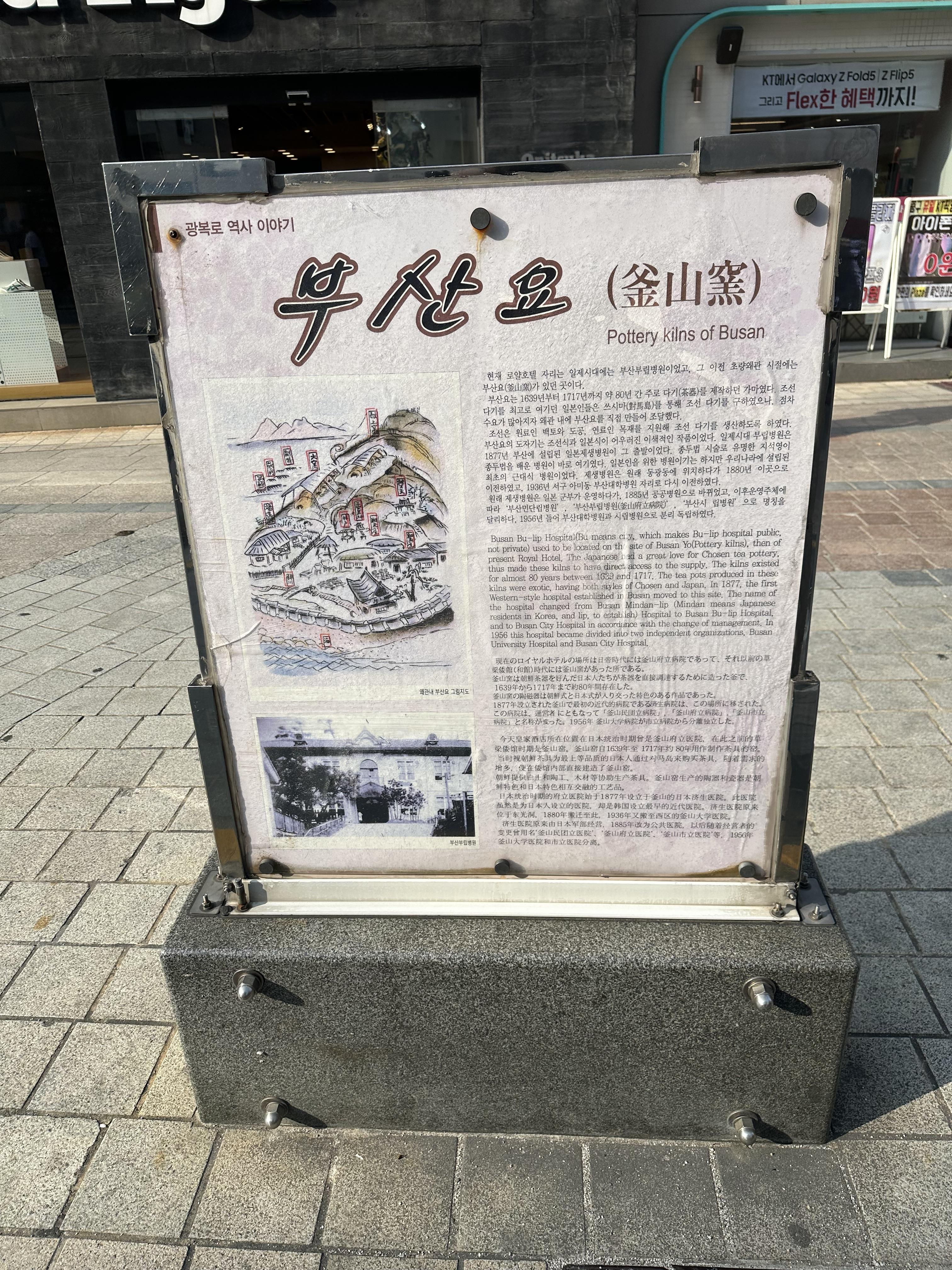 - 일제시대 이곳은 광복로 일본인 상가 중심지로 요리점, 극장, 백화점 등과 같은 새로운 문화의 전시장이었다고 한다. 1904년에 개설된 야점은 밤에 서는 장으로 여기서 밝히는 가스 등불은 이 거리의 볼거리였다.