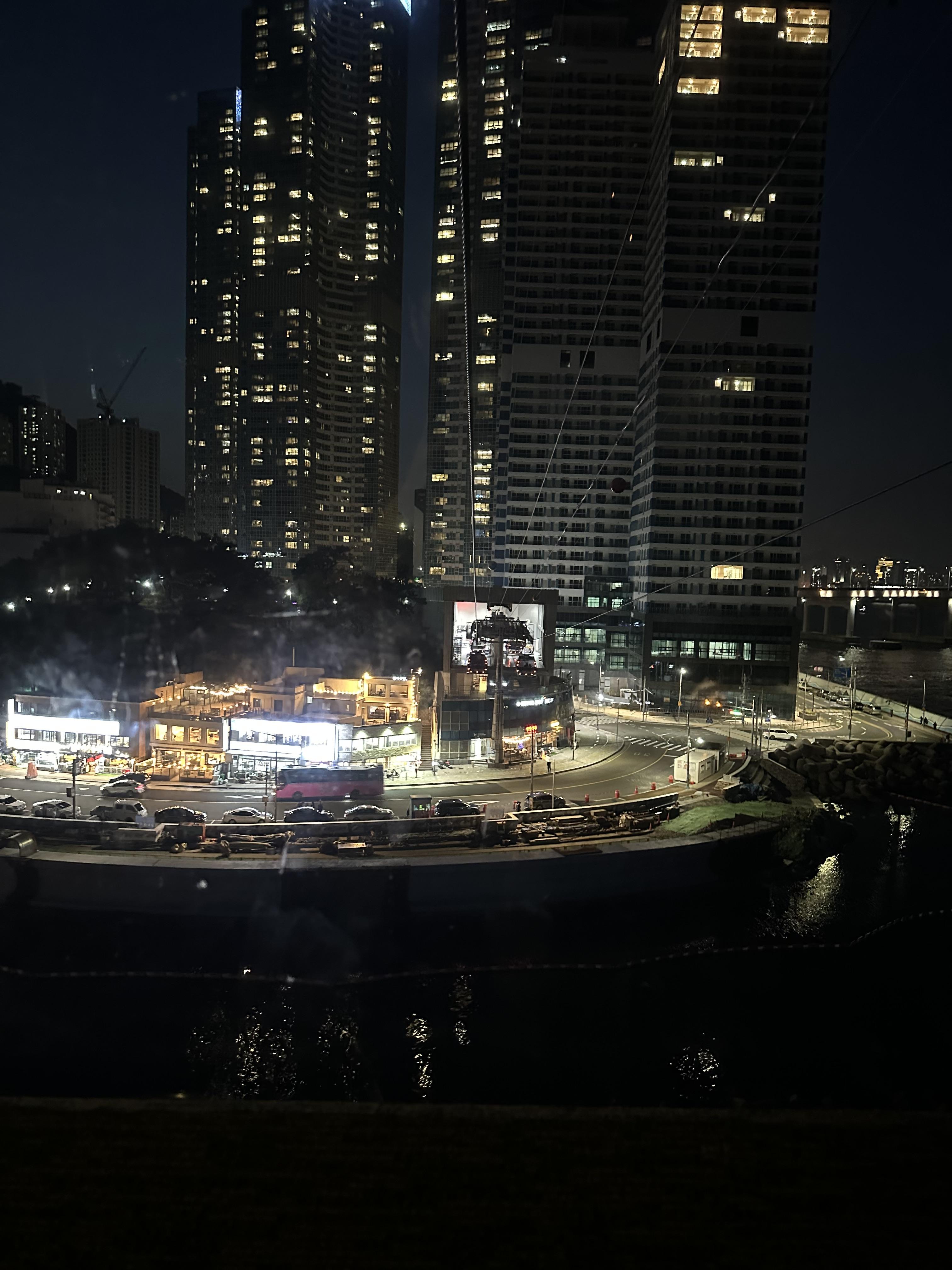 송도해상케이블카를 타고 암남공원까지는 비교적 길지 않은 10분정도 소요되는 거리였습니다. 다만 송도해상케이블카의 가장 강력한 큰 특징은 출발부터 도착까지 바다 위를 지나간다는 뜻입니다. 여수해상케이블카도 여수바다를 지나가는 특징이 있지만 초반부는 산 위를 달리다가 바다로 가는 모습이지만 송도해상케이블카는 출발부터 도착까지 오로지 바다 위로만 간다는 특징입니다. 하부 승강장에 도착할쯤에 정면에 보이는 높은 건물들에는 밤을 알리는 건물 객실마다 조명이 환하게 비춰지는 것을 볼 수 있습니다. 한가지 특이 한 것은 우측 건물 저층부는 불이 모두 꺼져있었는데 모두 공실인건지 아니면 숙박시설인건지는 모르겠습니다. 저층부는 일부 2세대정도만 켜져있는거 보면 나머지는 사람이 없다는 것 같은데 무서울 것 같기도 합니다. 공실 애기가 나와서 전국적으로 생활형숙박시설과 오피스텔 등 건물들이 지어지면서 거기에 고금리 장기화로 인해 공실이 많아졌다는 소식도 있습니다. 경제가 살아서 공실도 사라지고 관광산업이 다시 예전처럼 활성화되면 좋겠습니다.
