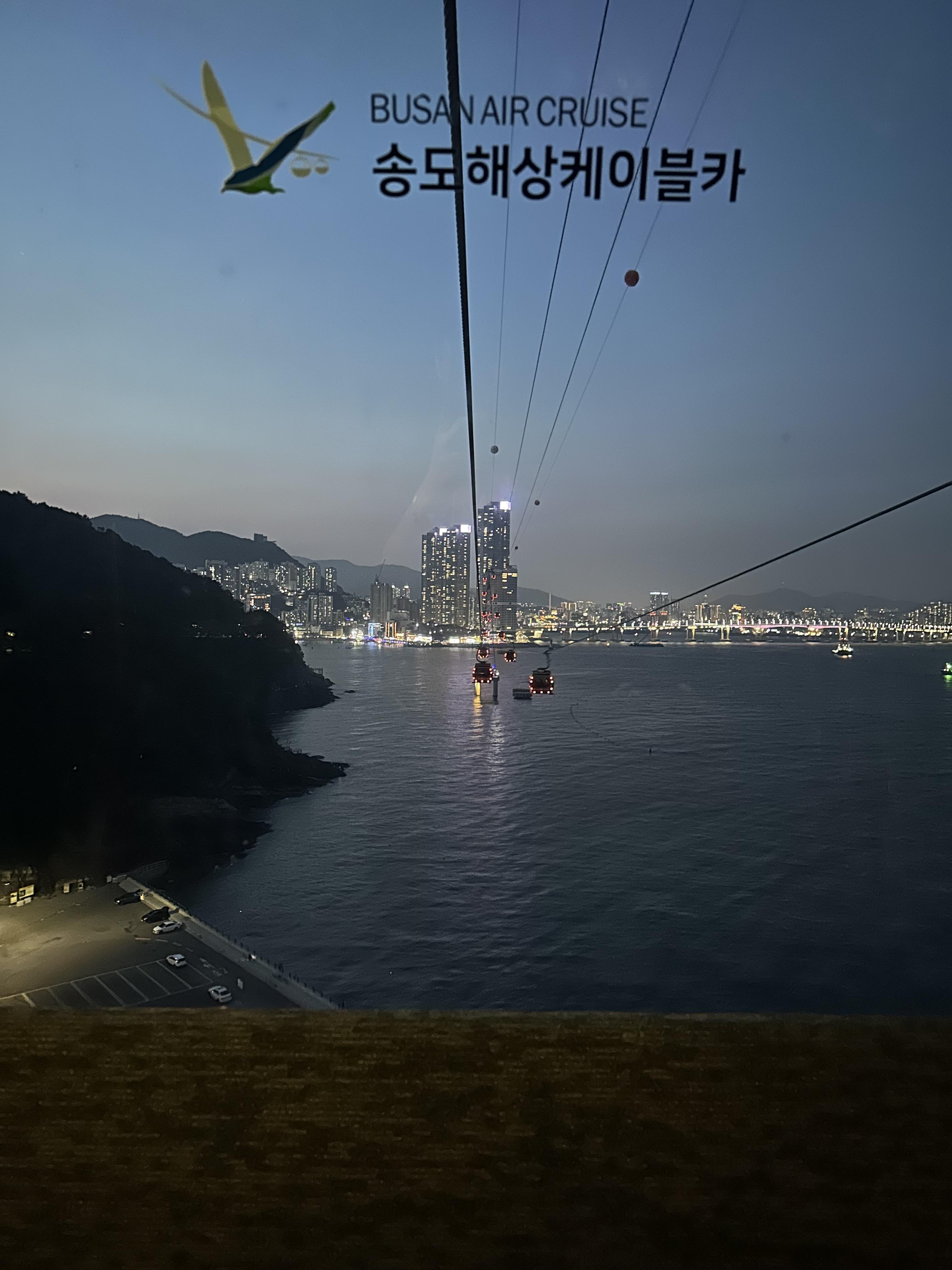 케이블카에 몸을 싣고 출발한지 얼마 안된 사진입니다. 20시가 넘어서 어두워진 모습을 볼 수 있으며 부산 송도의 밤바다가 눈앞에 펼쳐지는 모습이었습니다. 부산 송도는 광안리나 해운대에 비해 관광객이 그렇게 많지 않습니다. 대부분의 부산 관광객은 해운대나 광안리를 많이 찾기 때문이죠. 아직 부산의 송도는 사람들에게 알려지지 않은 보물 장소와 같습니다.