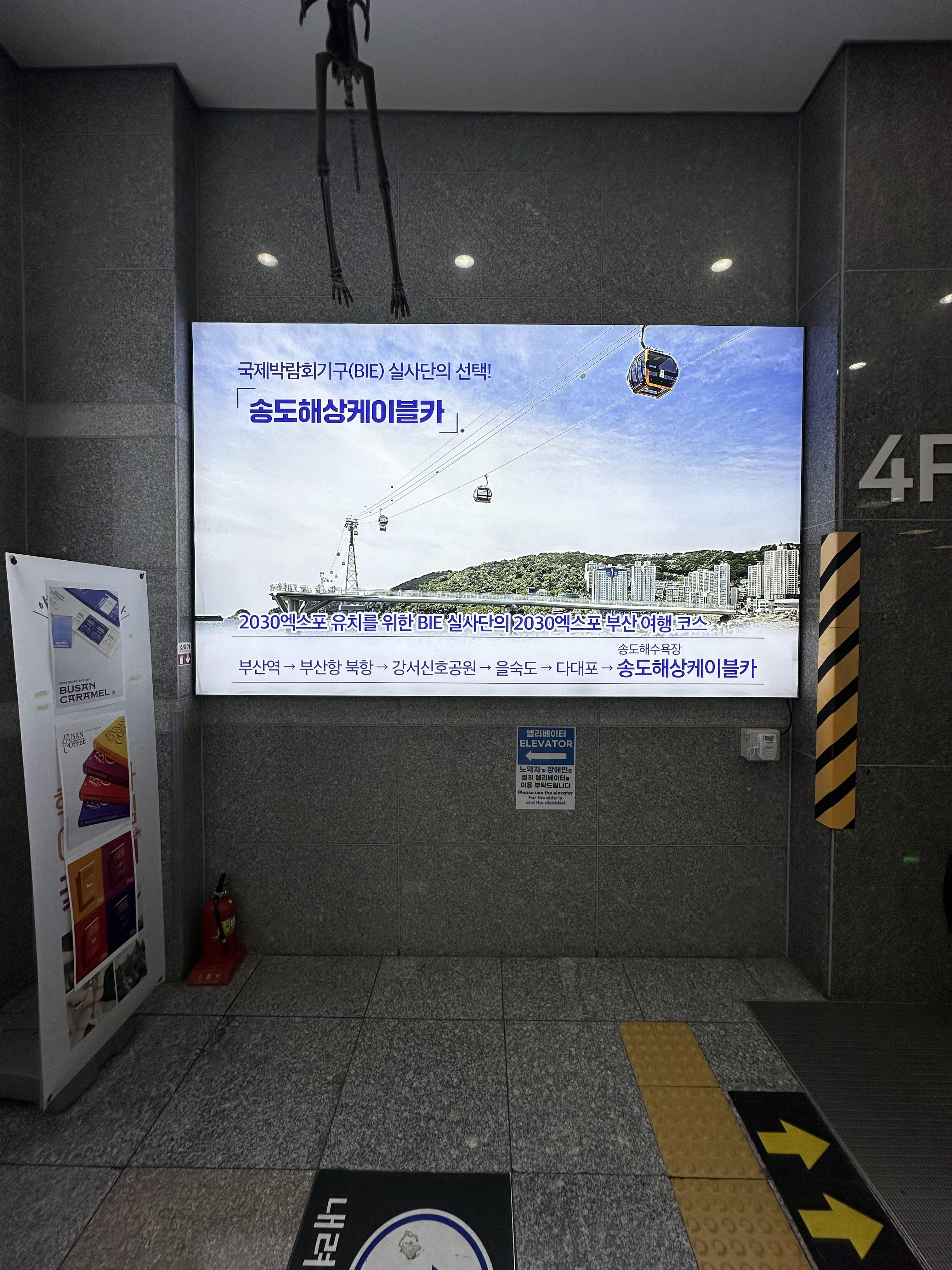 이상으로 부산 송도해상케이블카 하부승강장 베이스테이션을 출발해서 암남공원을 마치고 돌아올 때는 케이블카를 타고 부산의 밤바다를 보고 돌아온 후기를 마치도록 하겠습니다. 포스팅을 마치면서 2030 부산 엑스포와 관련된 사진 1장으로 마무리 했는데요. 포스팅을 하면서 부산 송도에 대해 아쉬운 소리를 했는데 무언가 안심이 되면서 부산이라는 도시에 대해 다시 한번 서울만큼 대단한 도시라는 것을 느꼈습니다. 국내에서는 경부선 고속열차와 고속버스까지 전국에서도 부산을 가지 않는 노선은 없을 정도로 부산은 서울만큼 대중교통이 많고 활발한 지역입니다. 사람이 살다보면 일상속에서 지치고 힘들 때 힐링을 하기 위해 여행을 떠나는데 이 때 개인 차량보다는 대중교통을 통해 편하게 가고싶을 수 있습니다. 하지만 우리나라는 지방 대도시르 제외하면 사실 조용하게 떠날 수 있는 곳은 그리 많지가 않습니다. 부산도 광안리, 해운대, 서면, 남포동은 사람이 많지만 도시가 커지고 관광지로써 인기와 함께 세수가 많아지다보니 부산 외곽지역에도 관광지가 활성화 되는 모습을 볼 수 있습니다. 그리고 이번 여행에서 부산 송도가 그런 역할이었습니다. 부산 외곽에 위치해있다보니 사실 오기가 쉽지 않은 것은 맞습니다. 특히 부산 송도해상케이블카 바로앞까지는 시내버스가 가지 않아 접근성이 떨어지는 것은 맞구요. 그렇지만 2030 부산엑스포를 송도에서 유치할 예정이라고 하니 부산역과 부산시내에서도 송도까지 대중교통이 더 좋아지고 주변 상권도 좋아질 것으로 예상됩니다. 힐링을 하기 위해 떠나는 부산여행 그리고 조용한 부산 여행을 하고싶다면 사람들이 자주 찾고 익숙하게 알려진 광안리나 해운대보다 아직은 보물이 덜 발견된 송도 여행은 어떤가요?