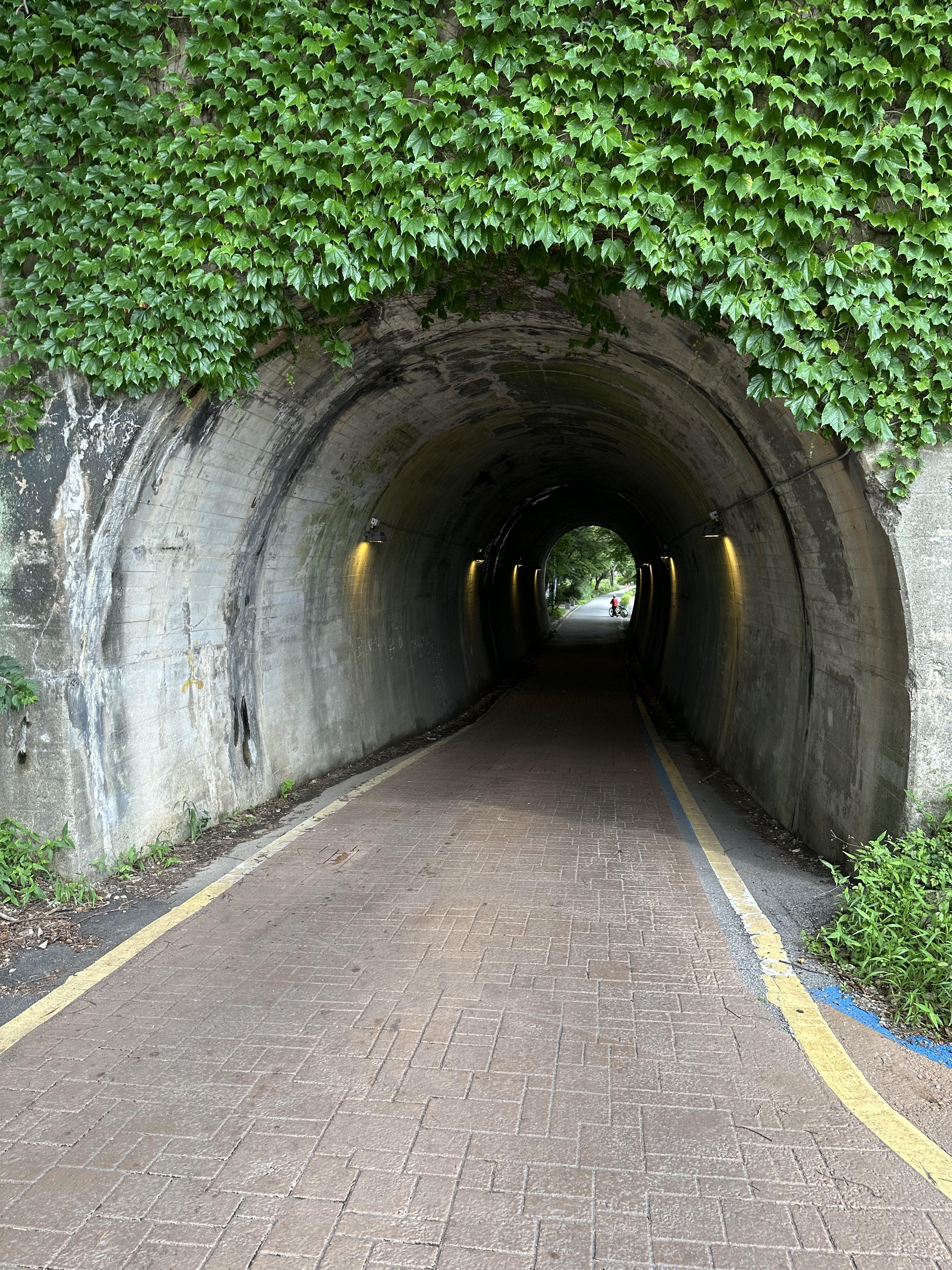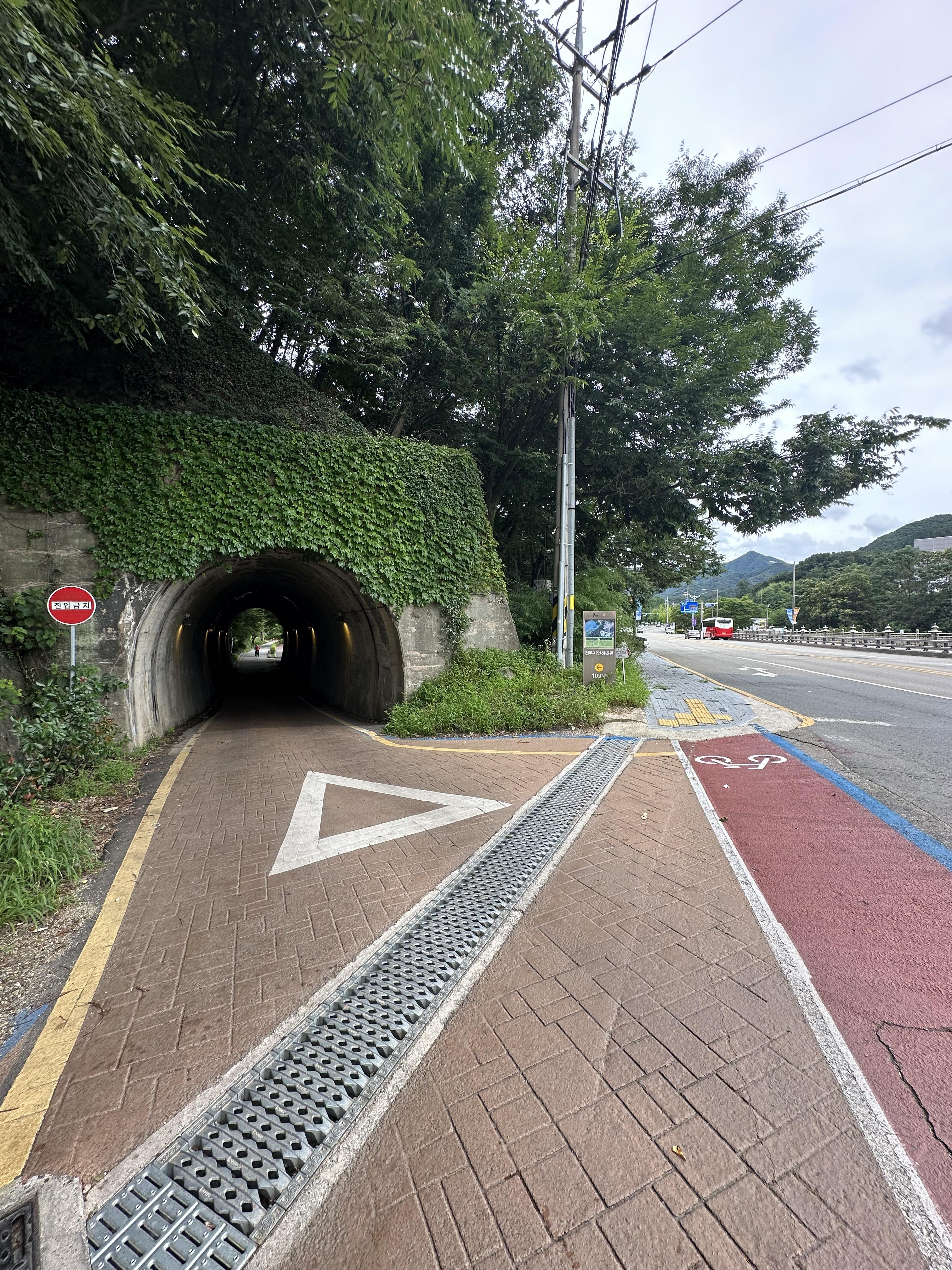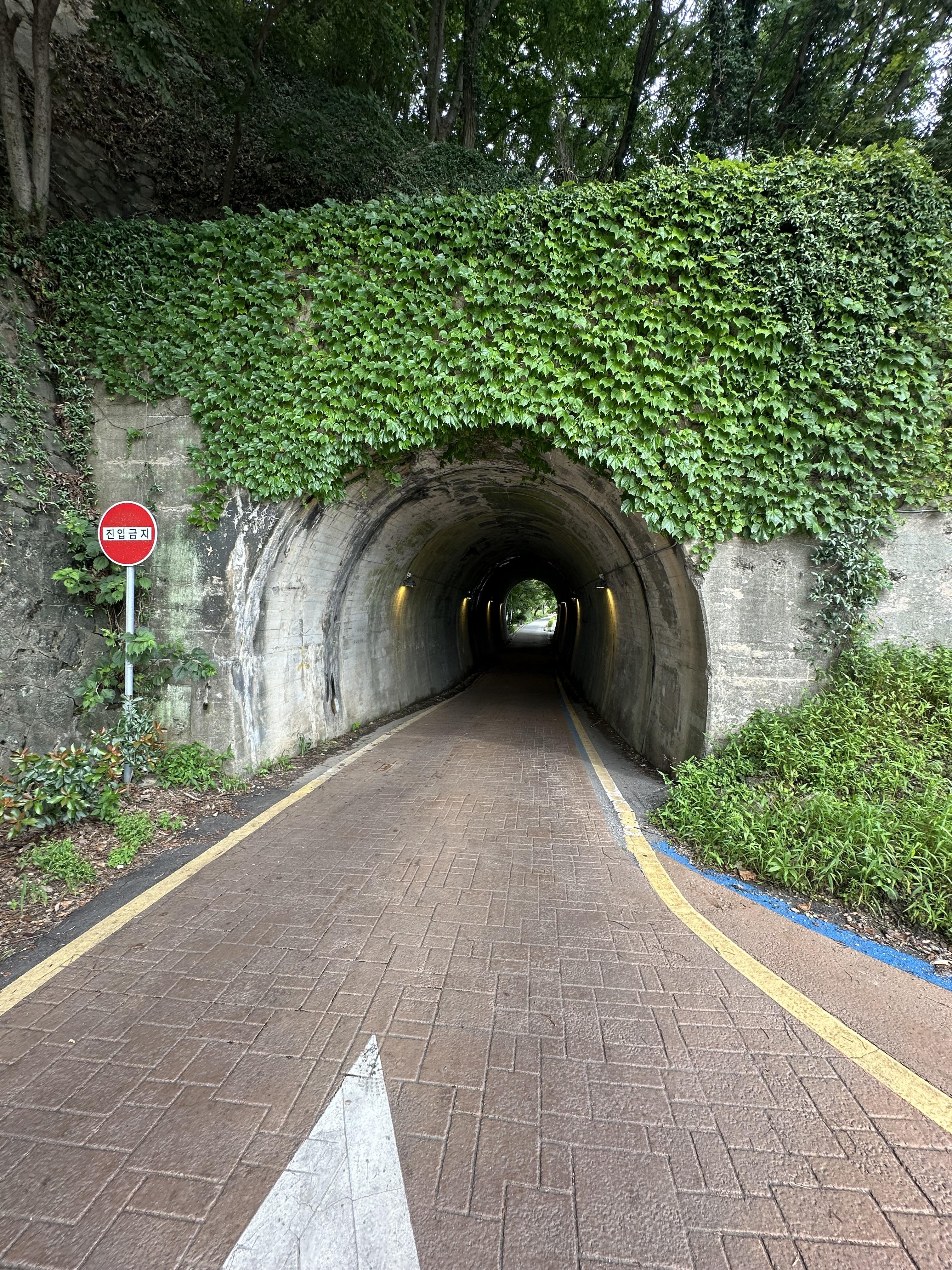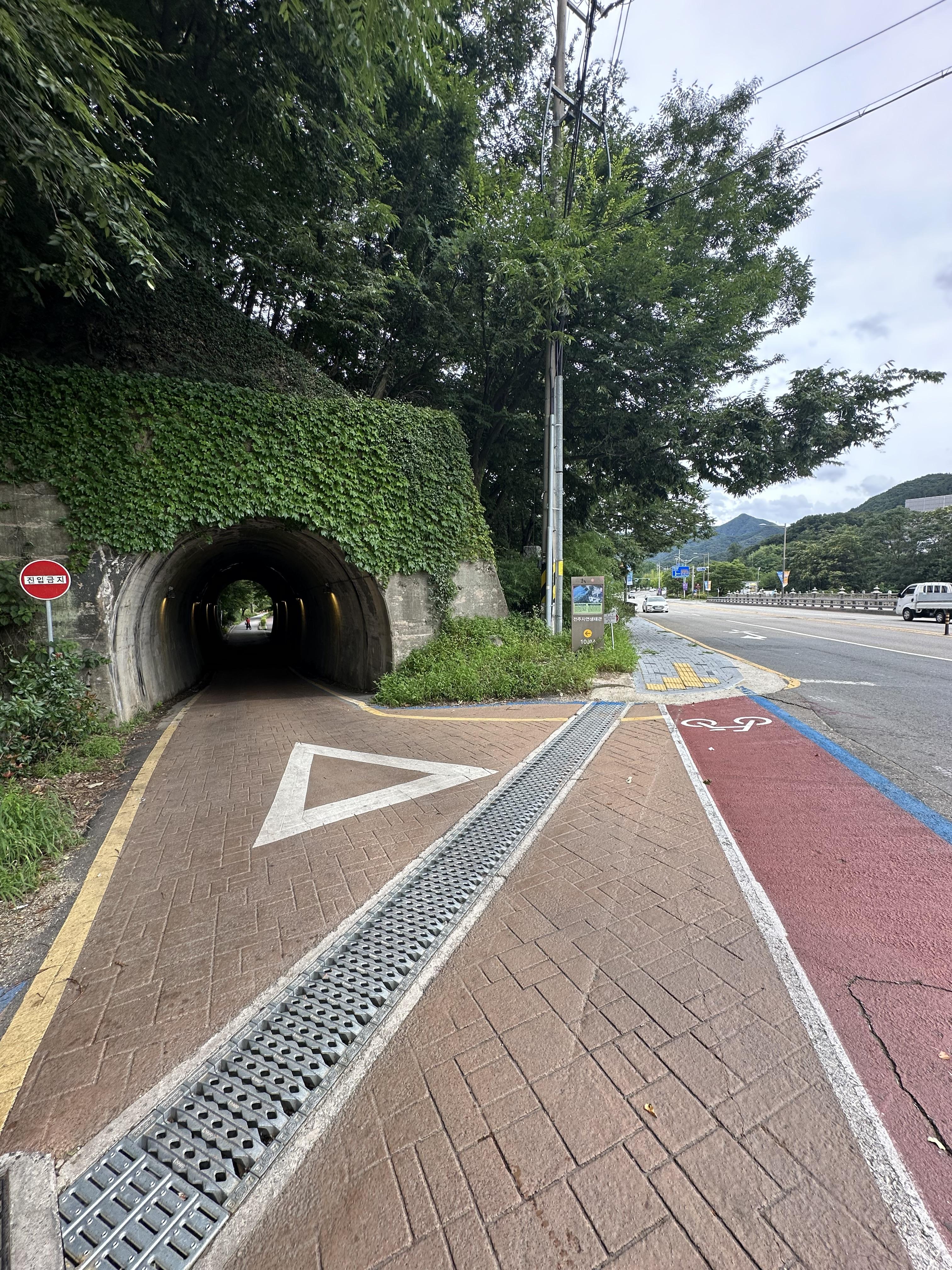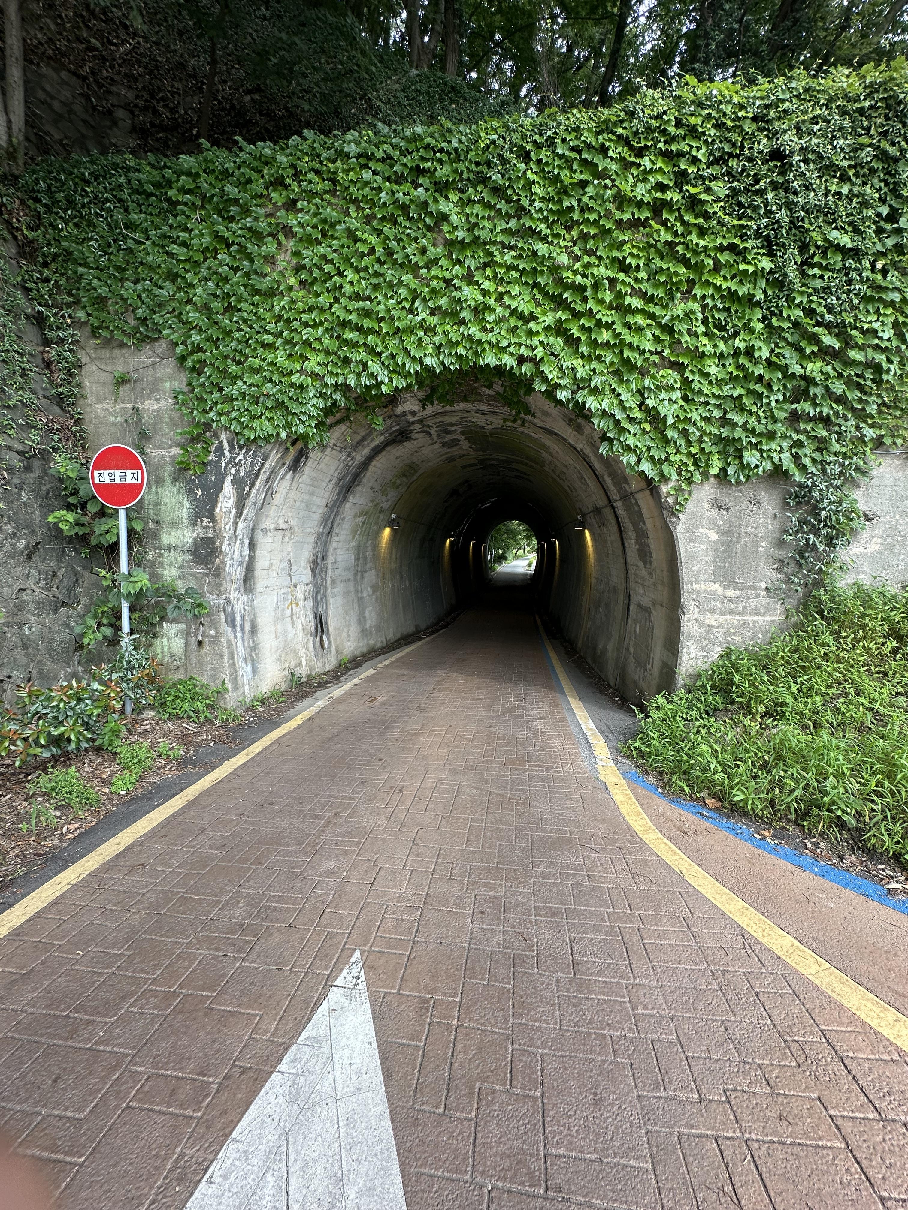 한옥마을에서 한벽터널로 들어오는 입구에는 자연 숲속공원이 느껴지듯이 터널 위로 숲이 터널을 감싸고 있는 것을 볼 수 있습니다. 한벽터널은 국내 다른 일제강점기 터널과는 다르게 짧은 터널로 조금만 걸어나가면 전주천과 함께 숲속 작은 공원이 눈아펭 펼쳐지게됩니다.