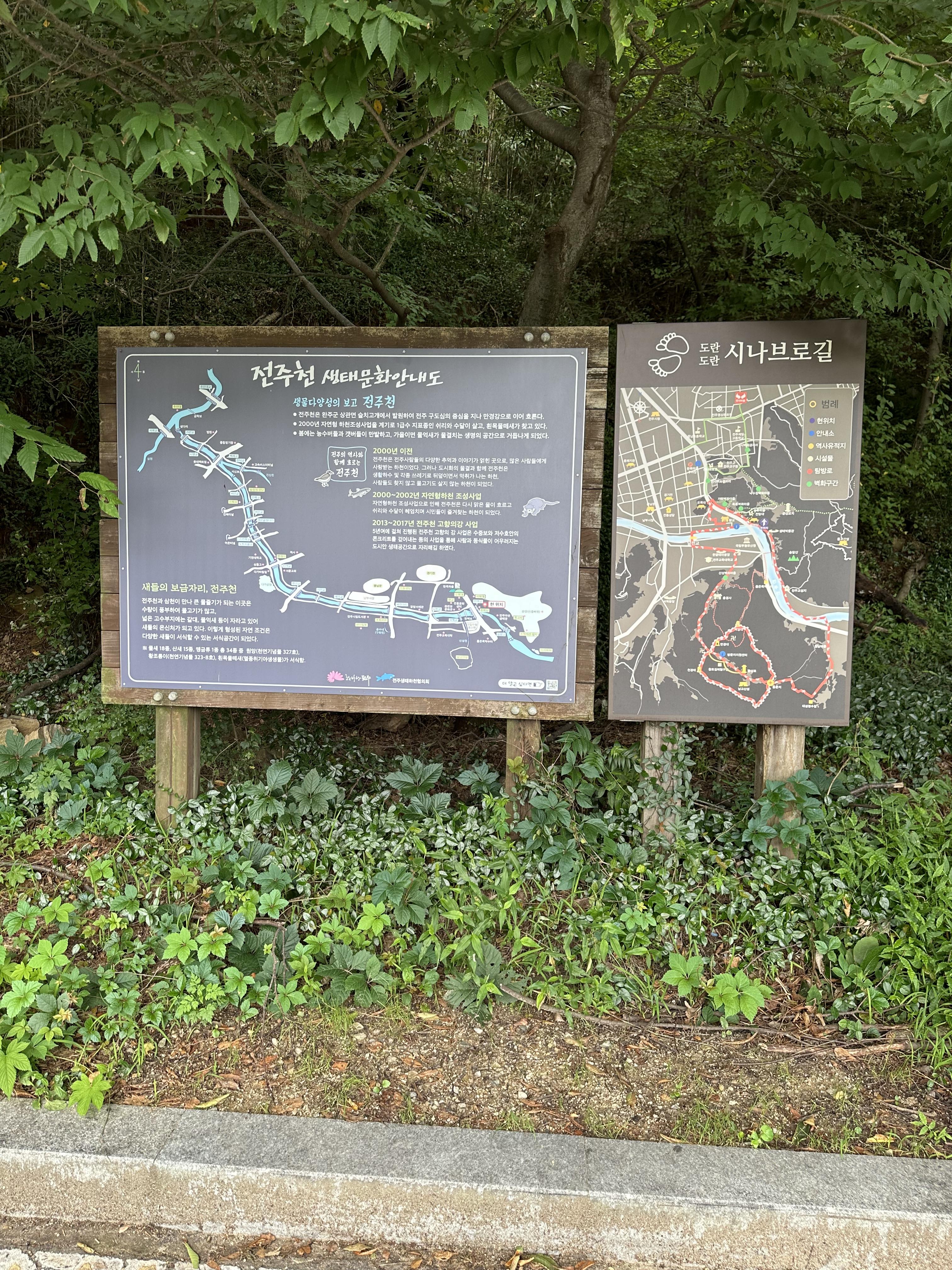길지 않은 짧은 한벽터널(한벽굴)을 빠져나오니까 현재는 자연생태공원으로써 오른쪽으로는 전주천과 전주한옥마을까지도 길건너 가지 않고도 갈 수 있는 골목이 있었습니다. 제가 이 골목으로는 가지는 않았지만 제 포스팅 중 스물다섯 스물하나 전주한옥마을 포스팅 마지막 한벽집과 이어지는 것으로 보이고 있습니다.