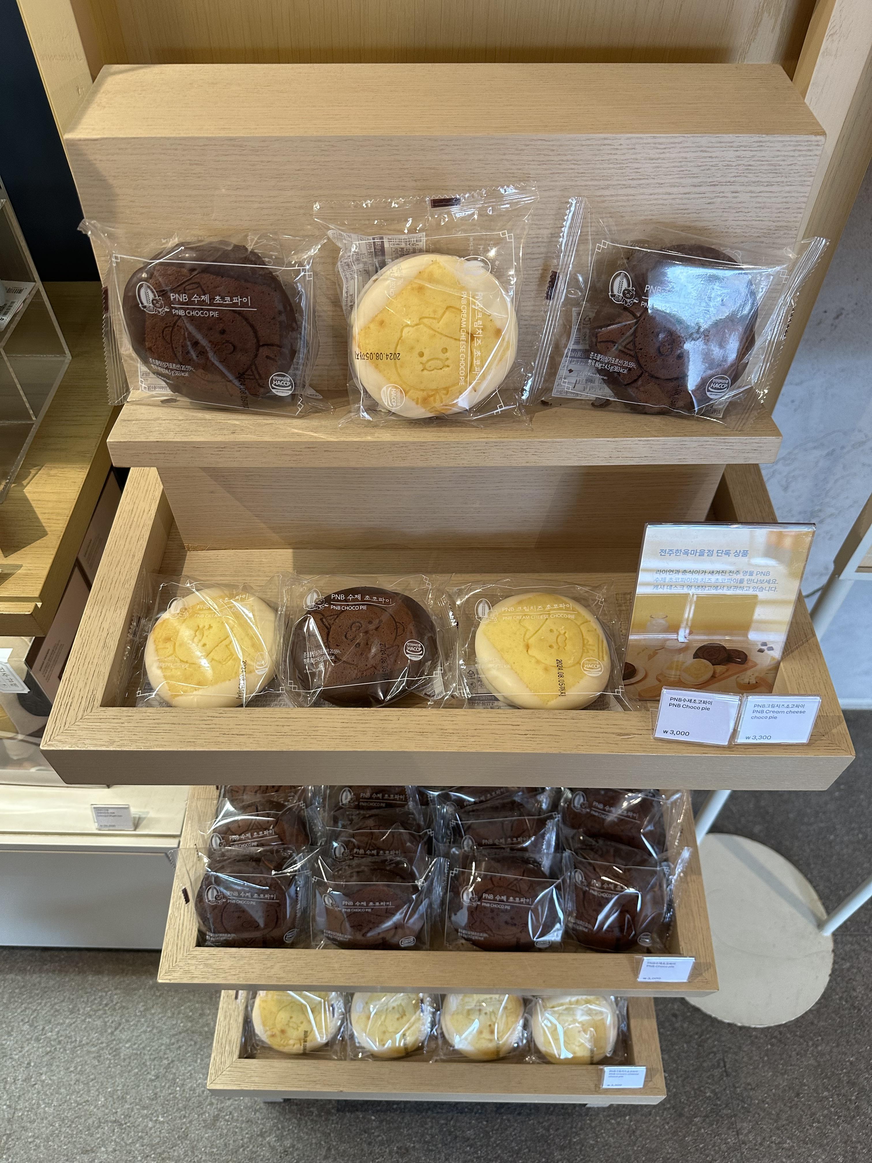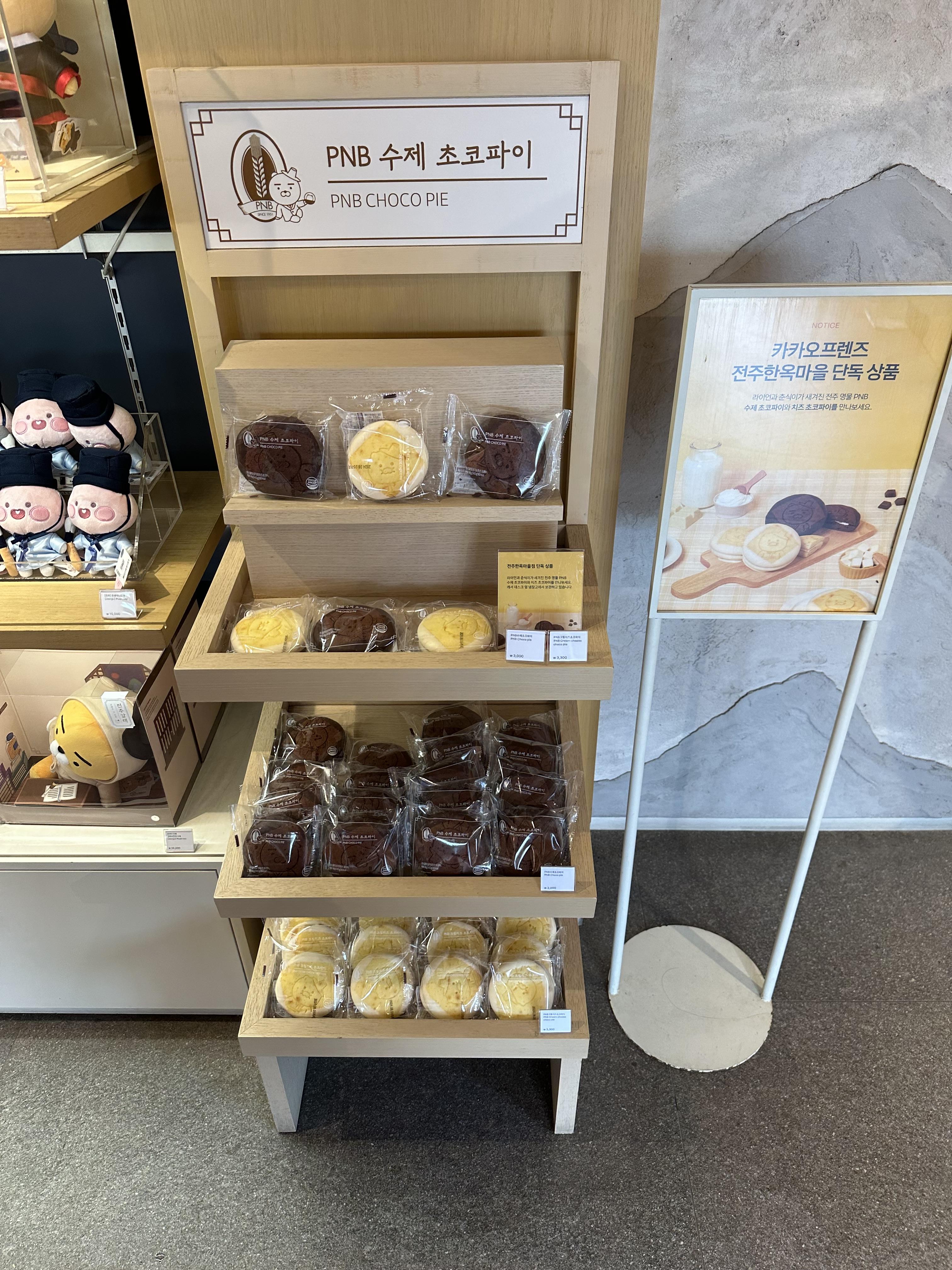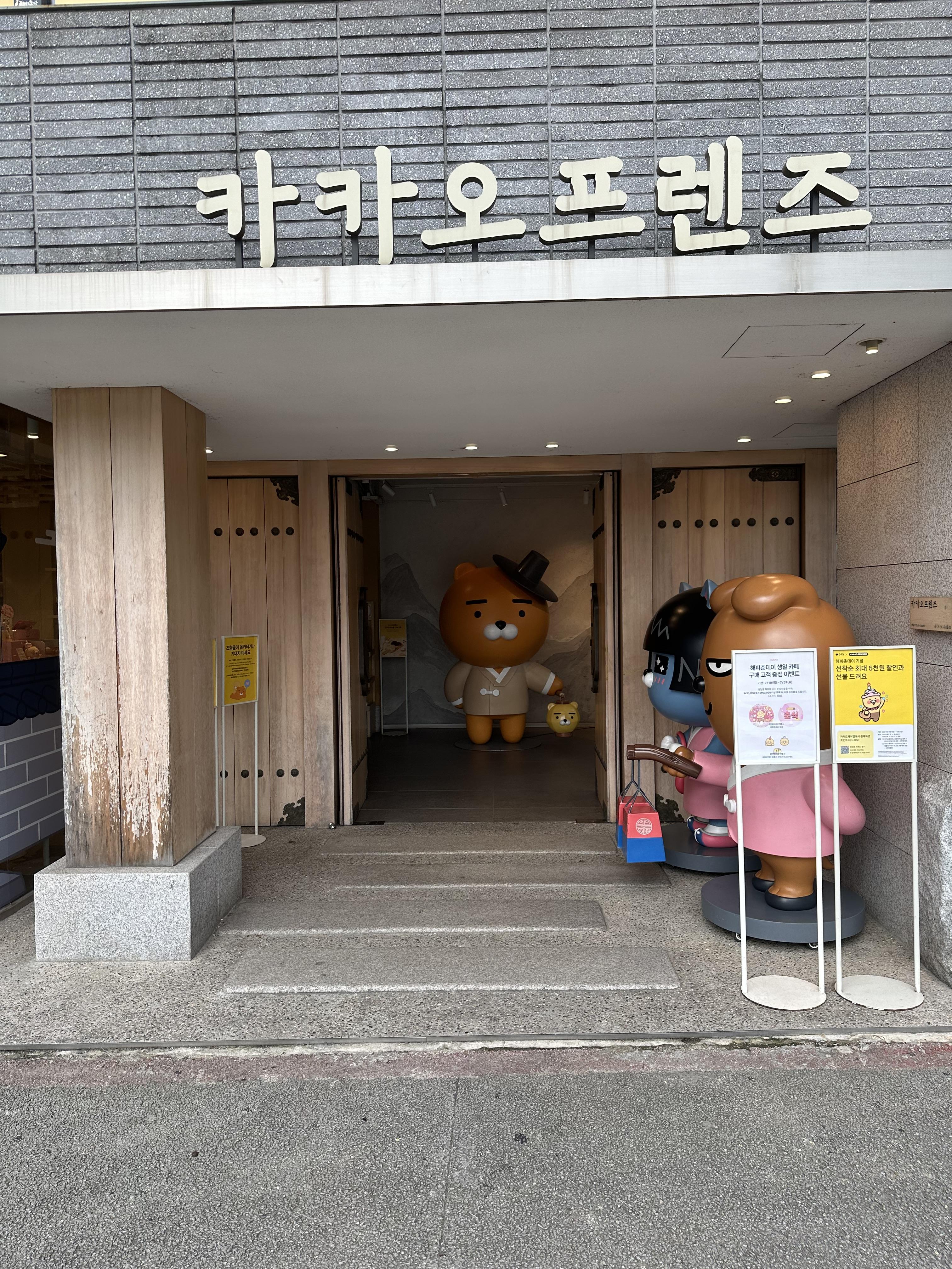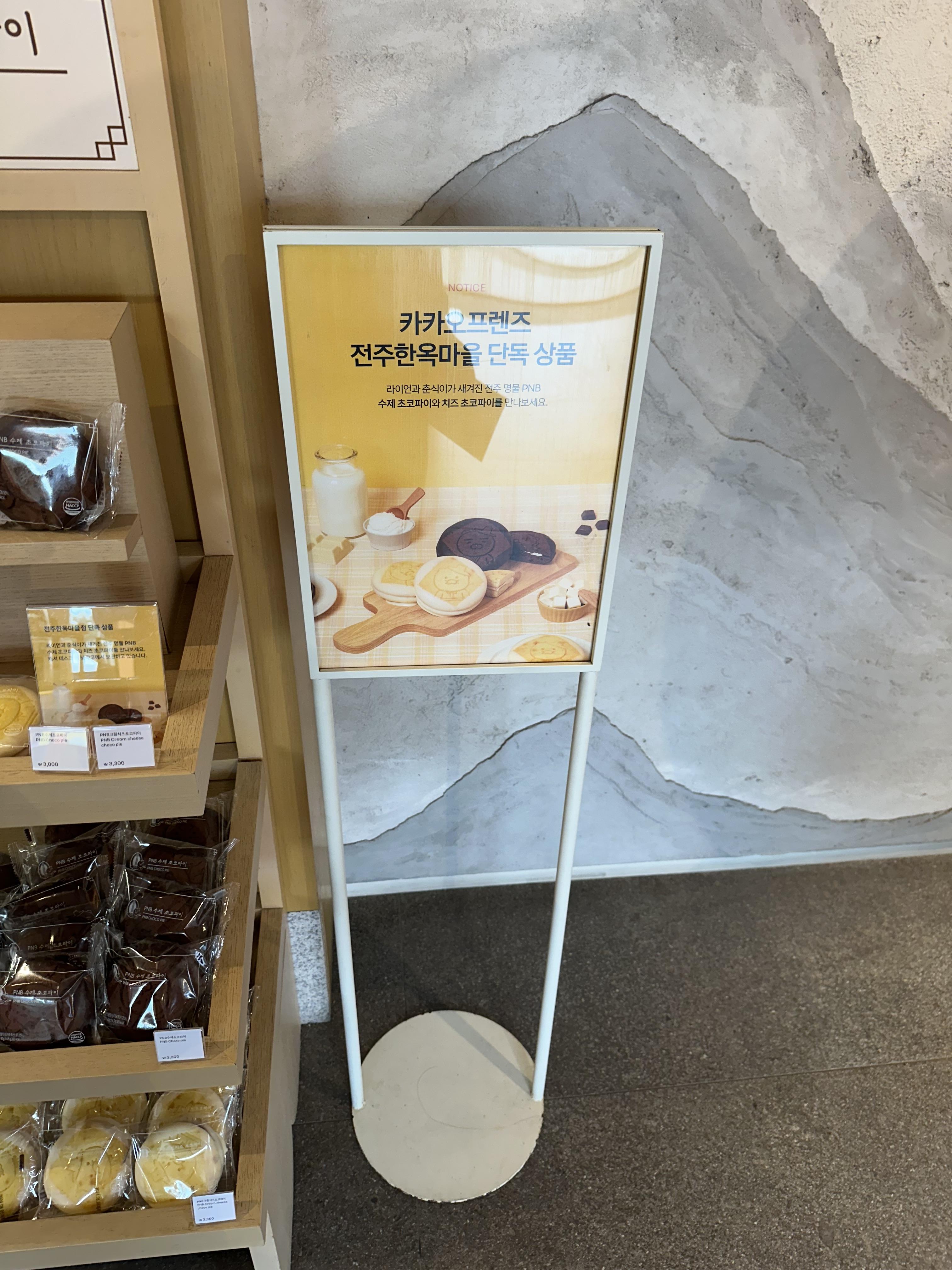 전주 전동성당부터 시작해서 점심으로 베테랑 칼국수를 먹고 더운 여름 한옥마을과 한벽굴(한벽터널)까지 한바퀴를 돌아본 역사 걷기 여행이었습니다 그리고 입구에는 마치 한옥마을의 기념품 구입하라는 의미처럼 카카오 프렌즈가 있었고 한옥 느낌이 나는 한옥 카카오 프렌즈가 있었습니다. 전주 카카오 프렌즈라 그런지 전주에서 유명한 쵸코파이도 카카오프렌즈에서 판매하고 있습니다. 외관도 내부도 한옥과 카카오 캐릭터를 각각 볼 수 있었습니다.