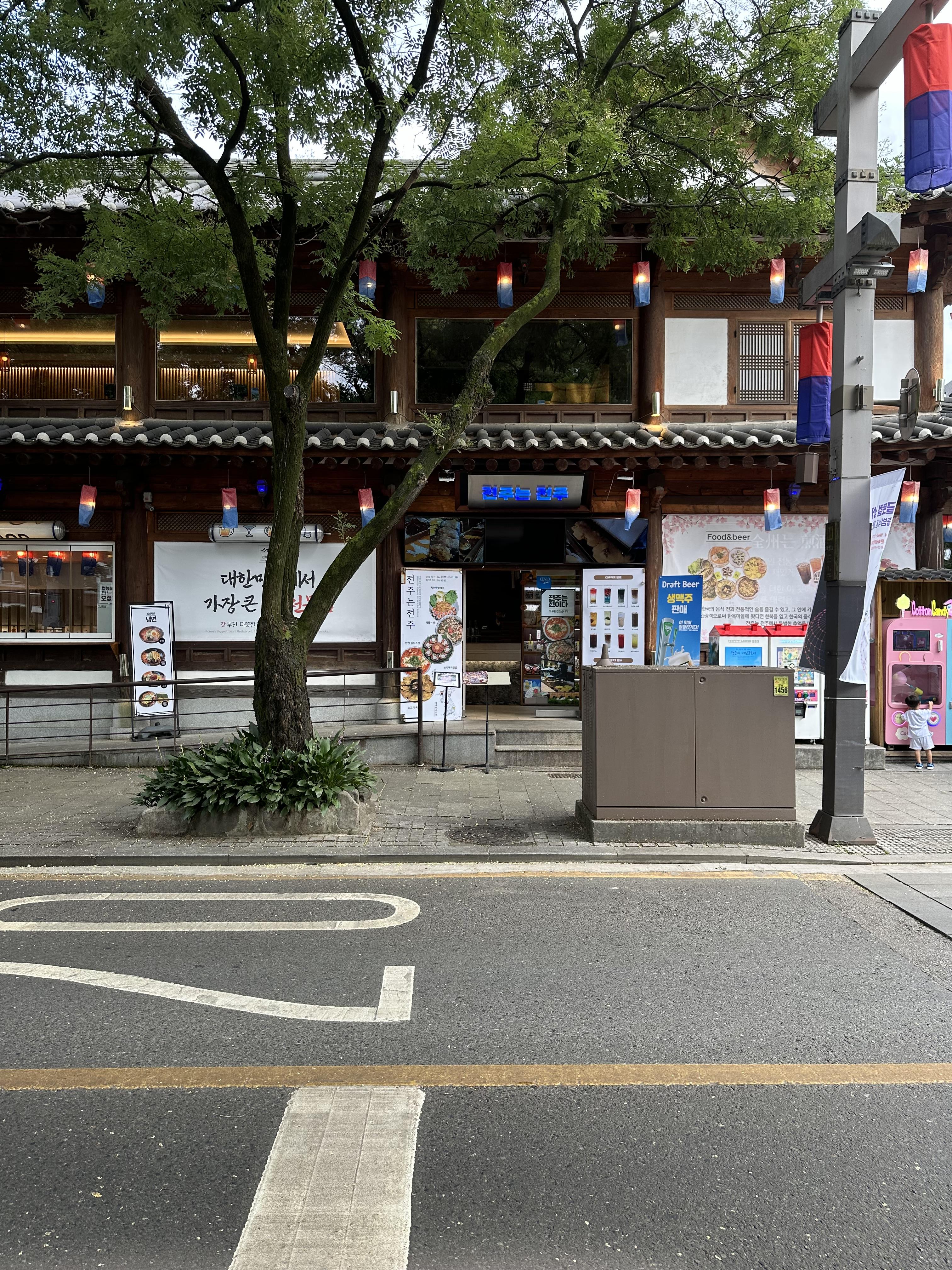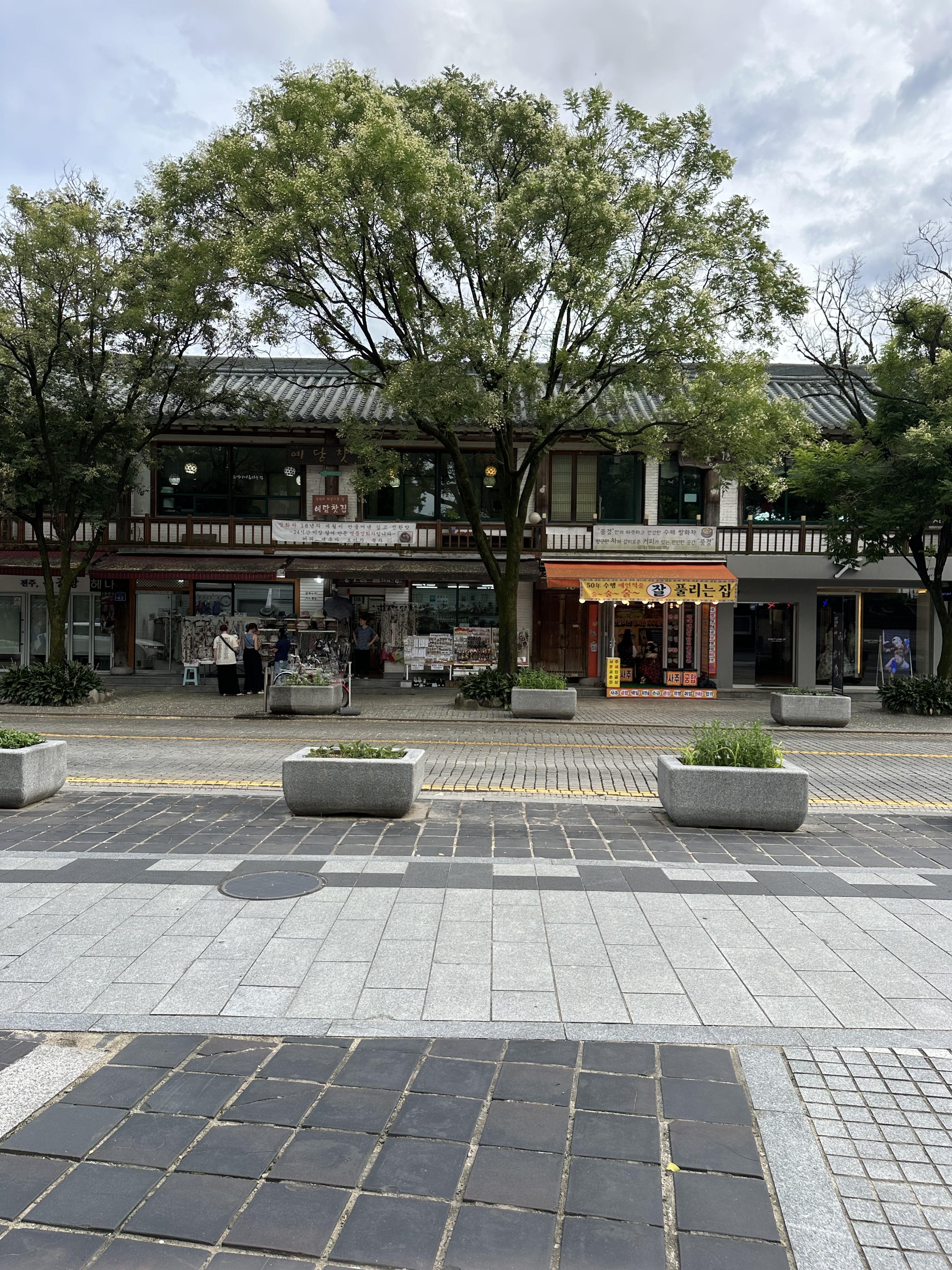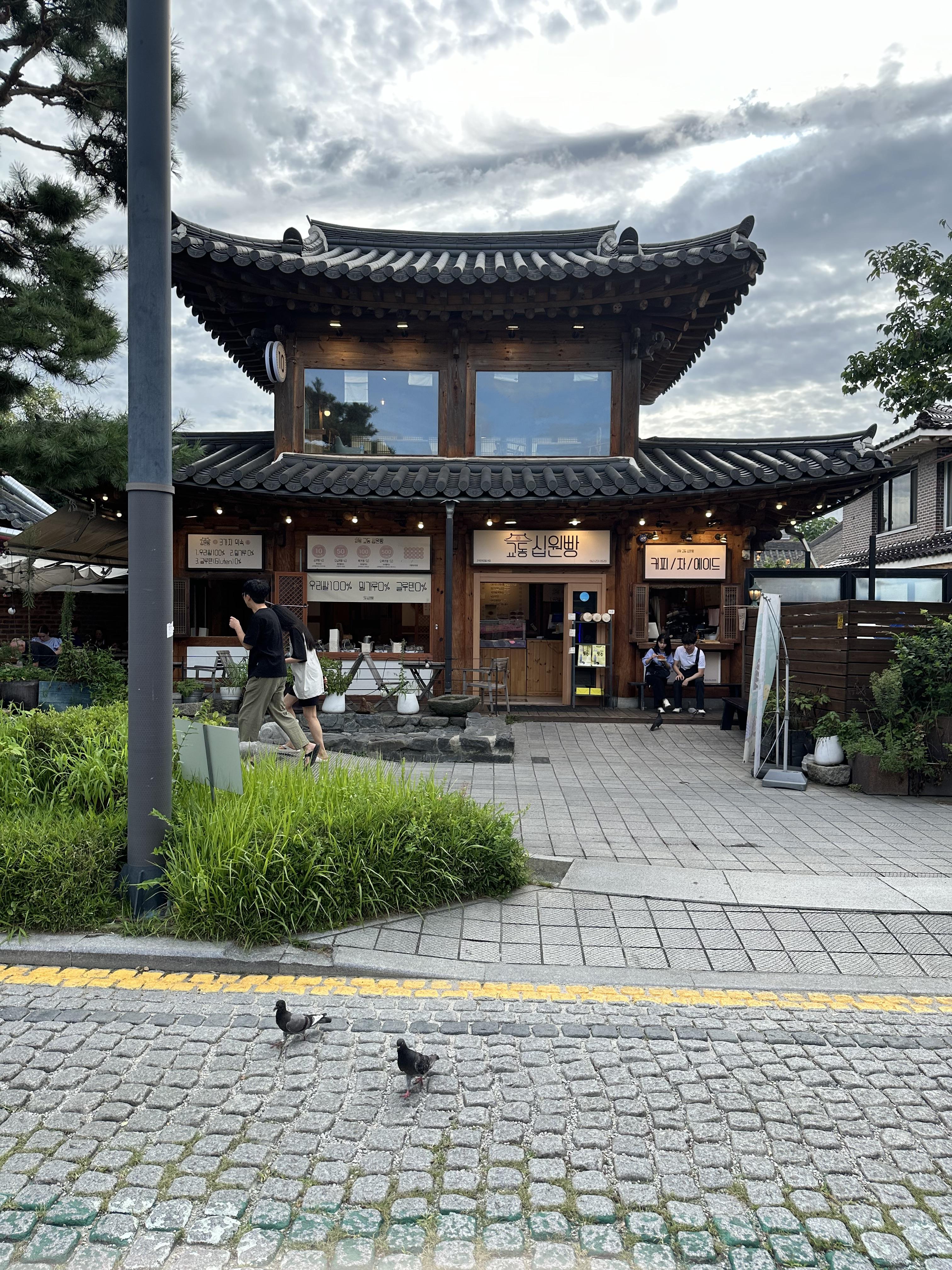 전주의 한옥마을 카페 거리를 걸으며 저는 경기전으로 이동합니다. 저는 과거 몇년전에도 방문했던 포스티빈이라는 한옥 갤러리카페에서 시원한 생과일 쥬스를 마시고 한옥거리를 걷는데요. 한옥거리답게 바닥부터 한옥에 온듯한 느낌을 받습니다. 전주 한옥마을에 십원빵이라는 가게가 보이는데요. 2층으로 이루어진 한옥에서 모던스럽게 개조된 한옥에 창문으로 개조된 모습이 과거 한옥에서 모던 분위기 한옥이라는 것을 물씬 여겨지는 것 같습니다. 우리나라 한옥들은 과거 창문없이 자연 바람을 그대로 시원하게 느낄 수 있지만 창문을 설치하고 안에서 따뜻한 난방과 에어컨을 맞이할 수 있다는건 한옥이 과거에서 현대로 리뉴얼 된 것임을 알 수 있습니다.