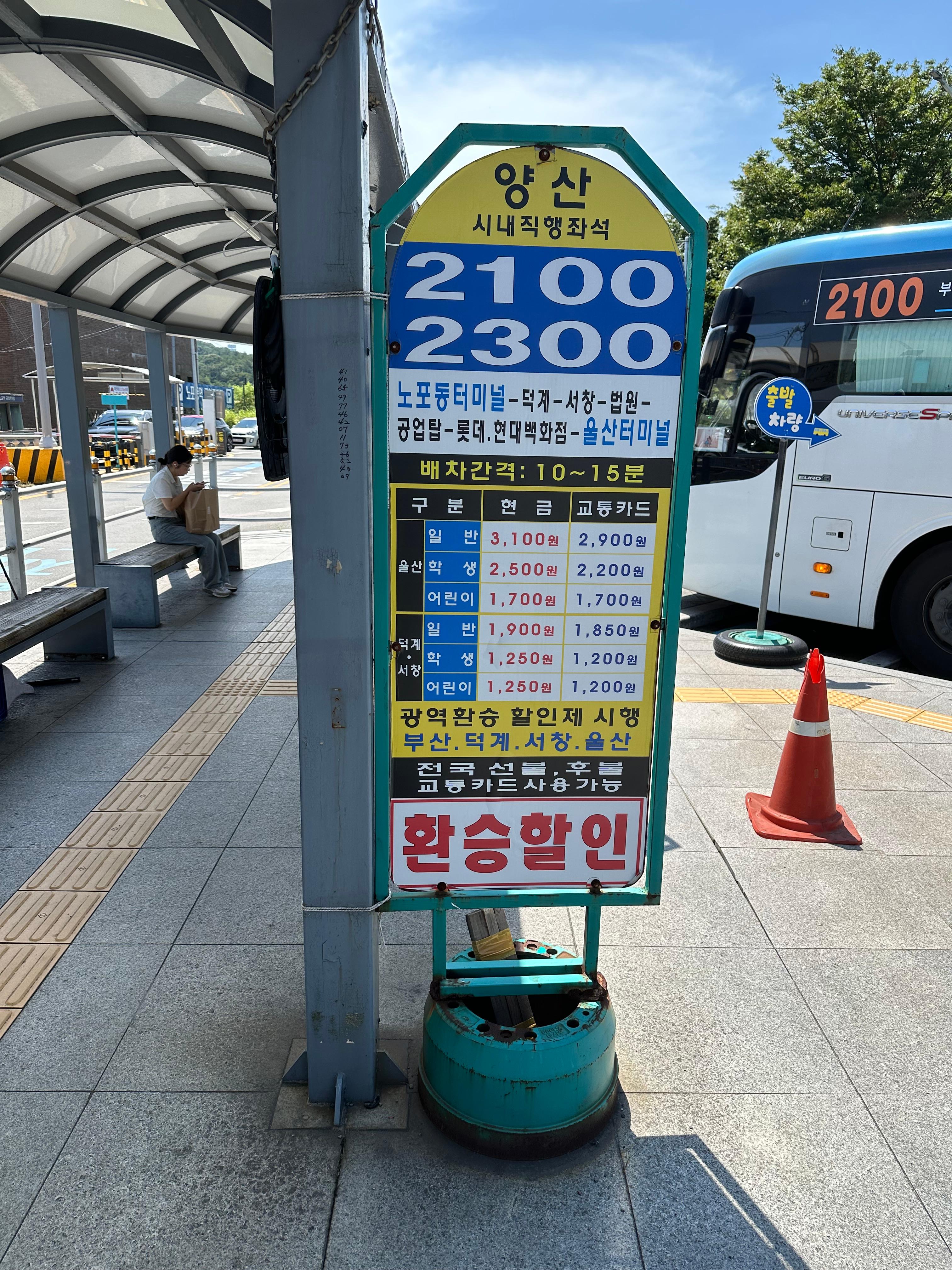 - 울산, 양산 방향 노선 이용 (울산 시내는 노포동 터미널 반대편 시내좌석급행 환승정류장 이용)