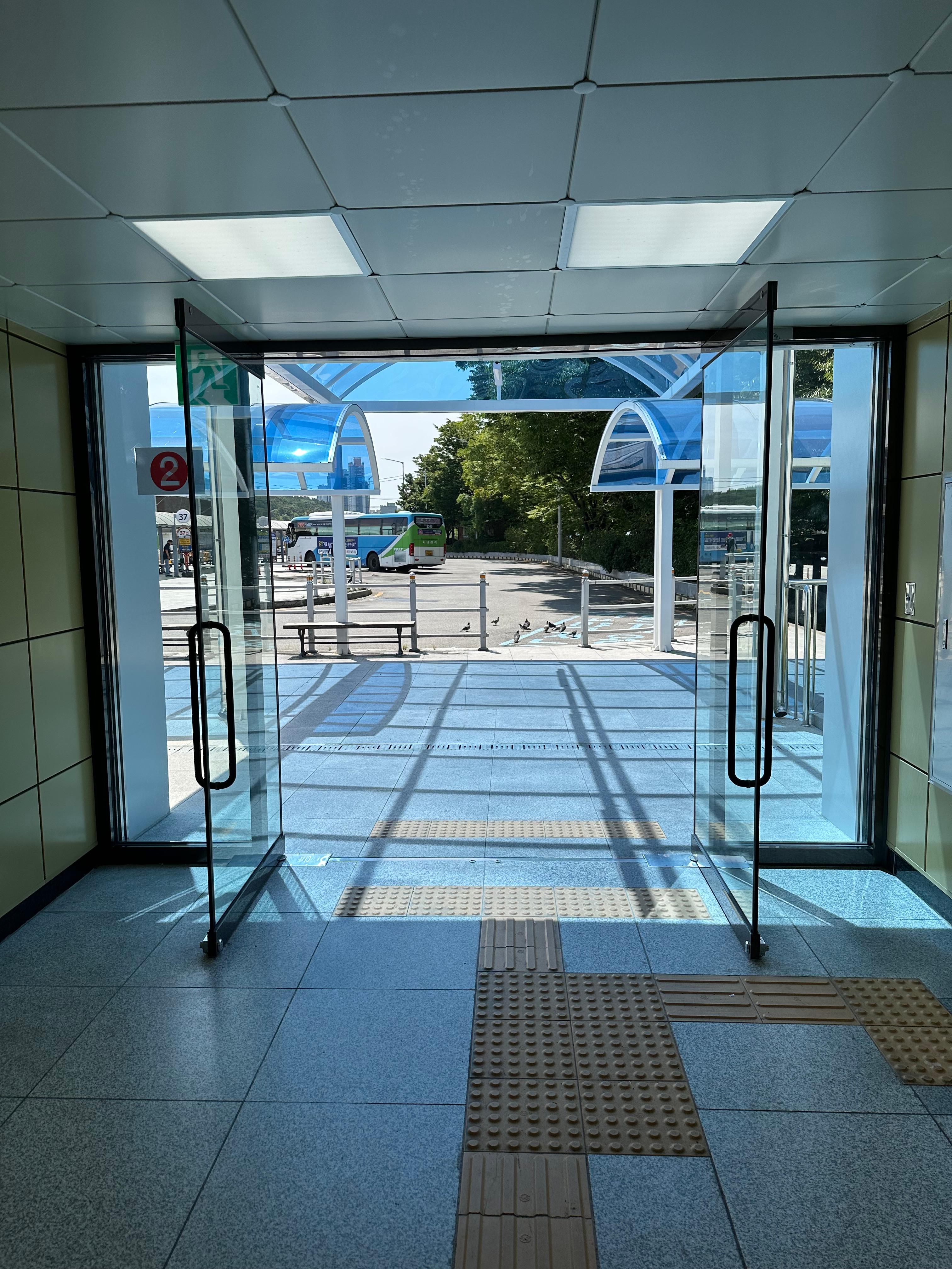 노포역에 설치된 개찰구는 다소 오래된 개찰구처럼 보였습니다. 제가 어렸을 때 지금으로부터 10년전 개찰구라고 할까요. 물론 교통카드는 태그 할 수 있습니다. 서울도 아직도 지하철 개찰구 중 노포동과 비슷하긴 한데요. 요즘 신설되는 개찰구 보면 카드를 찍으면 자동으로 열리는 구조입니다. 노포역에서 보이는 개찰구는 카드를 찍고 한번 수동으로 회전을 해야 나갈 수 있는 구조입니다. 특히 2년전 개통한 서해선 김포공항을 보면 회전봉을 밀지 않더라도 열리는 방식입니다. 물론 서해선 환승통로는 아직 작동하지 않습니다. 노포역 중간중간 역 보수공사가 이루어지다보니 승강장 뿐만 아니라 여기저기서 보수공사의 흔적을 보이고 있습니다. 노포역에서는 노포동 버스터미널까지 통로가 있으며 1분정도 걸으면 터미널을 마주 할 수 있습니다.