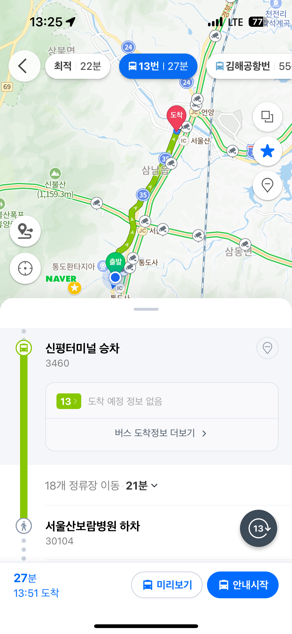 - 언양터미널에서도 13번 버스가 지나가고 있으니 13번 버스 포함해서 네이버지도와 카카오맵 검색 부탁드립니다.
