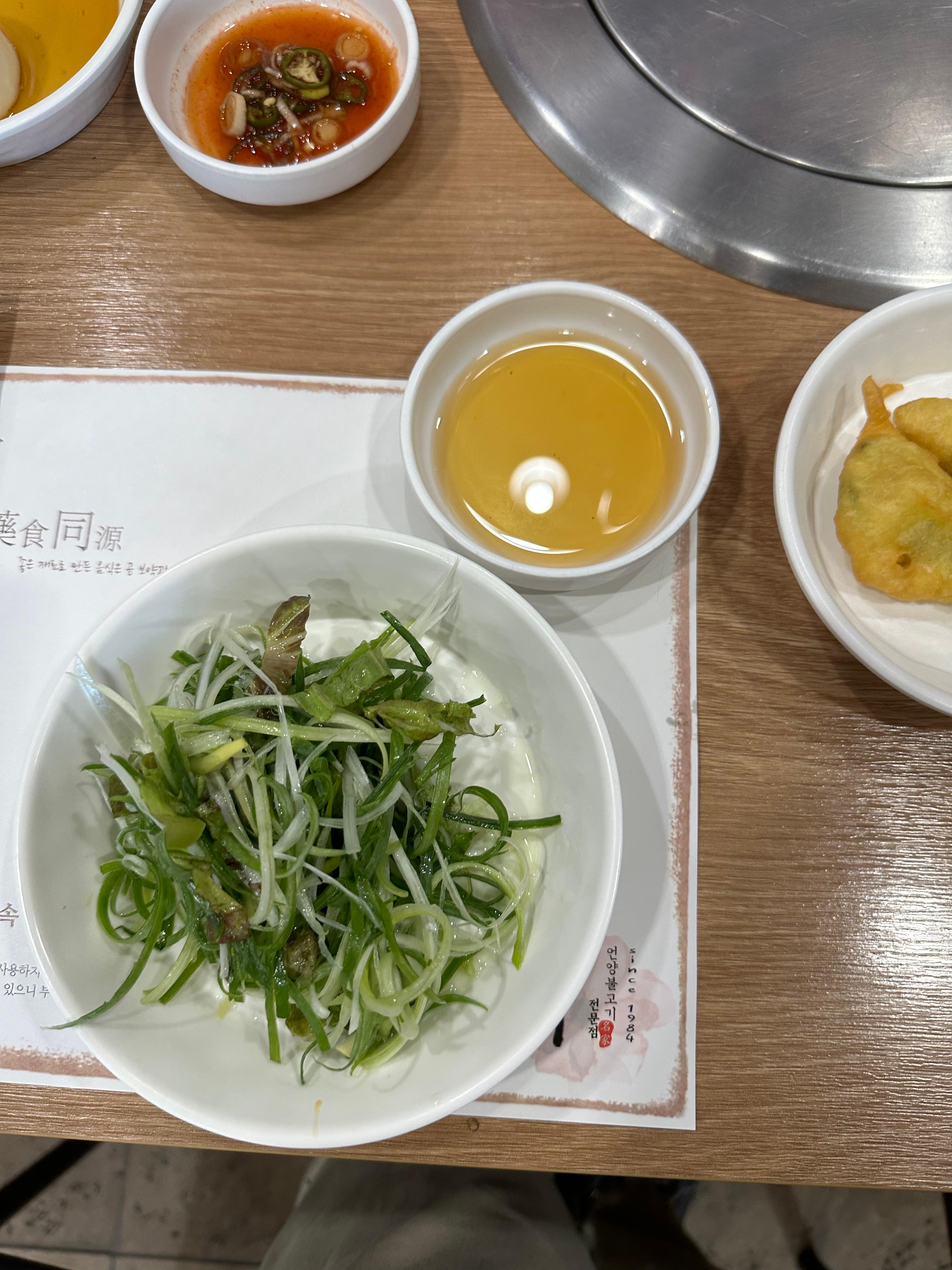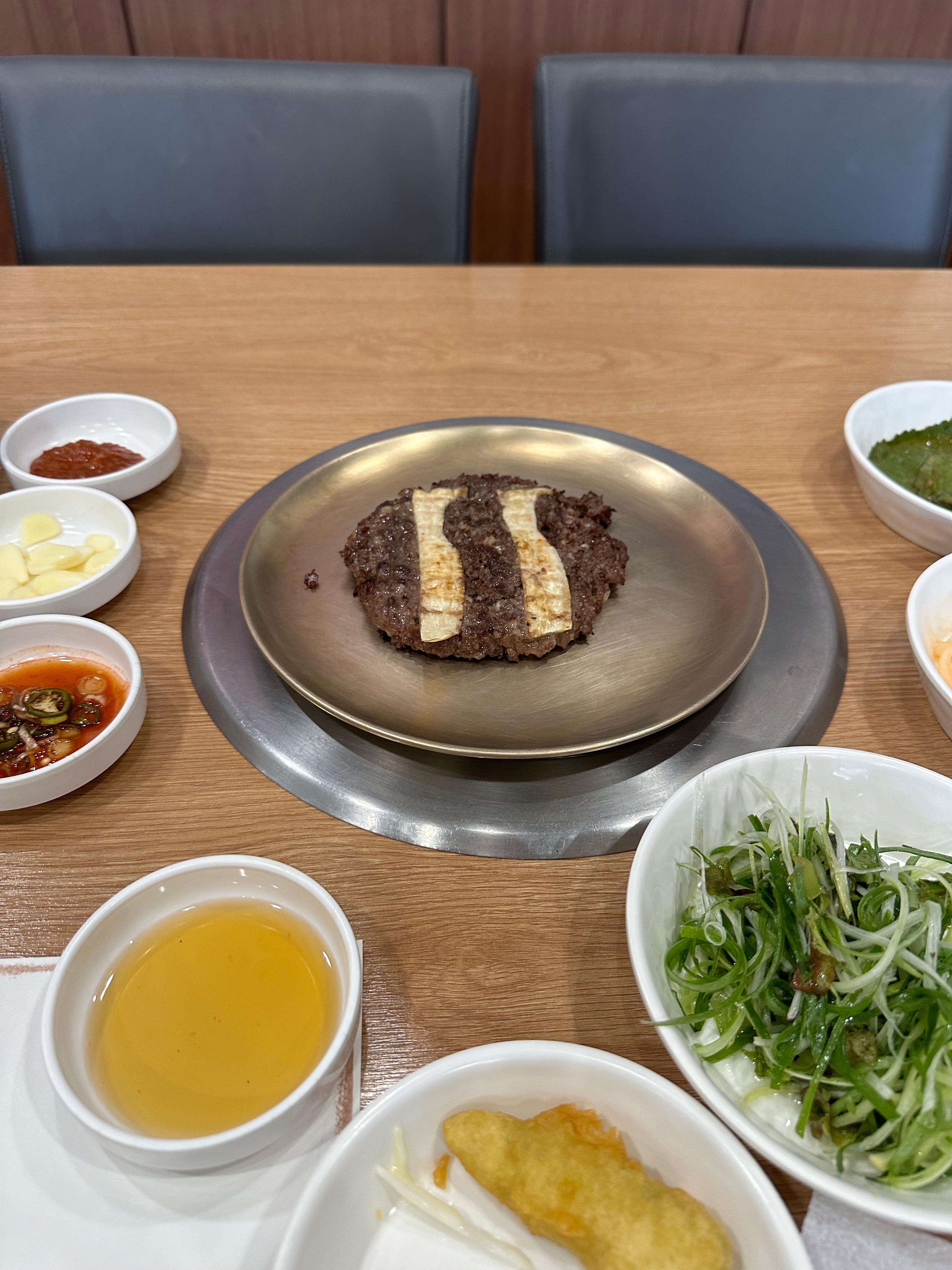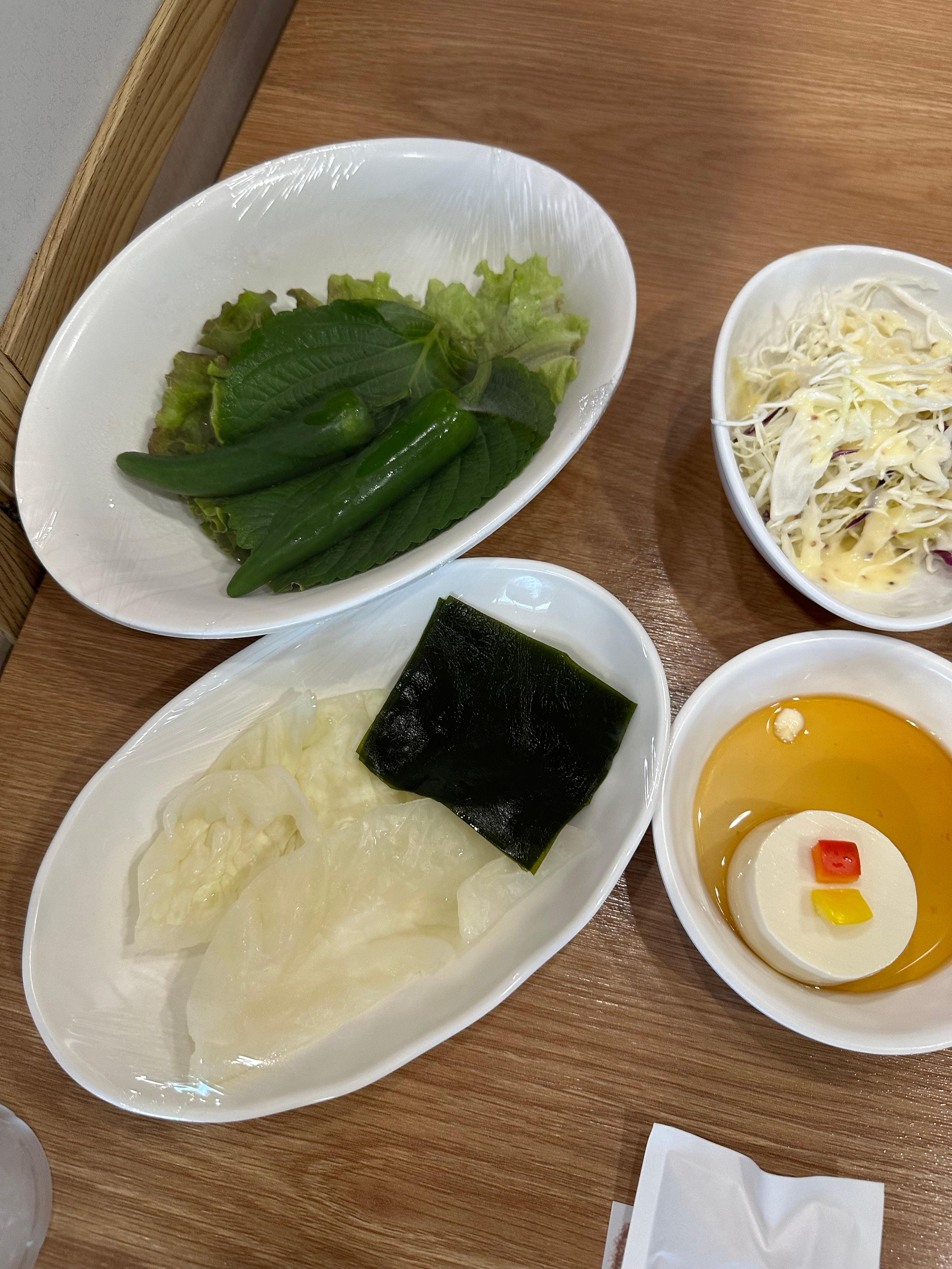 고기는 1인분으로 작은 크기이지만 반찬이 정말 푸짐하게 많이 나오고 된장찌개도 나와서 배부르게 잘먹었습니다. 특히 어렸을 때부터 느낀거는 고기집에서 먹는 된장국은 정말 일품인데요. 고기에 먹는 된장찌개가 맛있는것인지 아니면 가게 된장찌개가 맛있는건지는 잘모르겠ㅅ습니다. 여러 고기집에서 먹은 느낌으로는 그냥 고기집에서 먹는 된장찌개가 가장 맛있는것 같습니다.