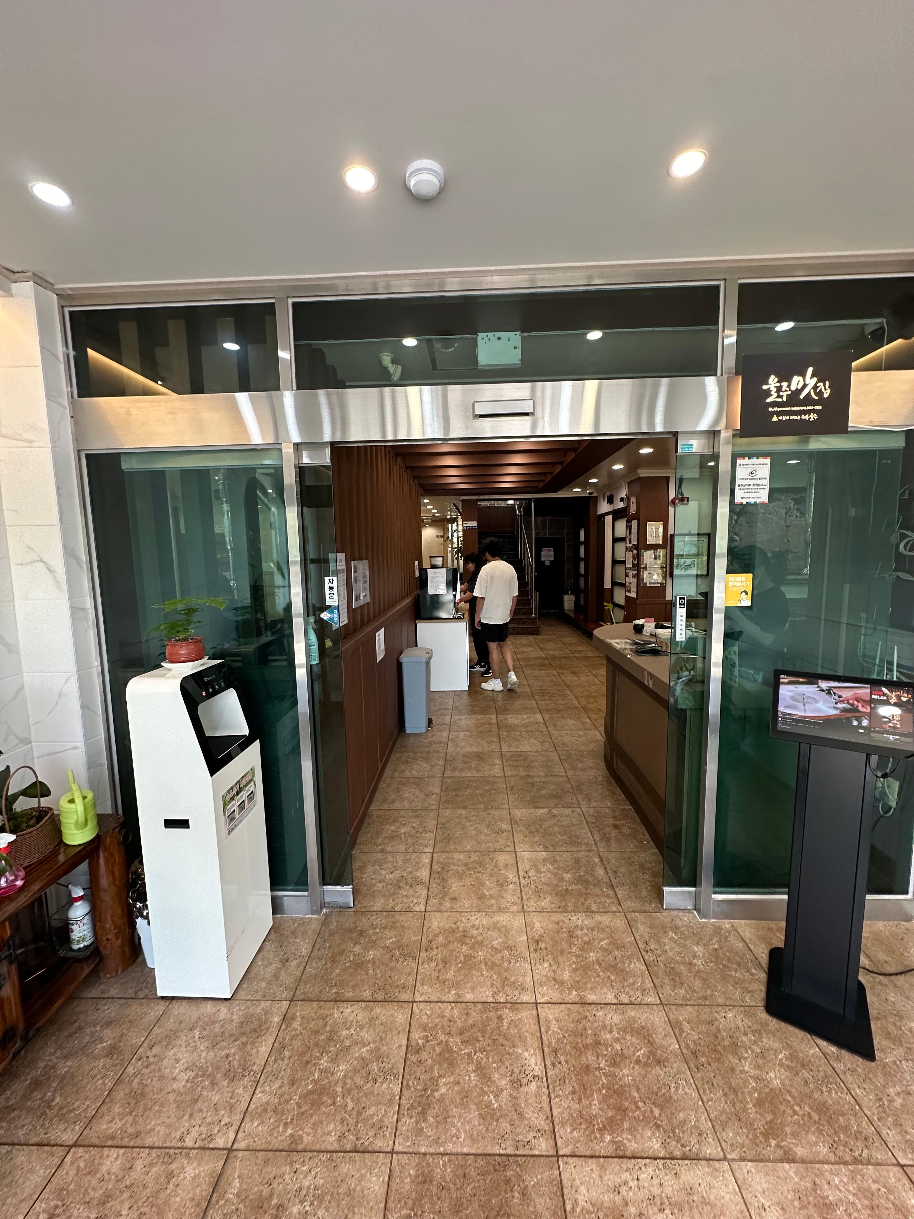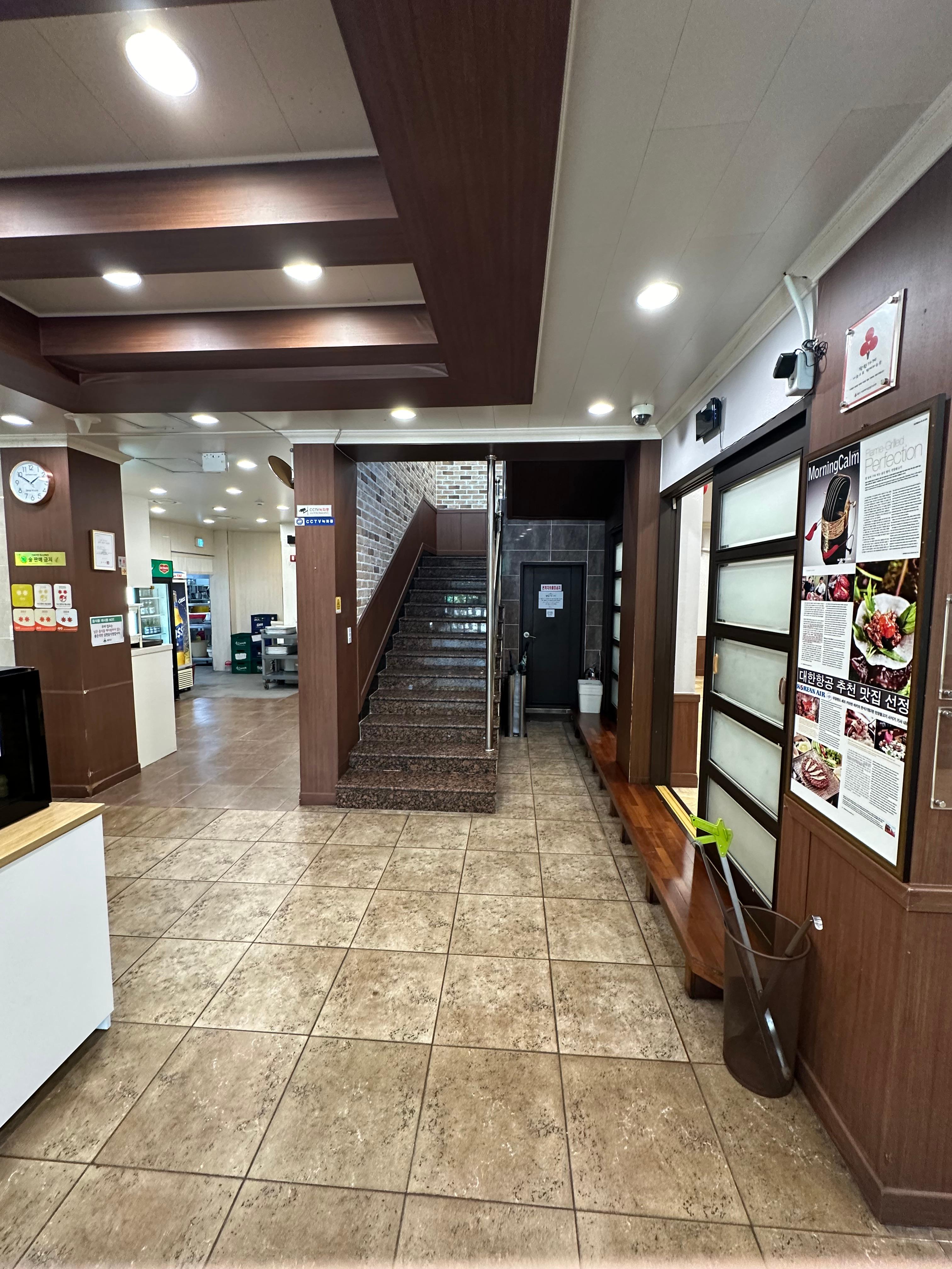 들어가는 입구에는 울주 맛집이라는 표시가 보이고 있습니다. 건물의 외관은 2층으로 60년 전통을 자랑하는 맛집만큼 건물도 전통기와집으로 크고 넓었습니다. 입구에 들어서면 2층으로 올라가는 계단과 우측에는 신발을 벗고 들어가는 온돌방과 좌우에 각각 넓은 공간의 식탁좌석과 화장실까지 보유하고 있는 큰 식당이었습니다.