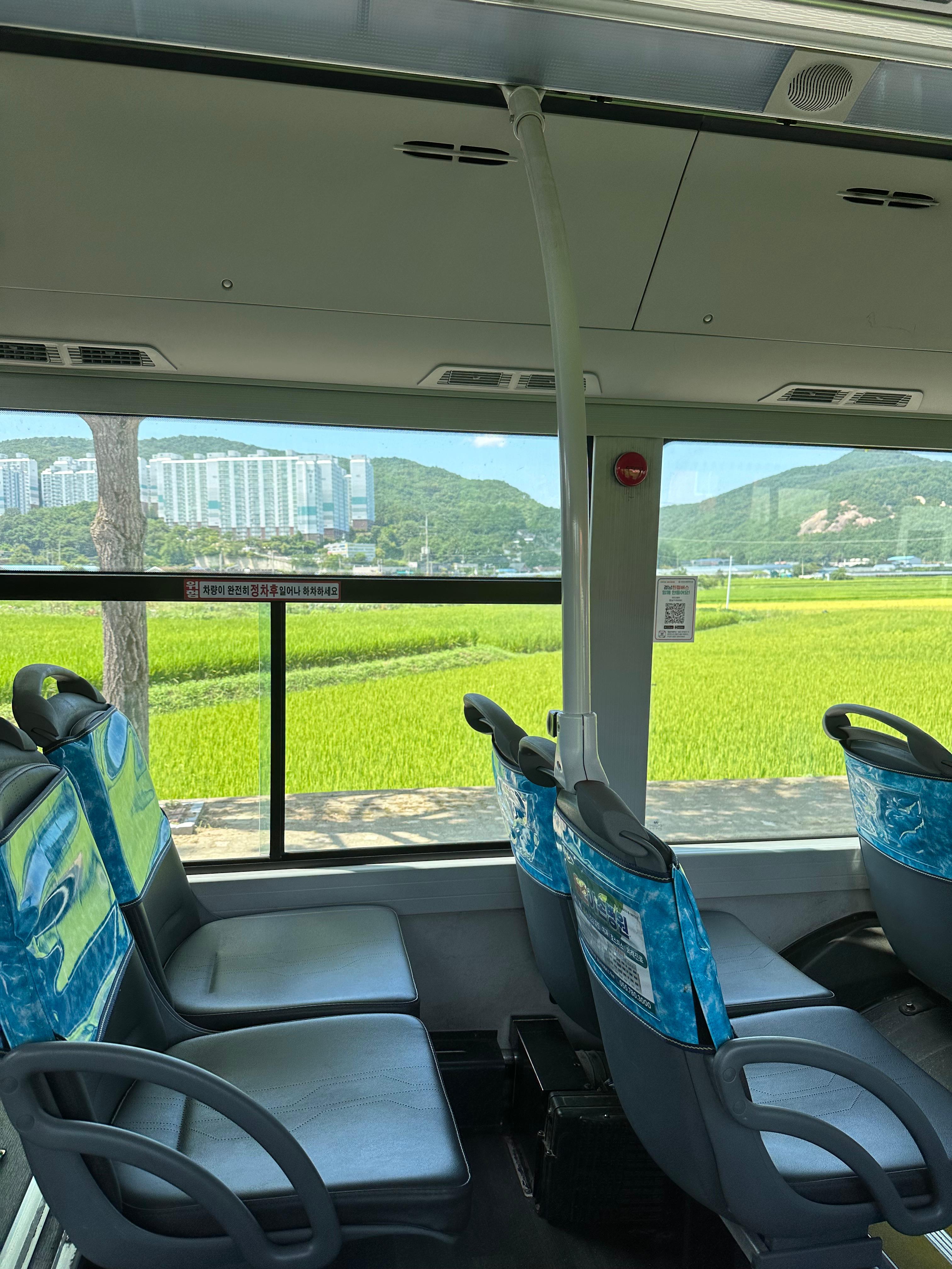 통도사 터미널이 종점이었던 13번 버스는 종점이라 그런지 승객이 얼마 안 탄 상태로 출발하였습니다. 금요일이기는 하지만 금요일 낮시간이라 울산방향으로 향하는 13번은 언양진미불고기까지 가는동안 많은 승객이 타지 않았습니다. 통도사를 출발한 13번 버스를 논밭이 보이는 도로를 달리기 시작했습니다. 울산은 국내에서 부산과 대전, 대구와 함께 광역시로 들어가는데요. 그러나 울산 시내를 제외하면 시골이라고도 볼 수 있습니다.
