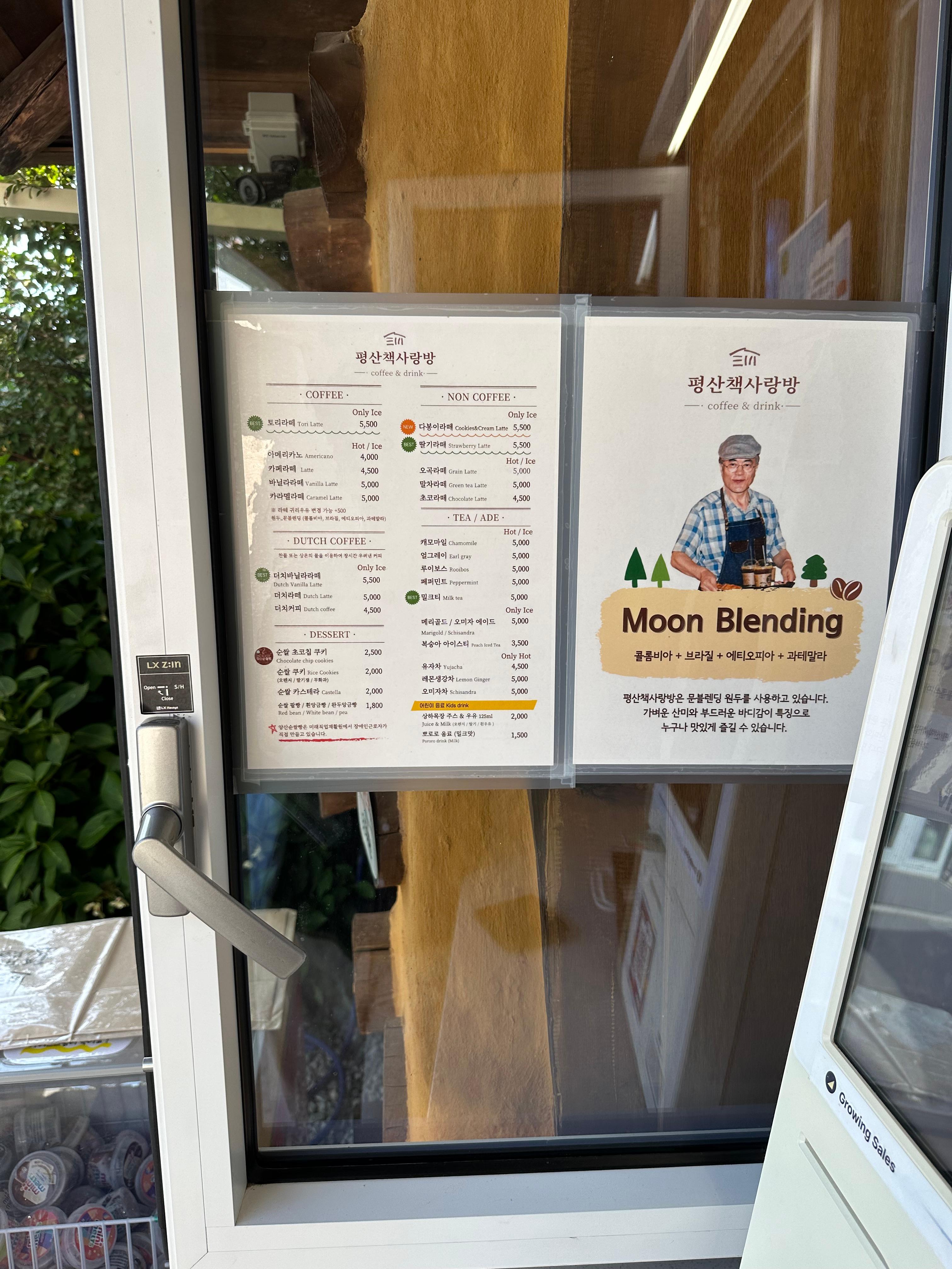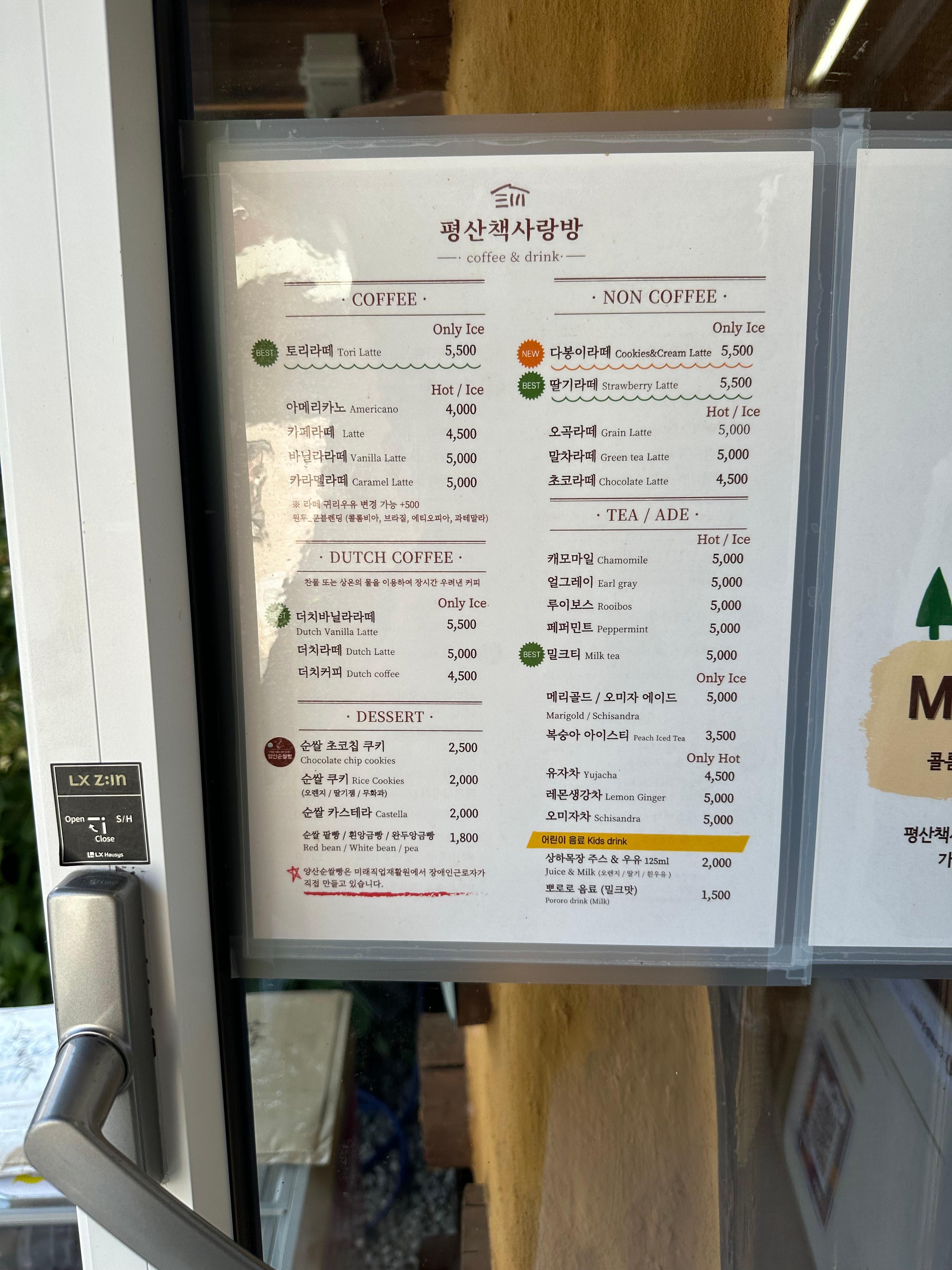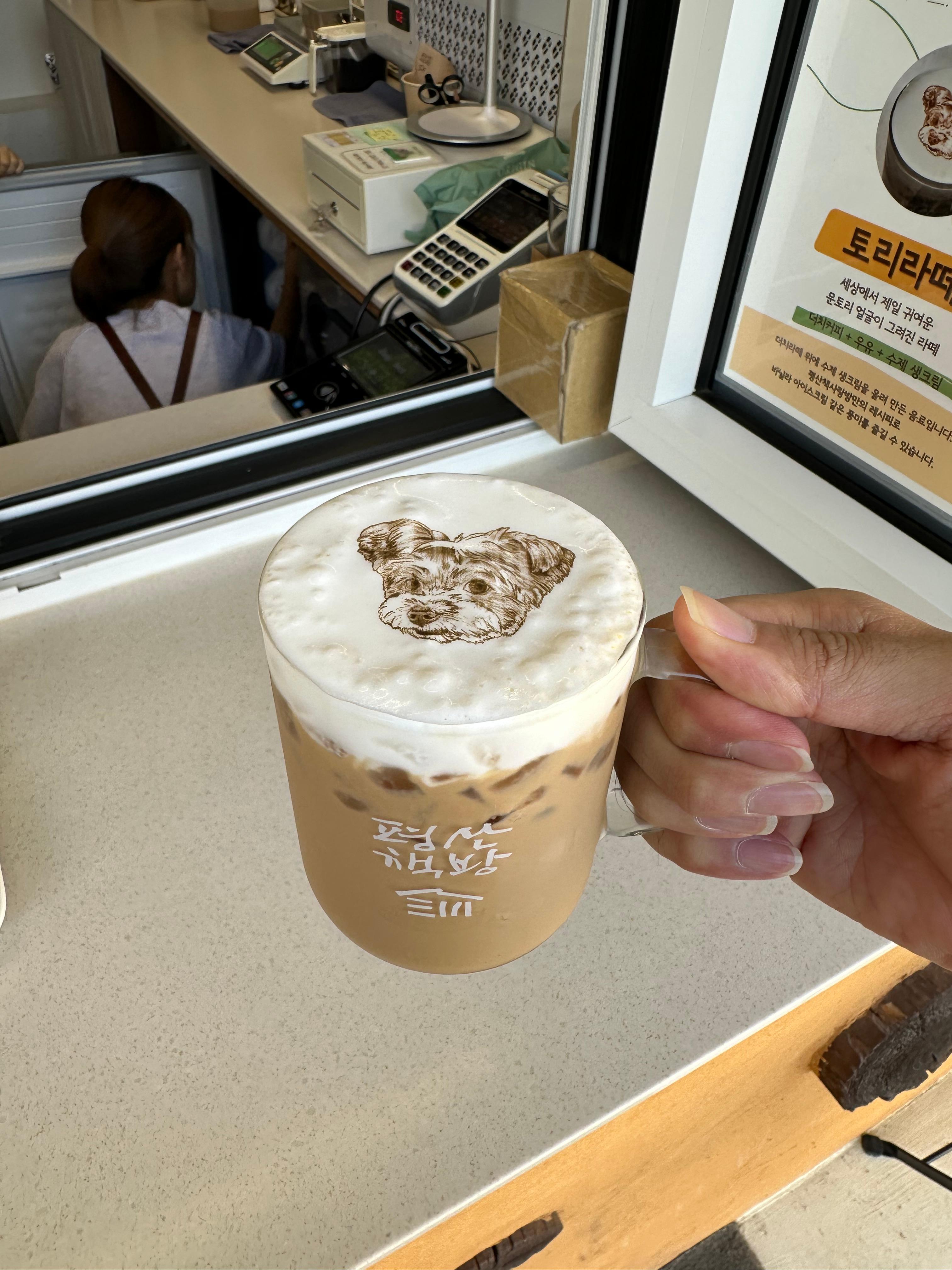 평산책방 바로 옆에는 아주 작은 카페가 있었습니다. 키오스크도 있어서 가볍게 키오스크로 주문을 하면 직원분이 준비해서 안내해주고 있습니다. 수도권에서 가깝지 않다보니 언제 다시 올지는 모르는 거구요. 평상시에 먹는 음료보다는 기억에 남는 것을 먹는게 더 좋다고 생각했습니다. 그래서 저는 토리라떼와 다봉이라떼 중 고민을 했는데요. 저는 토리라떼를 주문 했습니다.