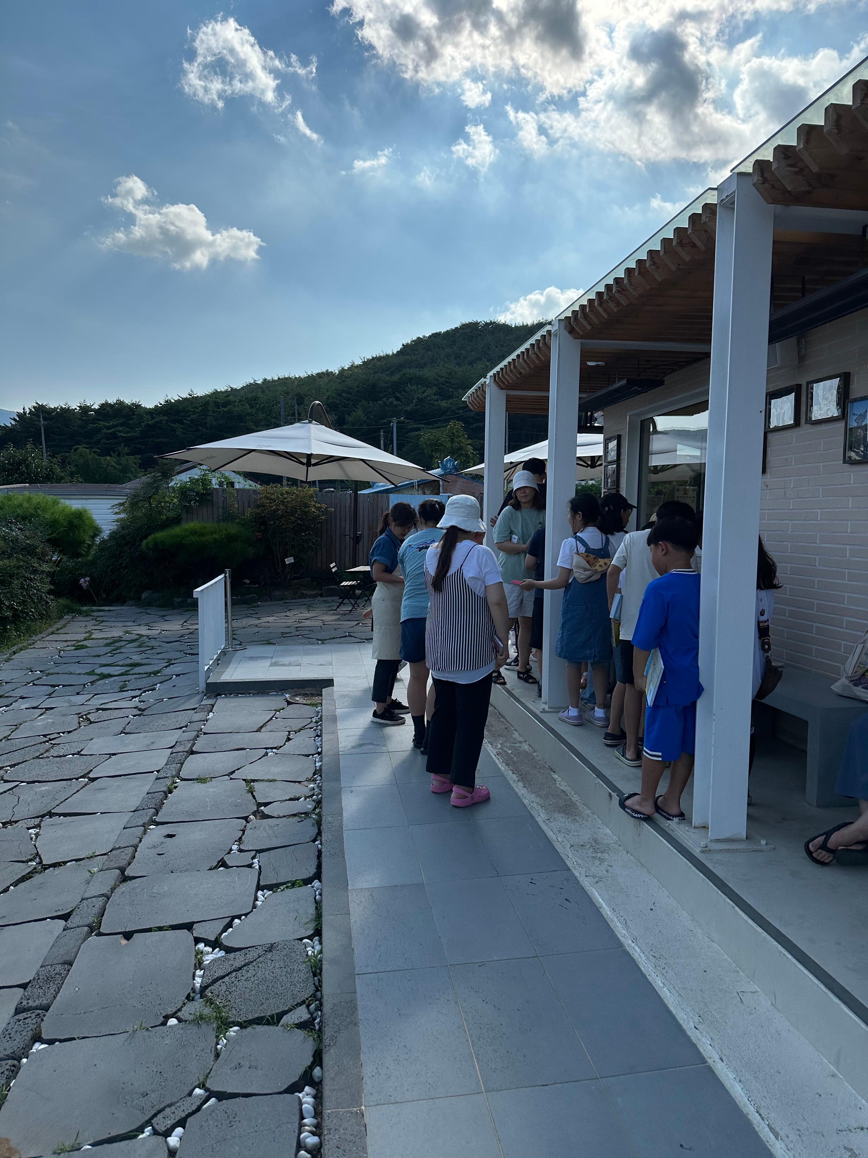 평산책방 내부부터 출입문과 건물입구 주변으로 줄서는 모습을 볼 수 있었습니다. 음료를 막 주문해서 안으로는 들어갈 수 없었습니다. 우선 음료를 다 마셔야 할 것 같아서 여유롭게 평산책방 마당앞에 앉아서 쉬고 있었습니다.