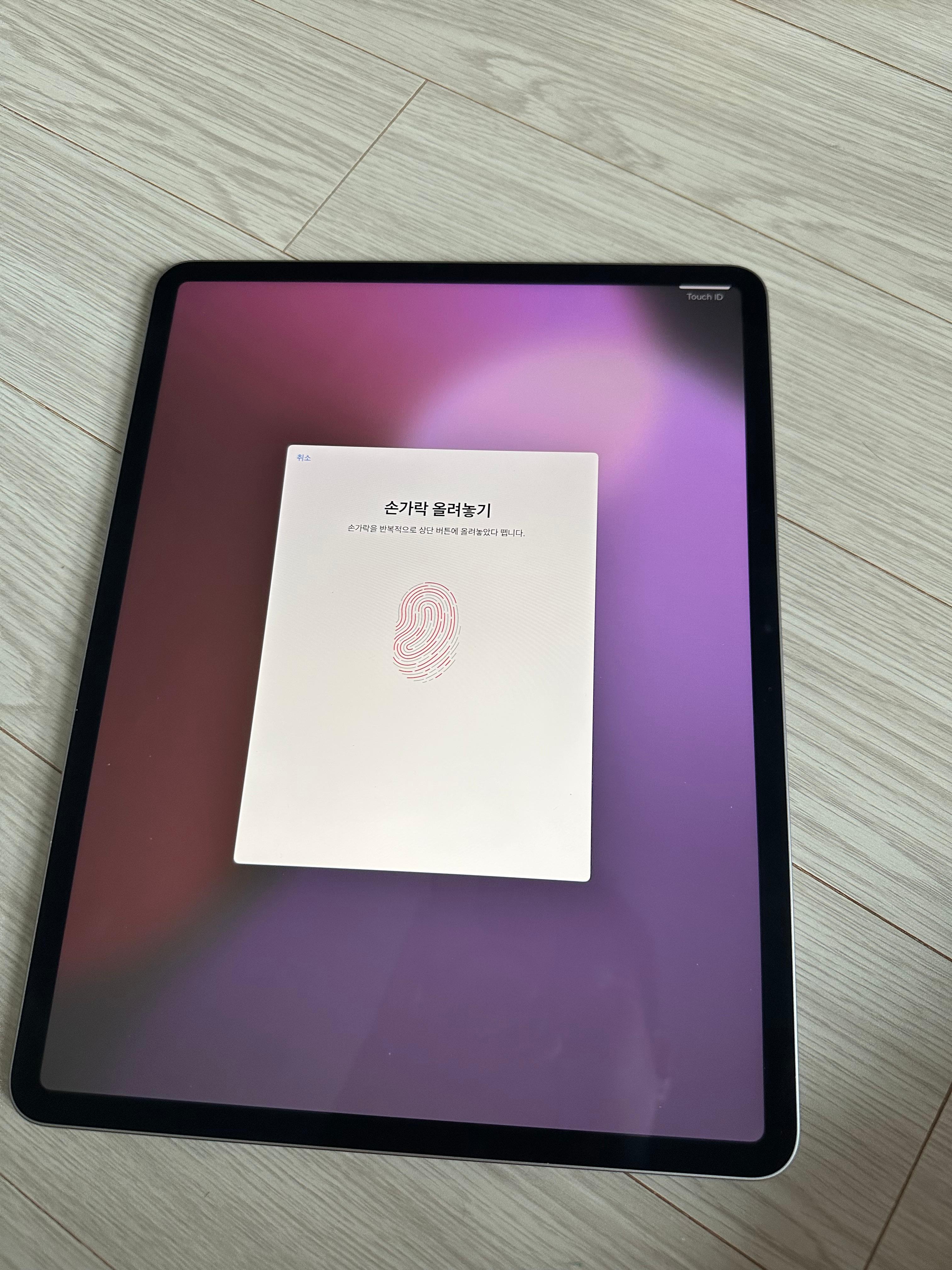 아이패드 에어13을 초기에 설정하는 과정은 계속 버튼만 눌러가며 쉽게 설정 할 수 있습니다. 지문인식만 다소 귀찮게 재요구 하는 부분이 있지마나 누구나 쉽게 할 수 있었습니다. 그렇게 설정하는 과정은 5분정도 지나니까 무사히 아이패드가 설정되는 것을 볼 수 있었습니다.