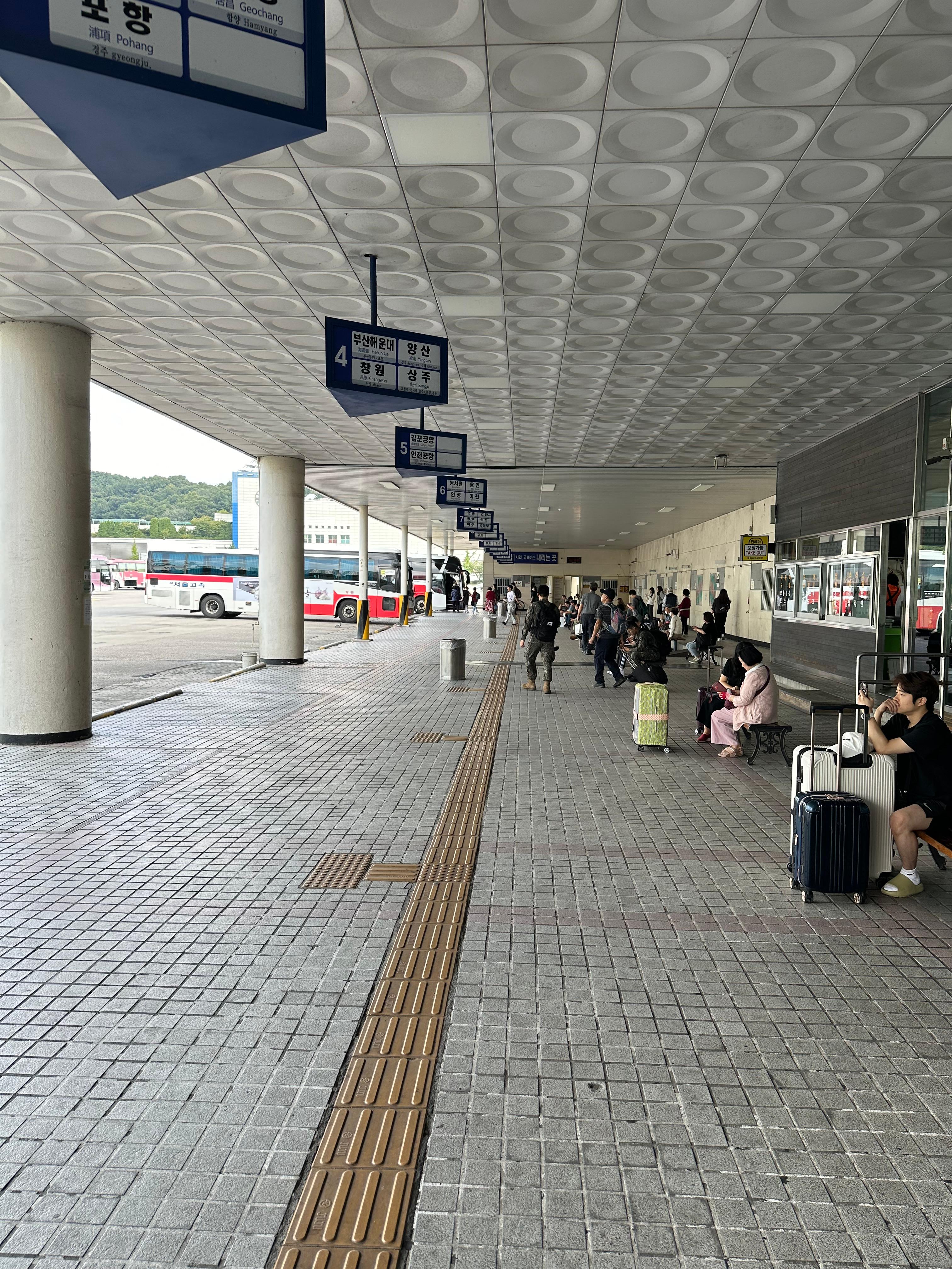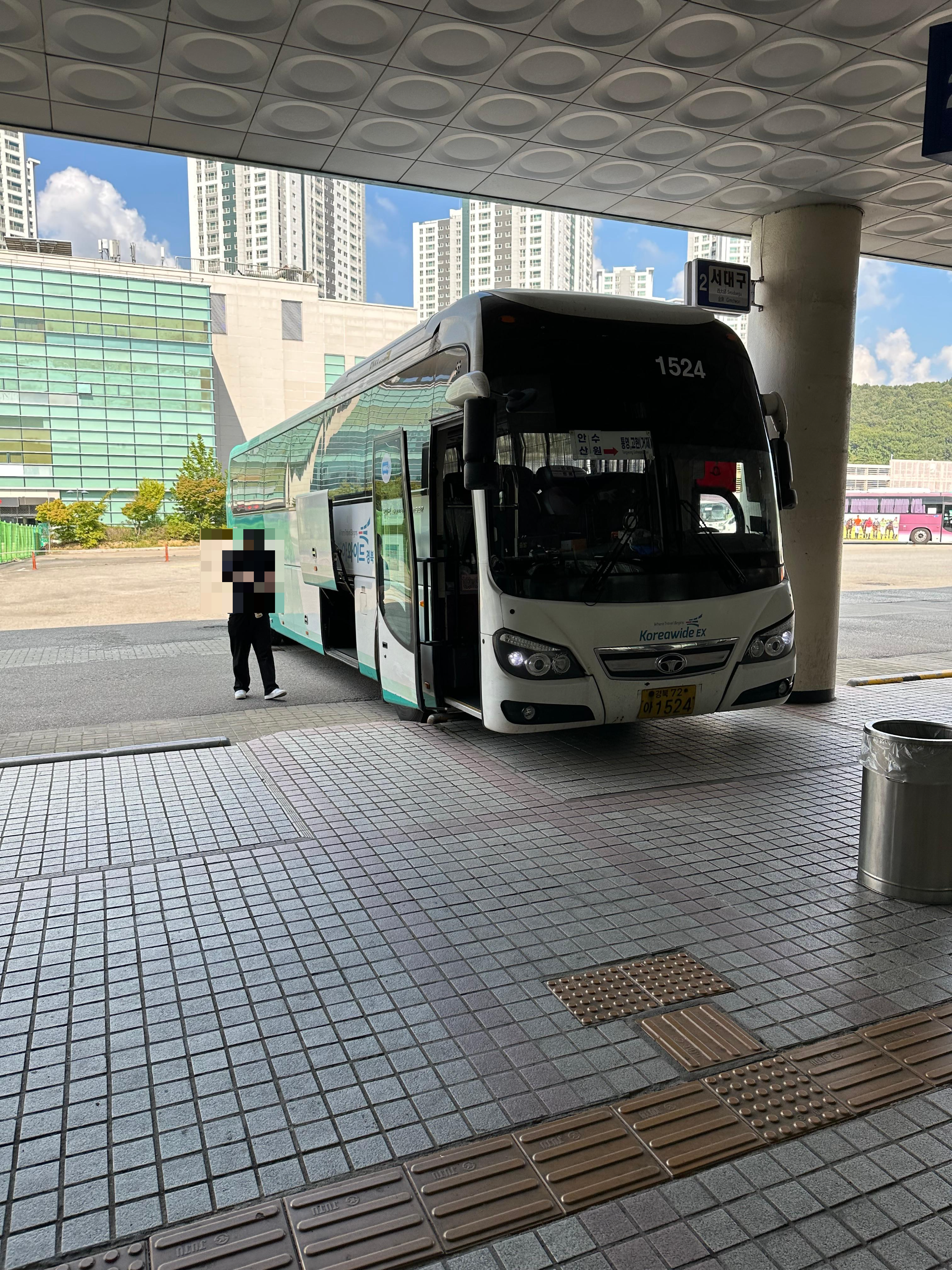 13시 40분에 통영으로 가는 버스가 10분전에 승강장으로 들어왔습니다. 바로 옆에는 서대구로 가는 승강장도 보였습니다. 안산에서 통영으로 가는 버스는 수원을 지나서 가는 버스입니다. 과거에는 통영까지만 가고, 일부 시간대에 대해서만 거제 고현까지 갔던걸로 기억합니다. 그러나 지난 9월에 탑승하면서 보니까 모든 시간대가 거제 고현터미널까지 가는 것을 볼 수 있었습니다. 안산 통영가는 버스는 경북고속에서 운행하고 있었습니다. 그리고 일반 버스가 아닌 우등버스로 장거리 이동하는데 편했습니다.