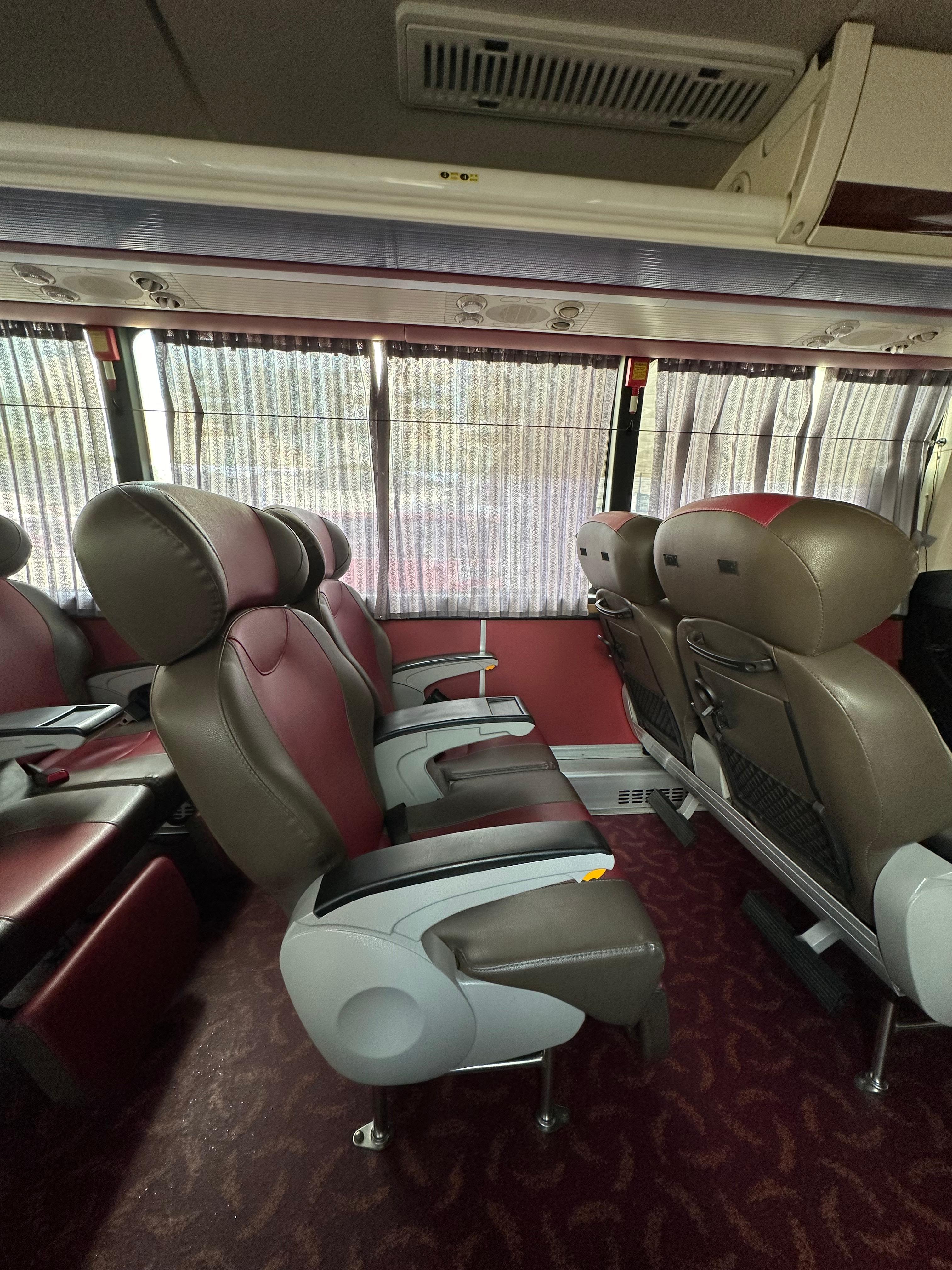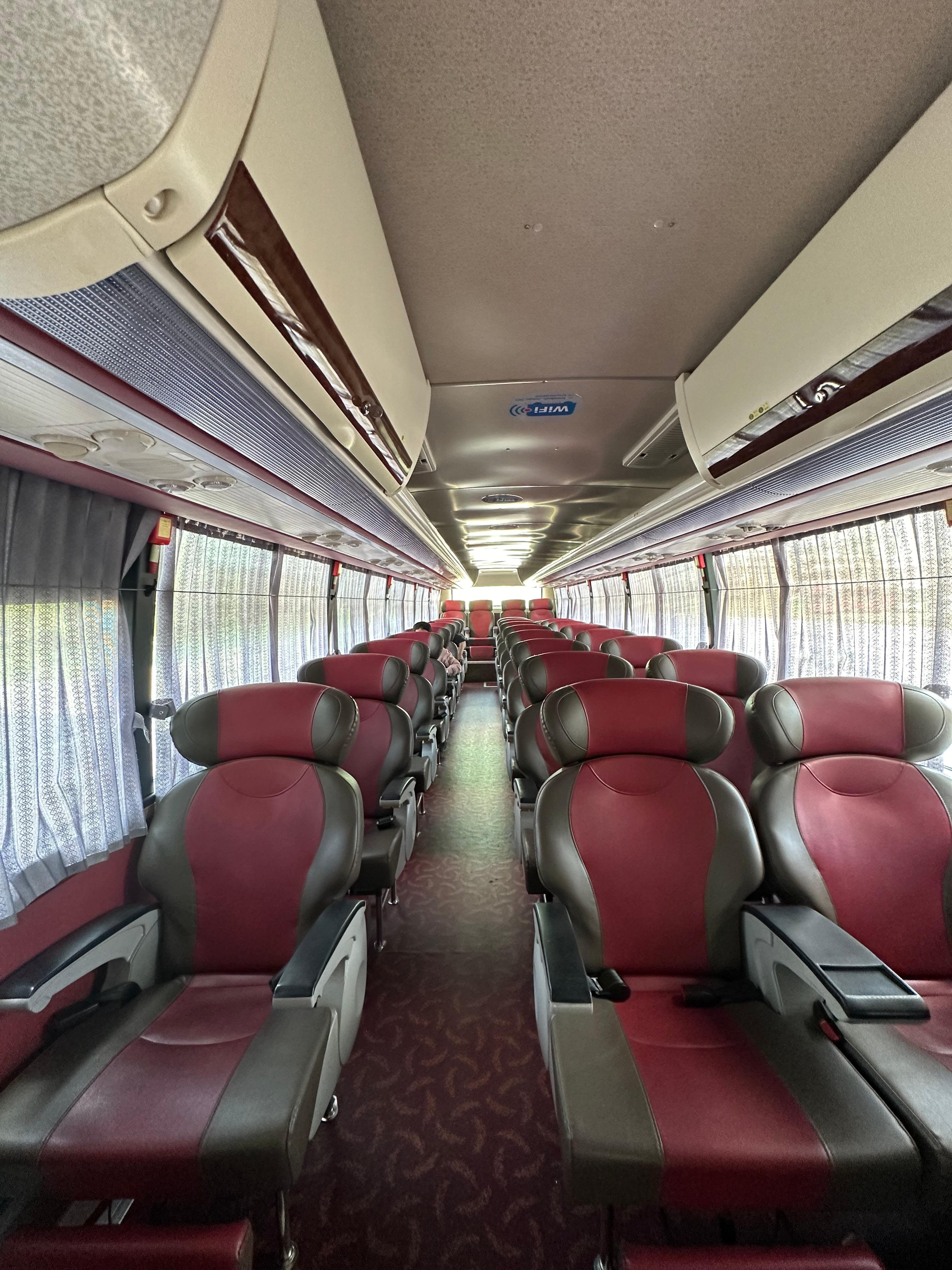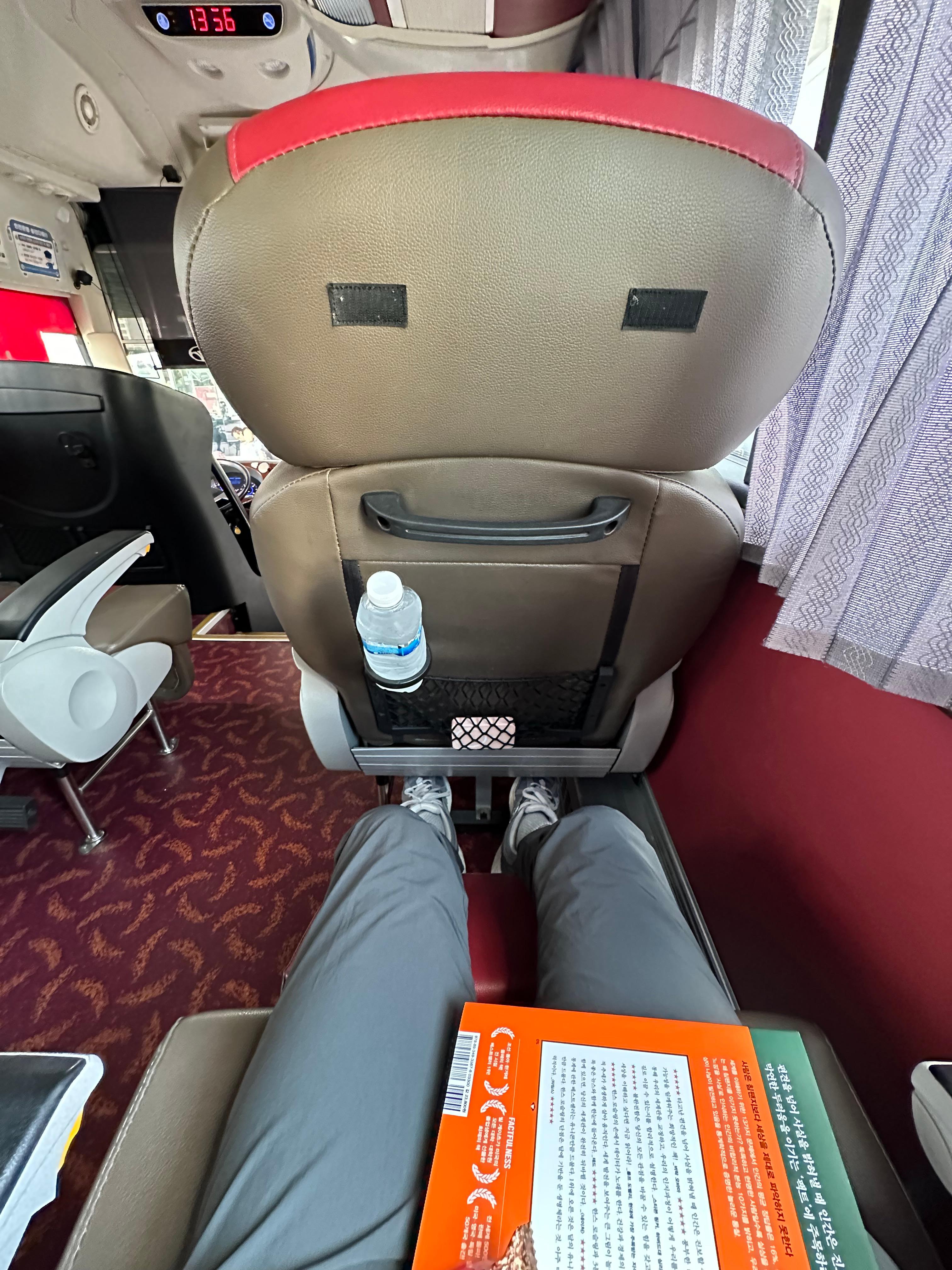 우등버스도 프리미엄 버스처럼 한줄에 2+1 방식으로 2인좌석과 1인 좌석으로 나누어져있었습니다. 일단 좌석 시트가 더 넓고 다리를 펼 수 있는 구조라 2+1 방식으로 설계 되어 운영되는 것 같습니다. 사진처럼 충분히 다리를 편하게 펼칠 수 있었습니다. 그리고 장거리 가더라도 다리가 많이 아프지 않은 것을 볼 수 있었습니다.