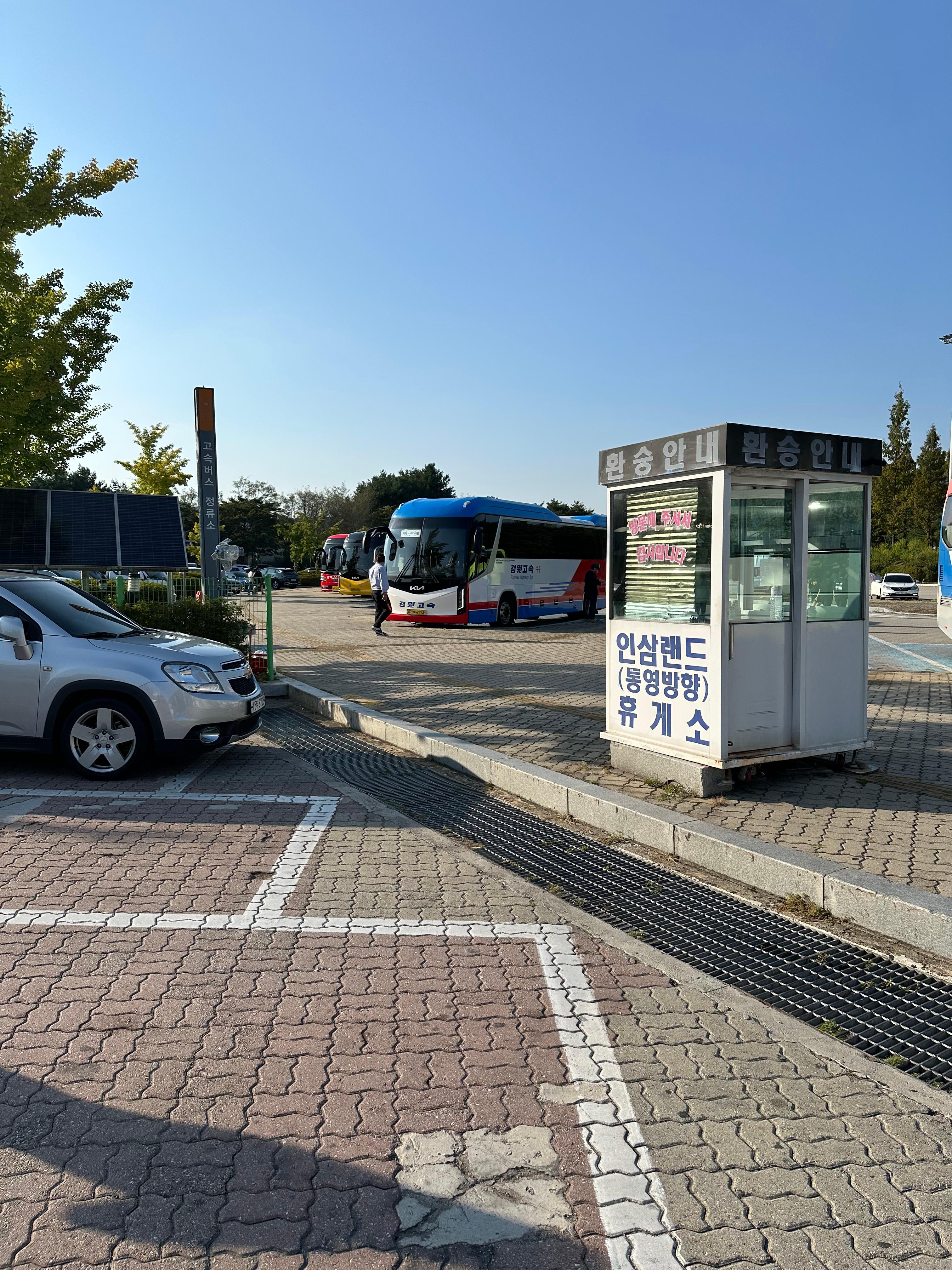 13시 40분에 안산 시외버스터미널을 출발한 통영 거제 고현 노선 버스는 1시간 조금 못 되어 14시 15분에 수원터미널에 도착 하였습니다. 그리고 수원터미널에서 10분정도 정차 후 출발하게 되었는데요. 수원터미널을 출발하고 약 2시간 30분 정도 넘어서 통영대전고속도로에 위치한 금산인산랜드 휴게소에 도착했습니다. 이곳 통영 금산인삼랜드 휴게소는 제가 지난 2024년 7월 프리미엄 버스타고 전주여행을 가기 위한 정안휴게소 환승정류장과 같은 역할을 하는 곳이였습니다. 내일로 이후에는 기차여행이 아닌 버스나 비행기와 버스를 타고 통영에 가곤 했는데요. 그 때마다 들렸던 휴게소가 이곳 금산 인삼랜드 휴게소입니다.