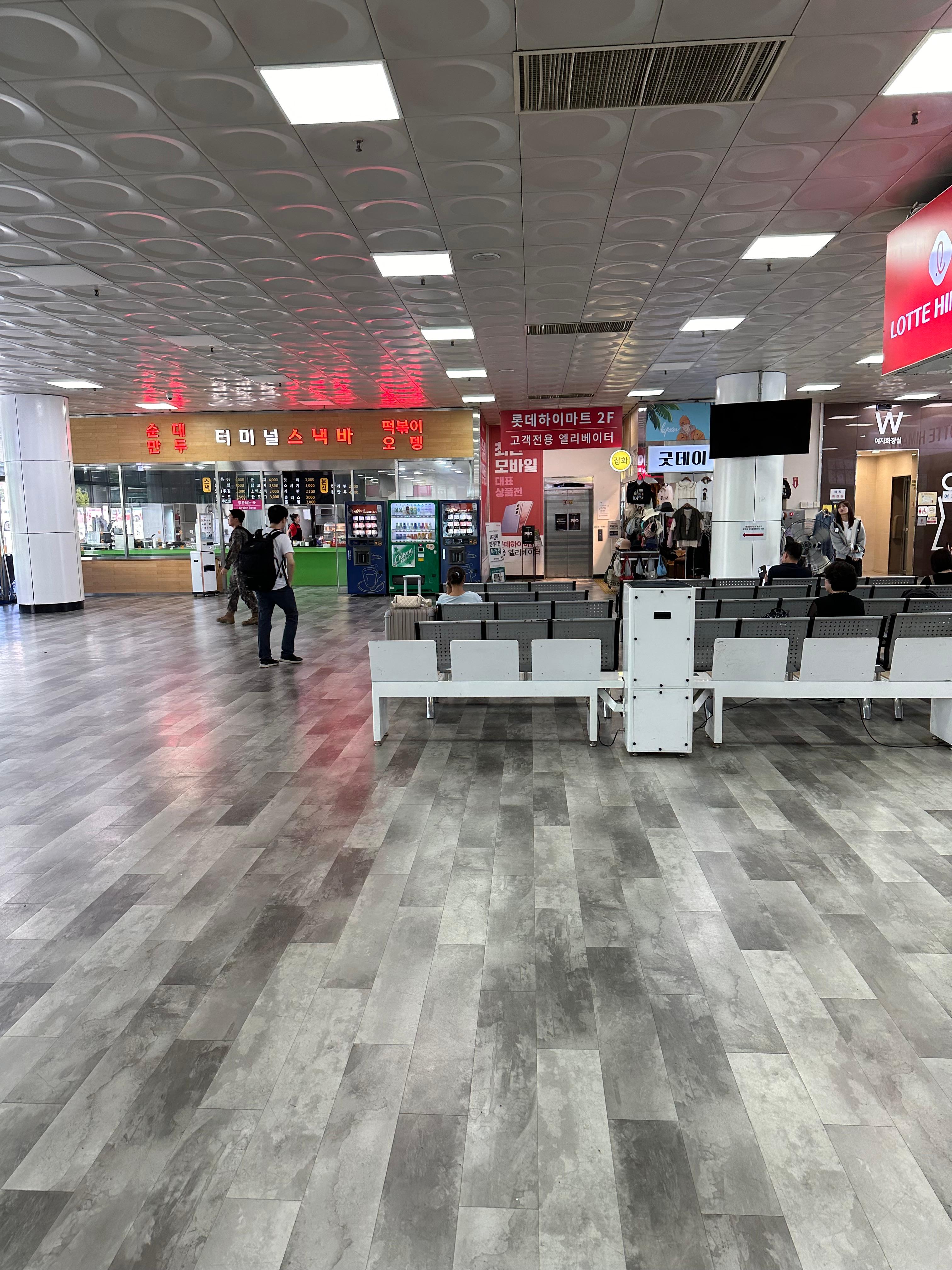 안산은 그정도로 많은 고속버스를 보유할정도는 아니라 하나의 건물에서 운영되는 것 같습니다. 포항, 울산, 부산, 전주같은 경우 혁신도시라는 이미지와 각 도에서 중심이 되는 지역으로 서울에서 많은 노선이 오다보니 지방도시임에도 불구하고 고속버스터미널과 시외버스터미널로 분리 운영되는 것 같습니다. 안산시외버스터미널은 1층은 대합실과 편의점, 매점, 분식점, 카페가 있습니다. 2층은 롯데 하이마트가 있습니다.