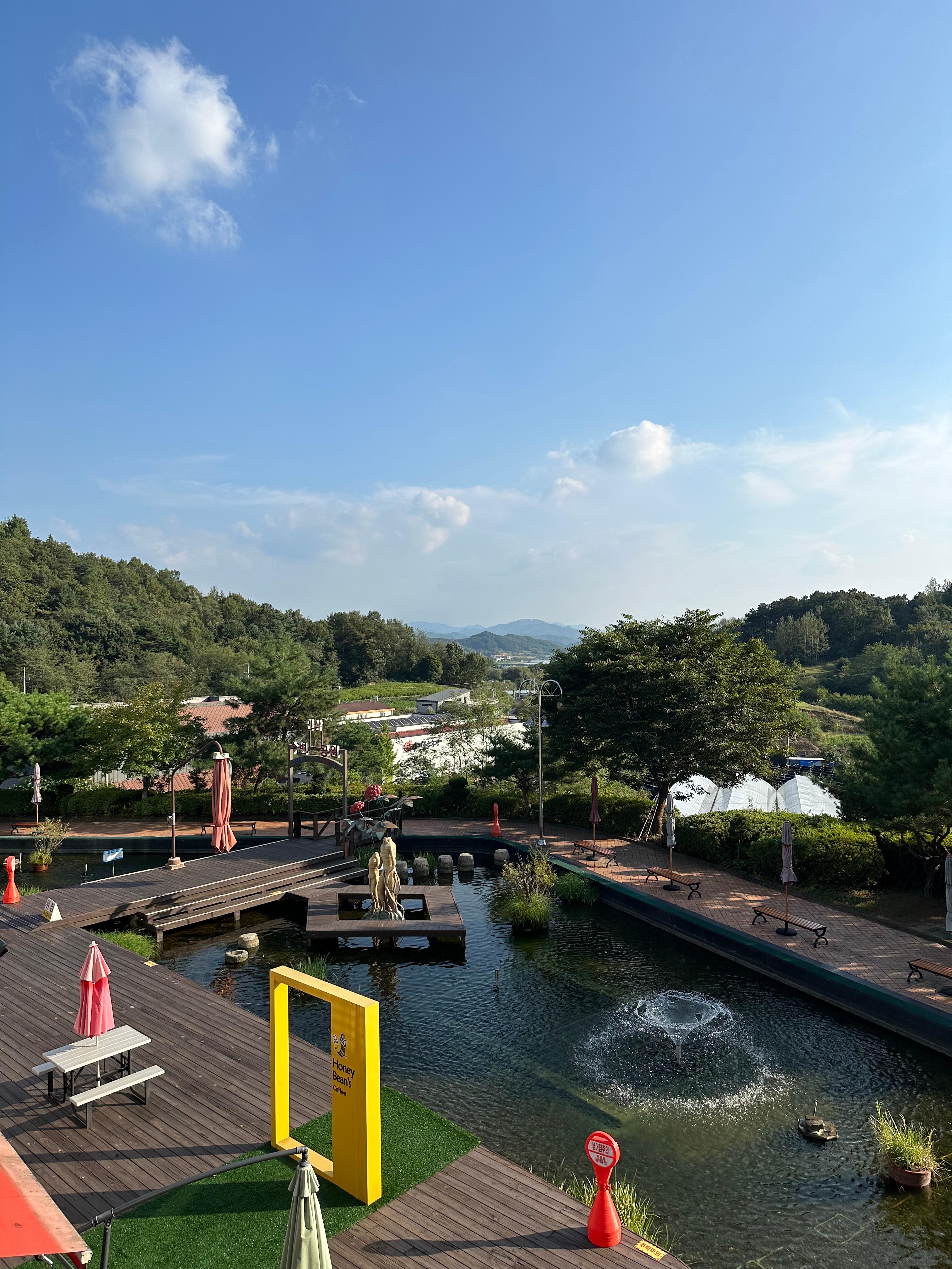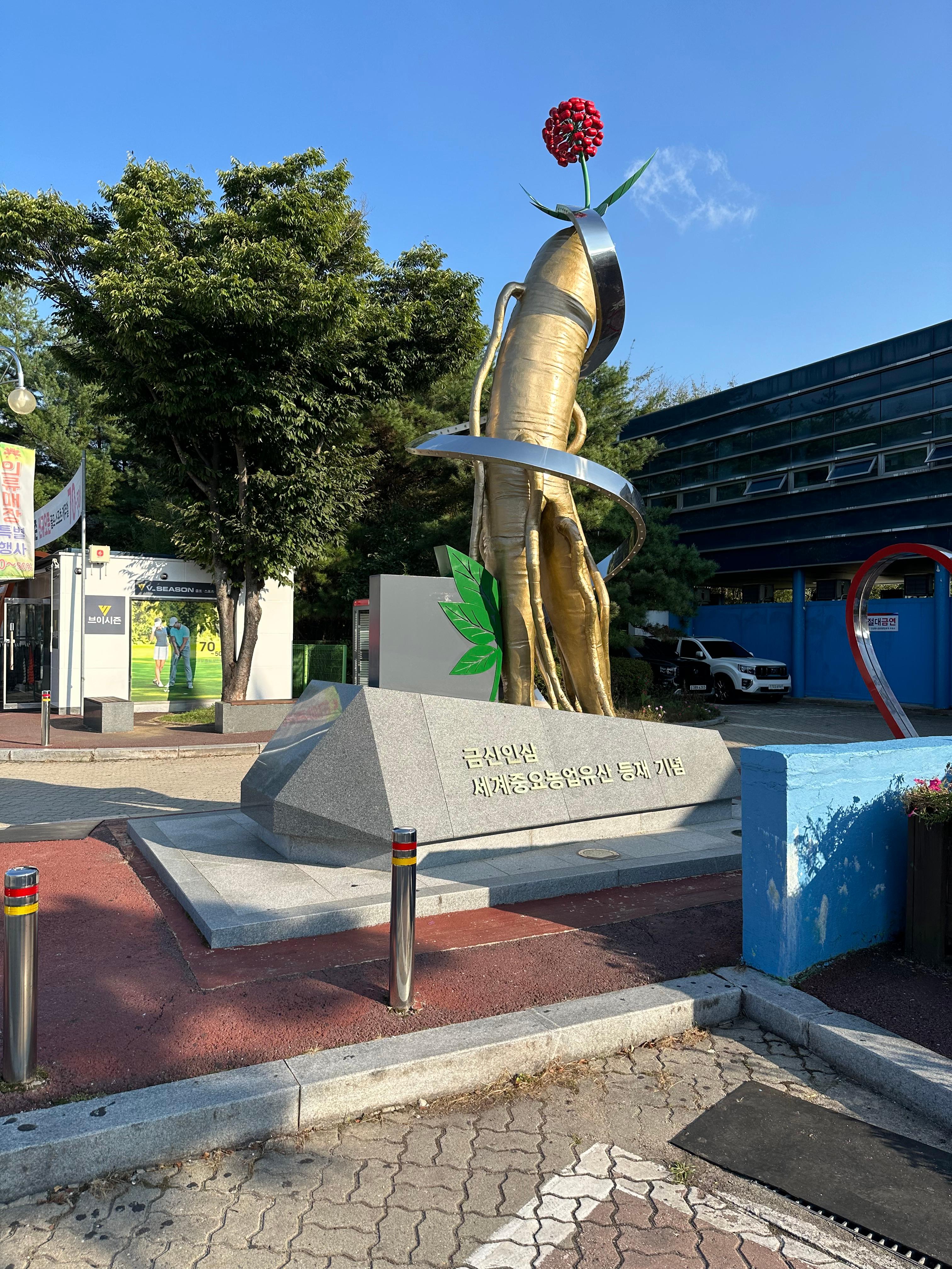 그때 금산 인삼랜드 휴게소에서 정차했는데 금산 인삼랜드 휴게소 뒤편으로는 이렇게 아름다운 조형물이 있고 멀리는 자연이 그대로 보이는 모습을 볼 수 있습니다. 통영에서 돌아올 때도 금산 인삼랜드 반대편 휴게소를 통해서 올 수 있지만 하행선 휴게소에 비하면 이런 자연은 볼 수 없었던 것 같습니다. 하지만 인삼을 대표로 하는 금산 인삼랜드 휴게소라서 그런지 상행선 금산 인삼랜드 휴게소 화장실에는 인삼과 관련된 것을 화장실안에 예술작품처럼 꾸며놓은 것을 볼 수 있었습니다. 휴게소에서는 화장실만 급하게 다녀오고 휴게소 뭔가 사고는 싶었지만 이날은 딱히 구매하고 싶은것도 먹고싶은것도 없이 바로 버스에 올라탔습니다.