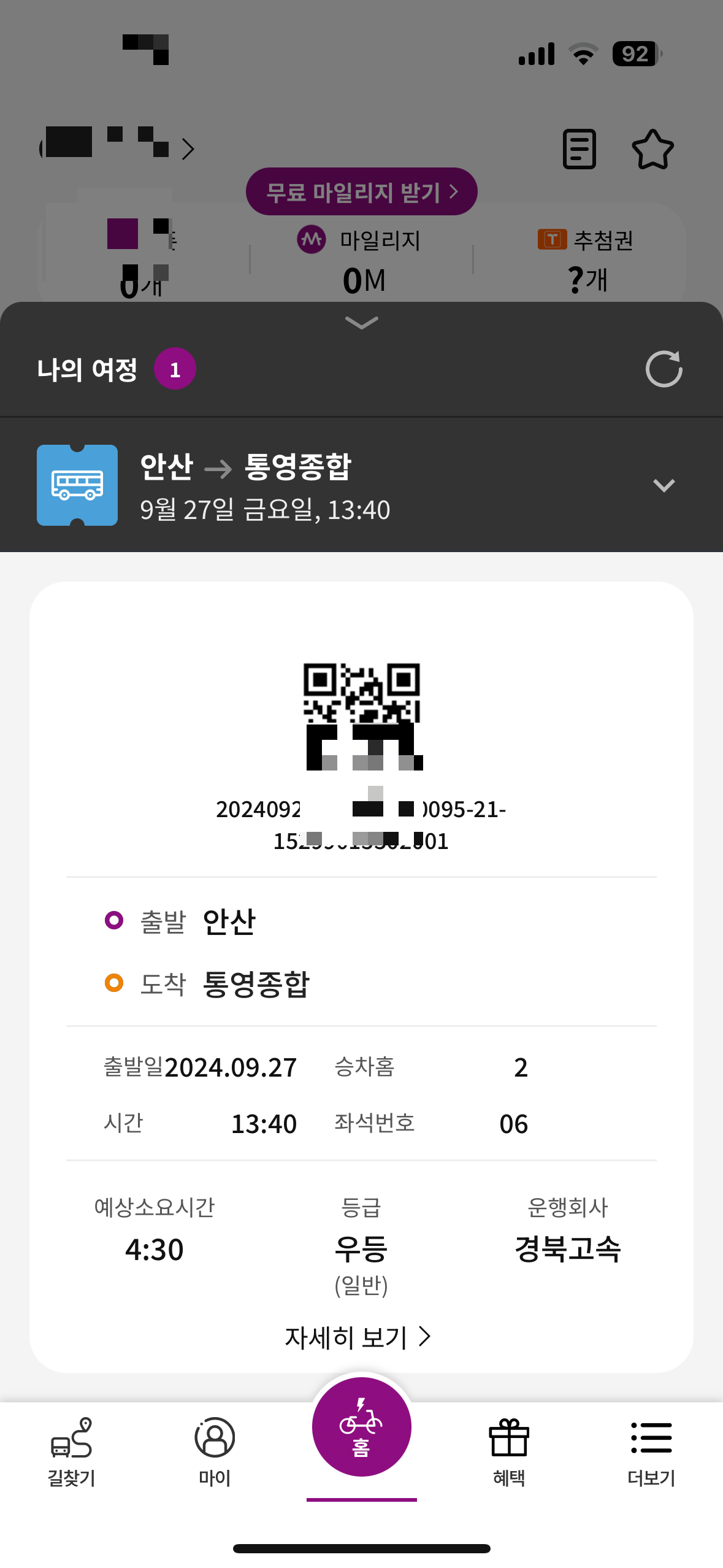 저는 티머니고 앱을 이용해서 안산에서 통영까지 표를 사전에 애매 하였습니다. 당시 추석이 지난 일주일 뒤인 9월 27일 금요일 이었습니다. 안산에서 통영까지는 약 4시간 30분 정도 소요되었습니다. 시외 고속버스의 경우 기차와 다르게 도로 사정에 따라 막힐 수 있어서 넉넉하게 5시간 정도 걸리는 것 같습니다. 이날도 차가 조금 막히는지 5시간 정도 걸려서 통영에 도착 했습니다. 안산에서 통영 가는 버스는 지방도시임에도 불구하고 하루에 6대 다니는 것을 볼 수 있습니다. 아침 첫차가 7시부터 있을정도로 자주 다니는 것을 볼 수 있습니다. 저는 13시 40분에 안산 시외버스터미널을 출발해서 통영으로 가는 표를 예매했습니다. 또 한가지 안산에서 통영 가는 버스는 안산에서 통영까지 바로 가지 않고 수원터미널을 지나 가는 것을 볼 수 있습니다. 만약 수원터미널을 들리지 않는다면 1시간이 덜 소요될 수 있을 것 같습니다.