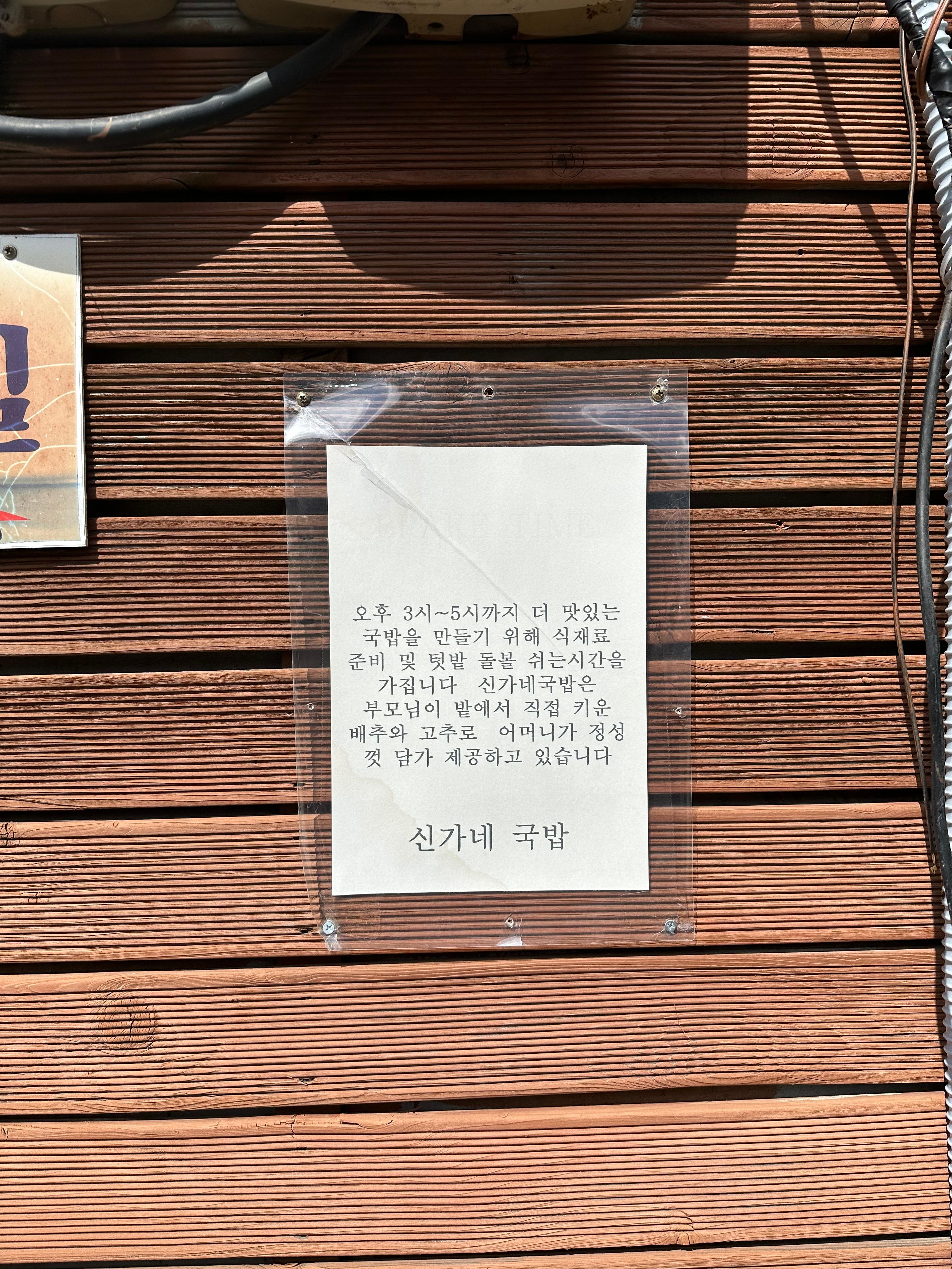 - 신가네 국밥은 작은 골목길안에 있는 식당이라서 주변 도로변이 작고 주차공간이 완전 넓지는 않아 다소 불편할 수 있습니다.