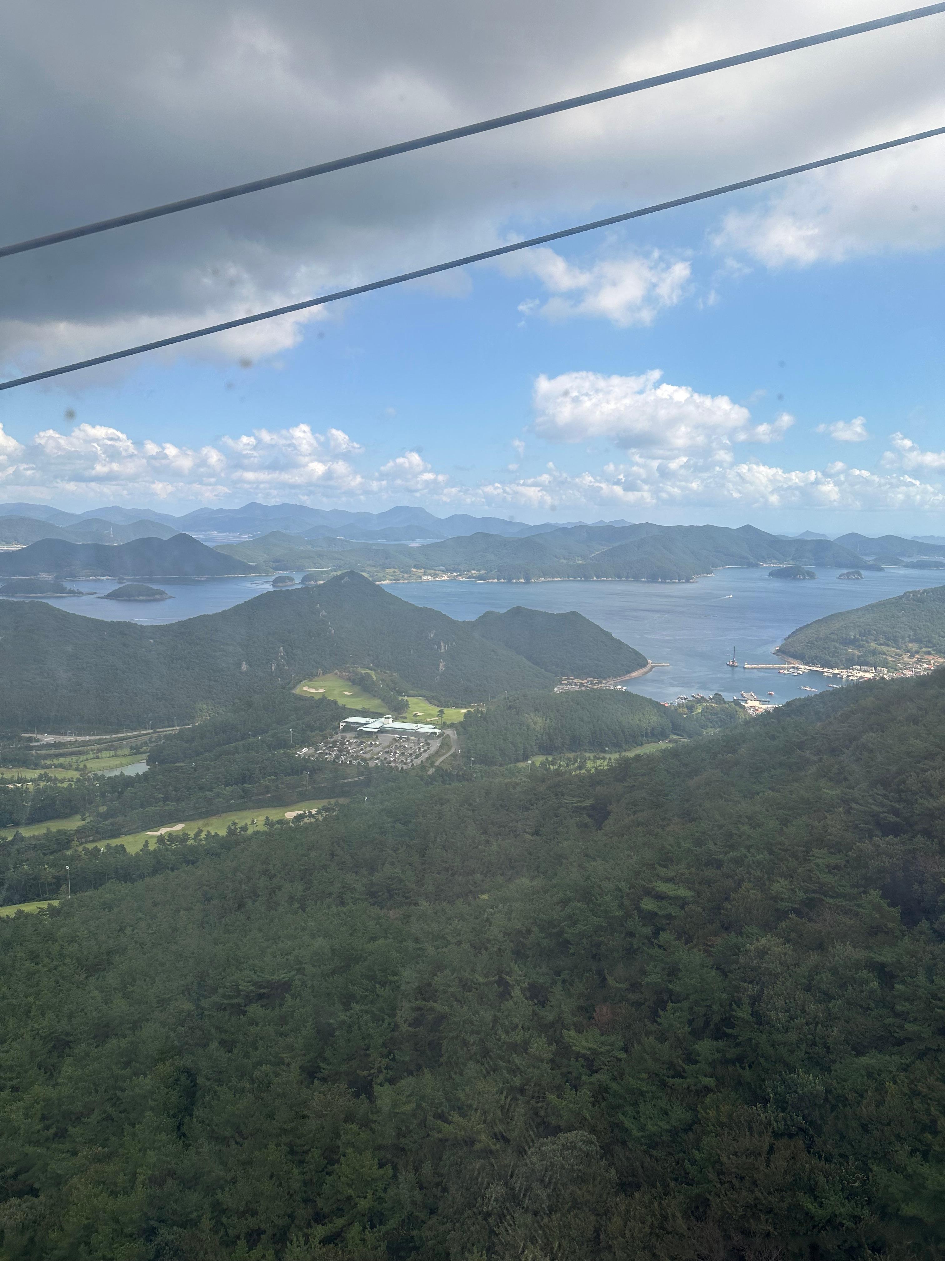 국내 모든 케이블카의 공통점은 평지에서 높은 산악지대까지 쉽게 편리하게 이동한다는 점입니다. 각 지역마다 특징이 있는데요. 대부분의 케이블카가 그렇듯 케이블카가 점점 높이 올라가면 도시와 자연의 뷰를 볼 수 있다는 점입니다. 통영은 섬지역으로써 바다와 자연이 함께 공존하는 도시입니다. 통영케이블카가 이렇게 높이 올라가면 통영 시내가 한눈에 보이는 것을 볼 수 있습니다. 날씨가 좋으면 멀리 거제까지도 보이는데요. 사실 이건 거짓말이기도 합니다.
