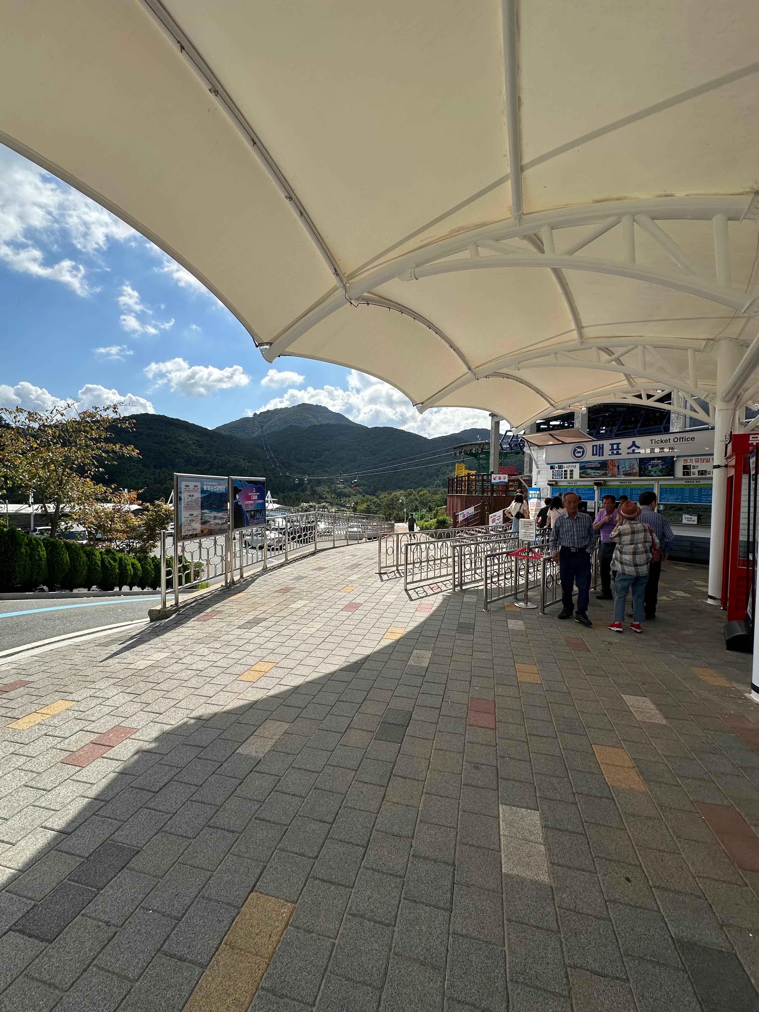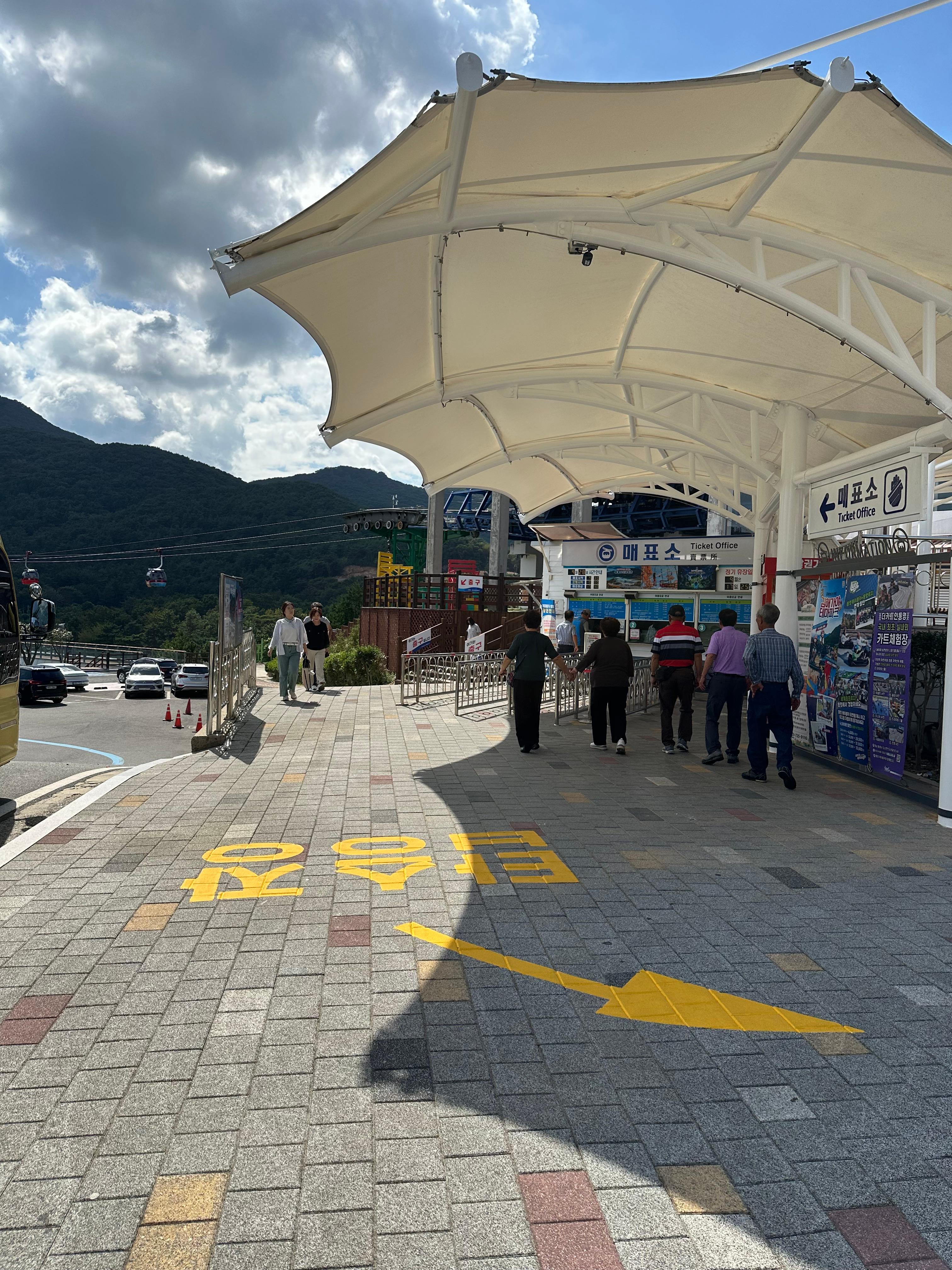 토요일 점심시간이 조금 지난 시간임에도 불구하고 통영케이블카 매표소 주위에는 조용했습니다. 2017년 5월에 황금연휴로 거의 일주일을 쉬던 연휴가 있었는데요. 그때는 주말도 아닌 황금연휴라 거의 3시간 이상을 케이블카 타기 위해 기다려야 했습니다. 그때도 루지가 있어서 루지와 케이블카 주위로 관광객이 정말 많았는데요. 아마도 추석 연휴에 갔다면 관광객들이 많았을 것 같습니다. 통영은 정말 자주와도 또 오고 싶을만큼 부산 다음으로 관광지로 끌리는 도시인데요. 아마도 대부분 사람들이 그러지 않을까 싶습니다. 이 날 토요일에는 긴 대기없이 바로 매표에 성공하고 탑승까지도 오래 걸리지 않았습니다.