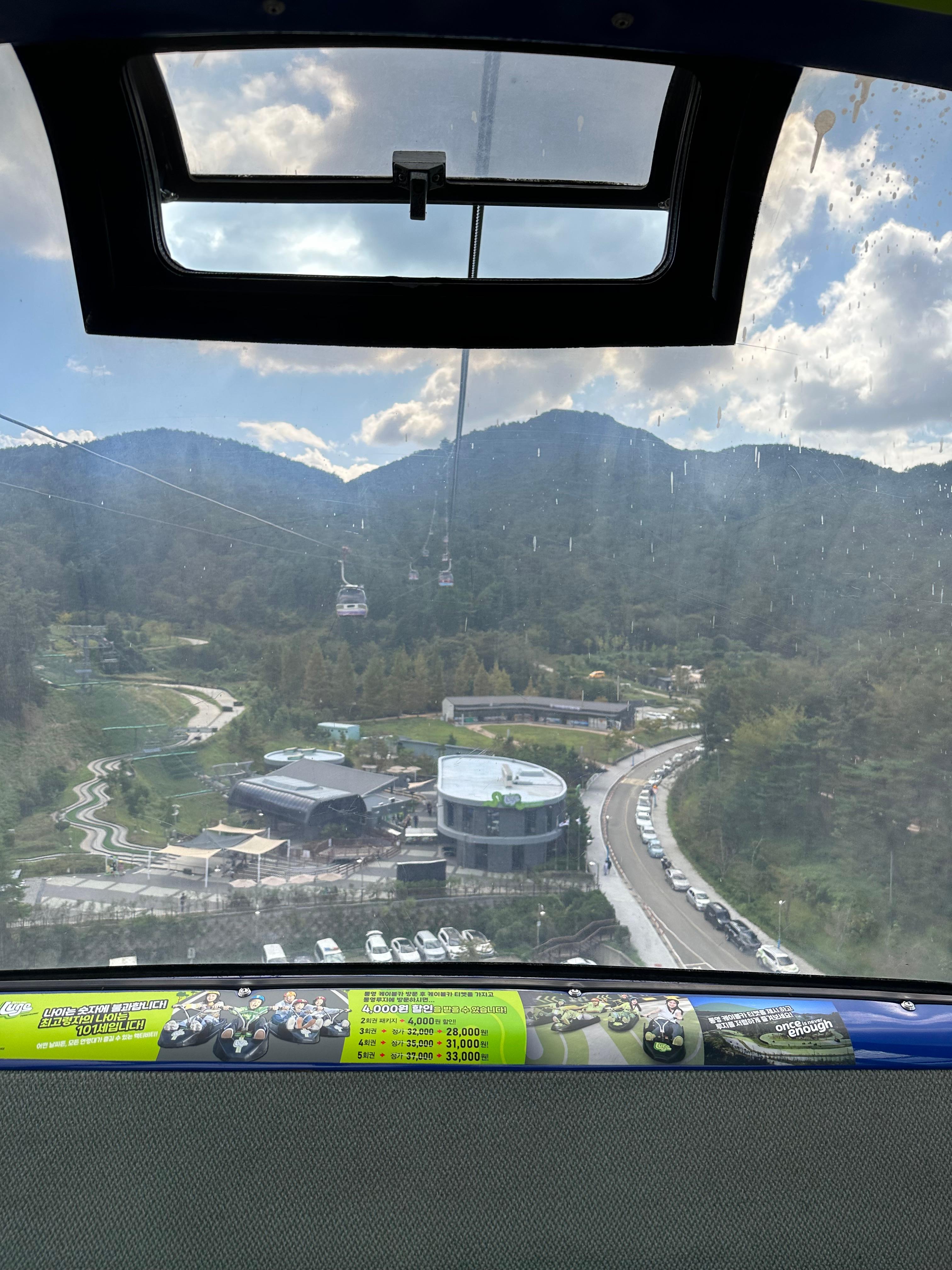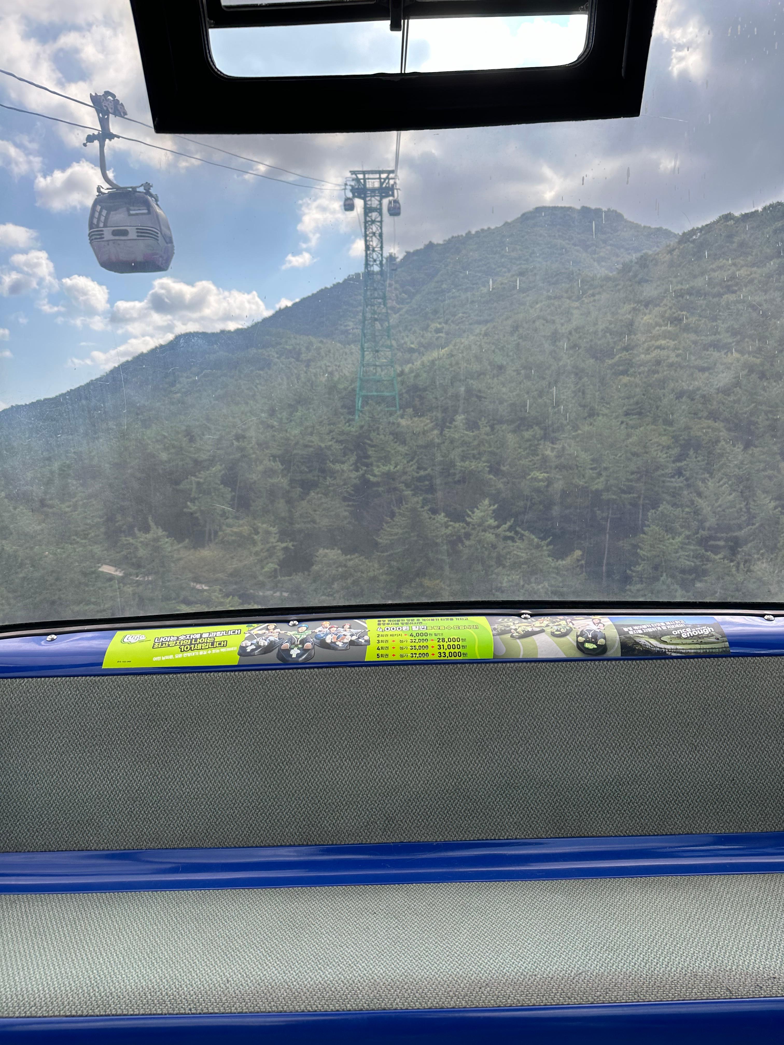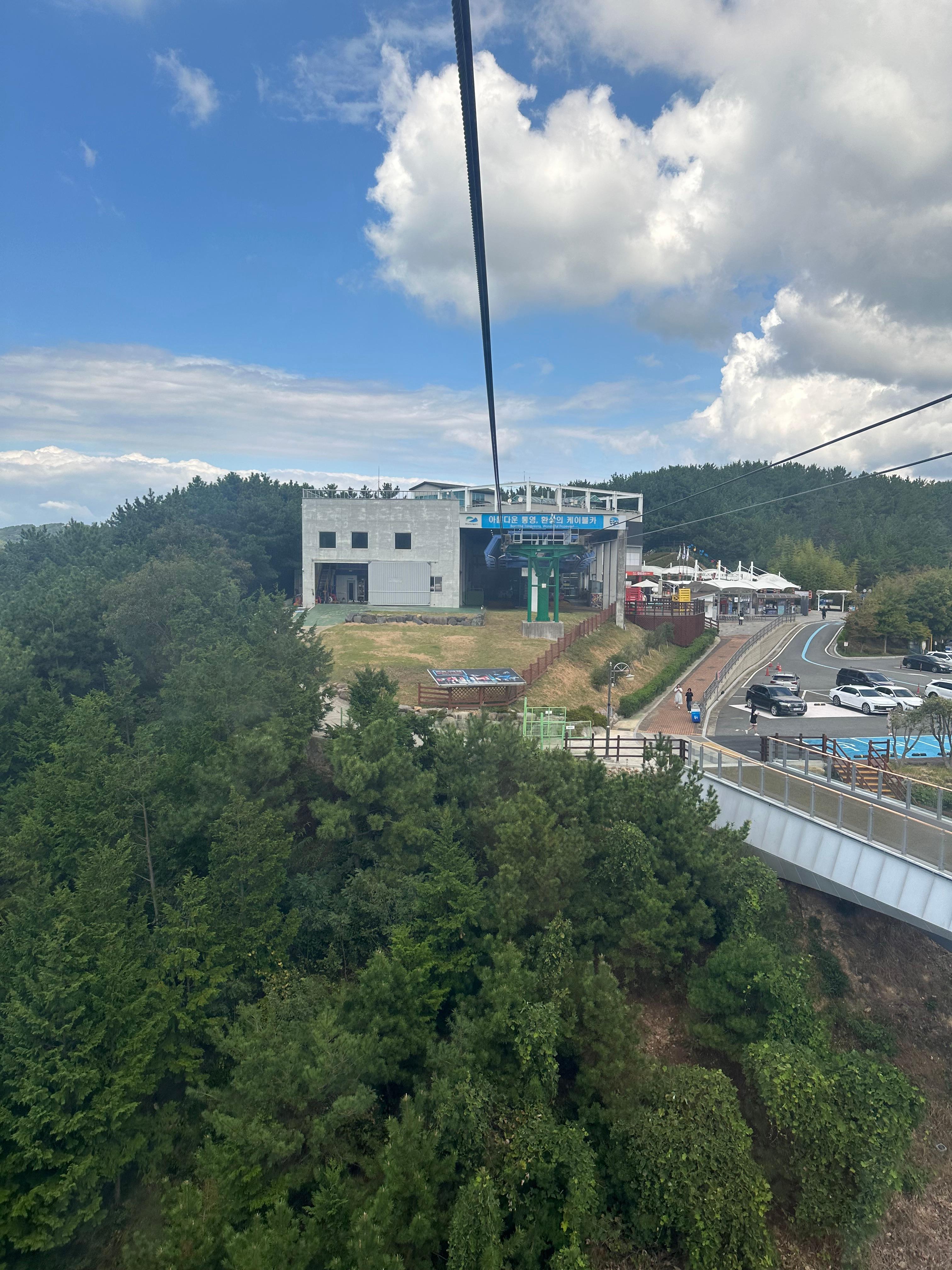 케이블카에 탑승을 시작했습니다. 통영 케이블카 하부정류장에서 출발하면 바로 정면 아래로는 루지와 어드벤쳐타워의 모습을 볼 수 있습니다. 그리고 정면 멀리로는 미륵산 정상의 모습을 볼 수 있습니다. 포스팅 하면서 더 소개해드리겠지만 미리 말씀드리면 통영케이블카를 타고 점점 높아지면 통영 시내가 한눈에 보이면서 통영대교를 기준으로 통영항과 통영시내 멀리로는 거제도까지 보일정도로 멋진 바다뷰를 기대할 수 있습니다.