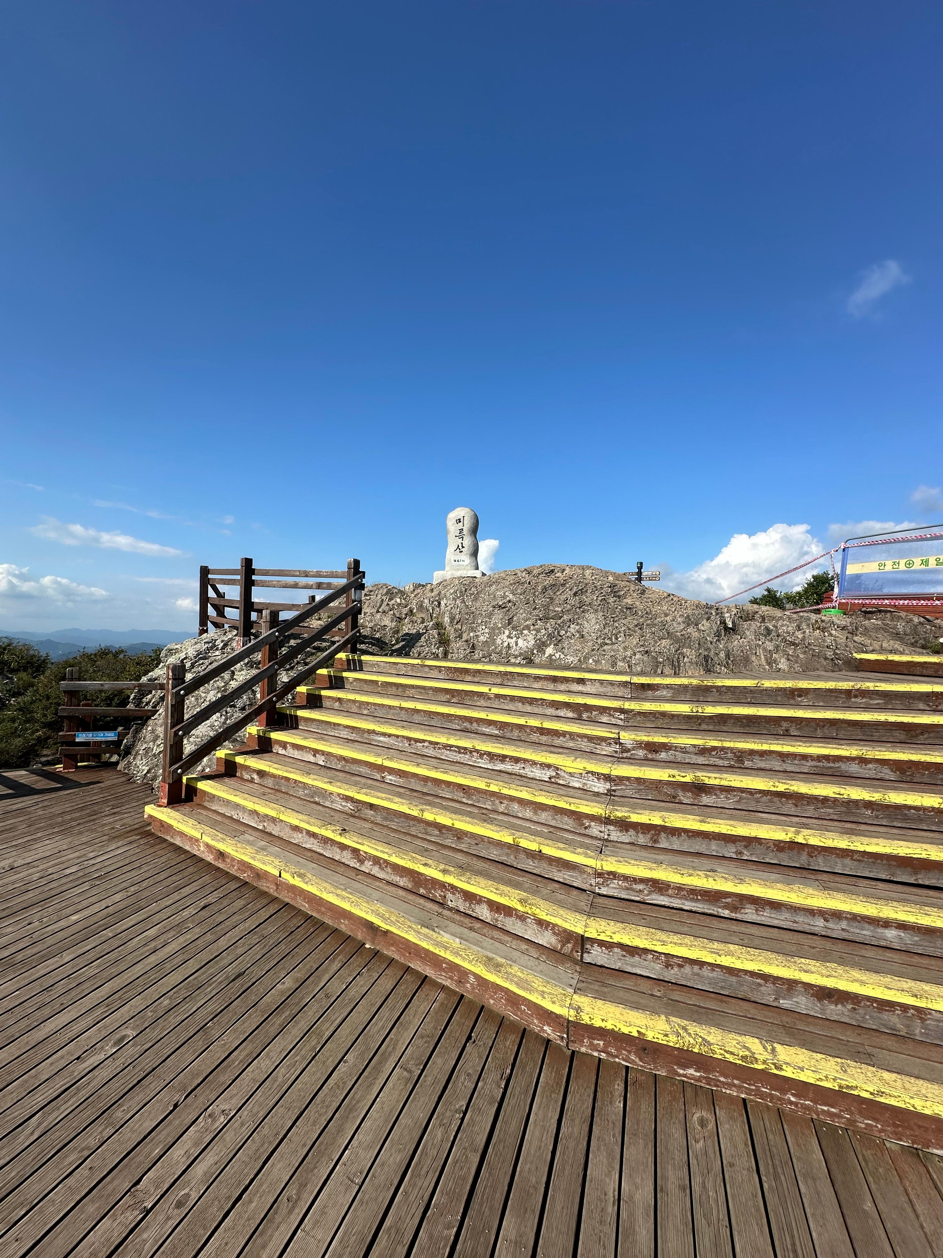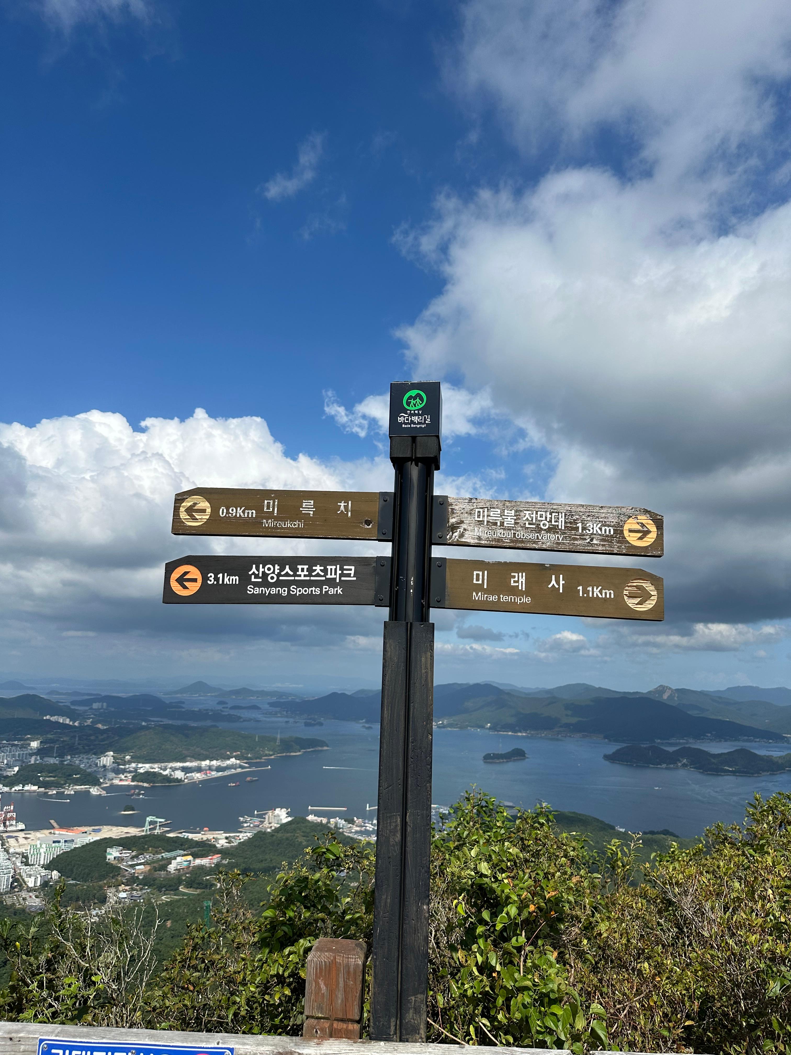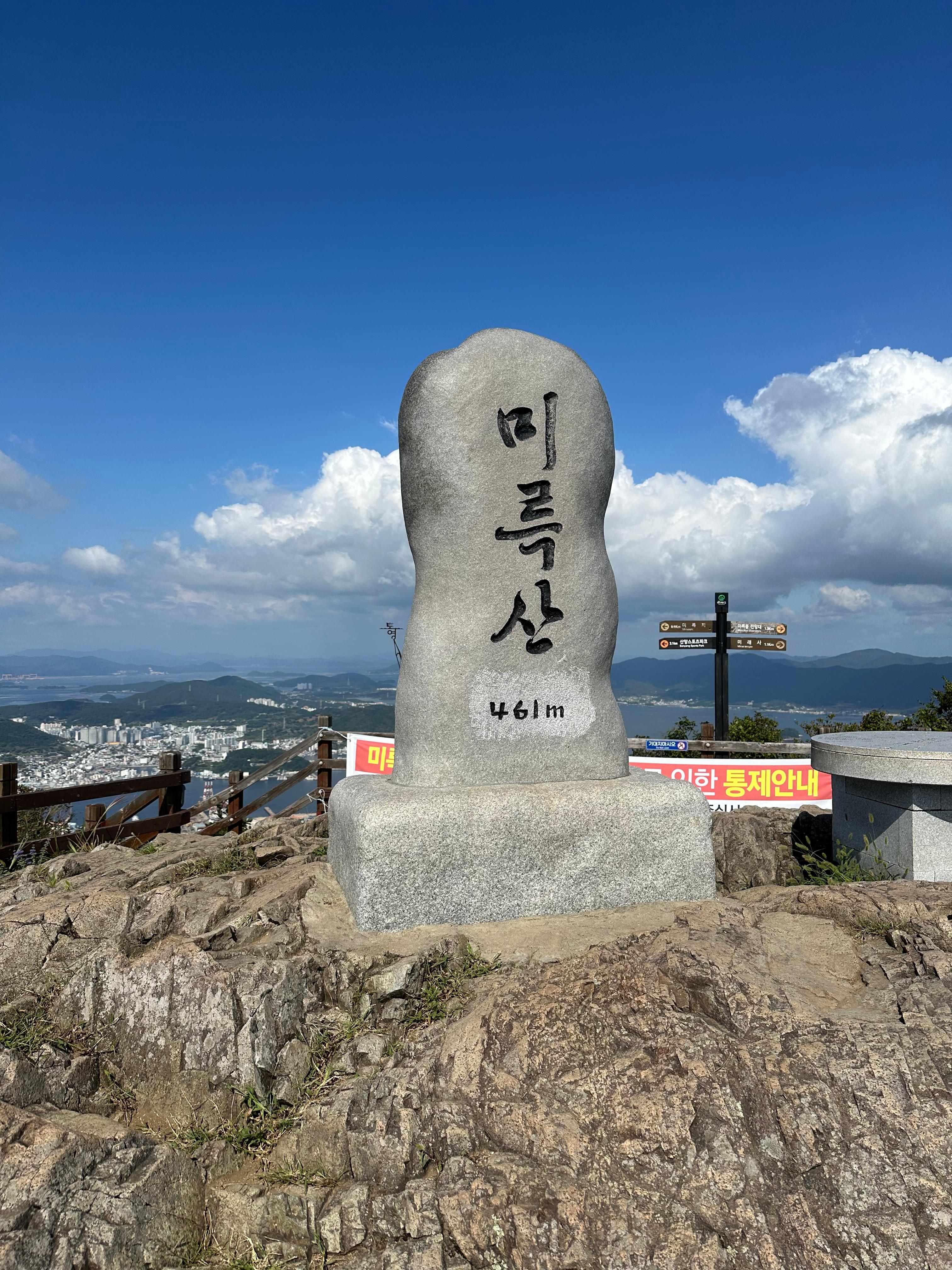 지난 2024년 엄청 더운 폭염은 추석날까지도 이어지다가 추석이 지나고 나니 조금은 서늘해졌습니다. 폭염이 사라지긴 했지만 추석지난지 일주일이라 아직까지는 더웠습니다. 그래도 정상 위 바위 앉아 쉬는데 서늘한 바람이 불었고 땀이 식고 저는 내려갔습니다. 미륵산은 2015년 KBS방영했던 학교2015 후아유 드라마의 촬영지였는데요.