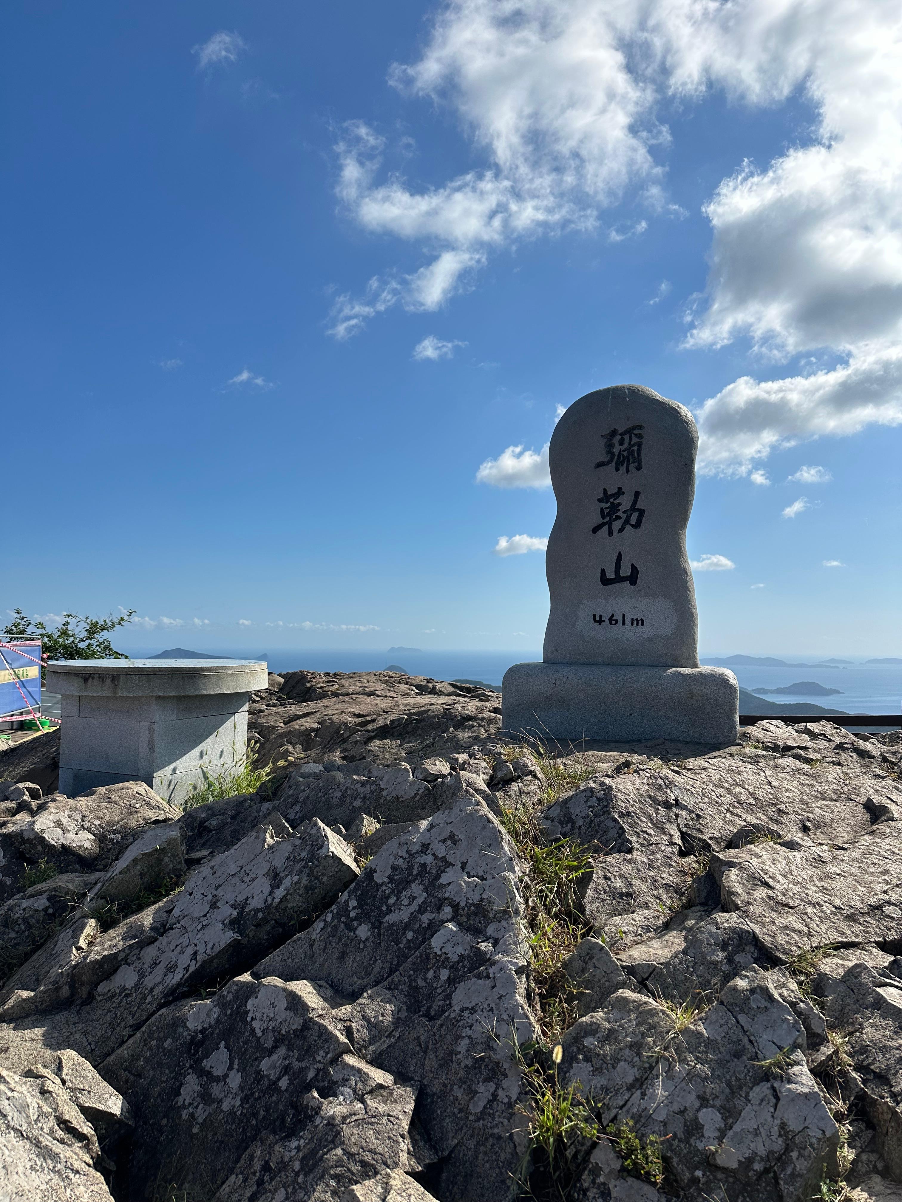 미륵산 정상까지는 461m라는 낮지도 높지도 않은 규모입니다. 케이블카가 없던 시절에는 미륵산이라는 글씨가 보이는 비석 뒤편으로 사람들이 올라가고 내려올 수 있었는데요. 케이블카 등장으로 등산객보다 더 많은 관광객이 유입되고 있습니다. 또한 정상 위에서 작은 섬들과 바다가 바다와 산이 보이며 아름다운 곳은 통영이아닐가 싶습니다.