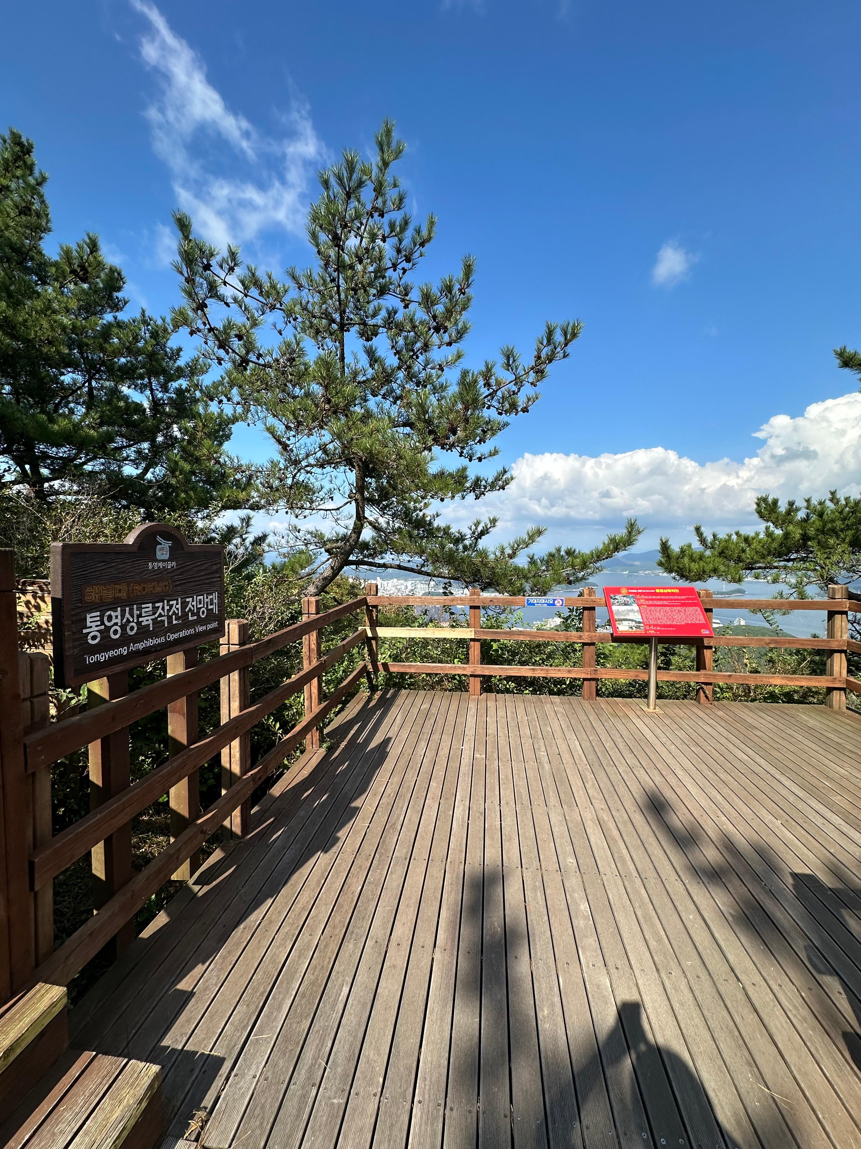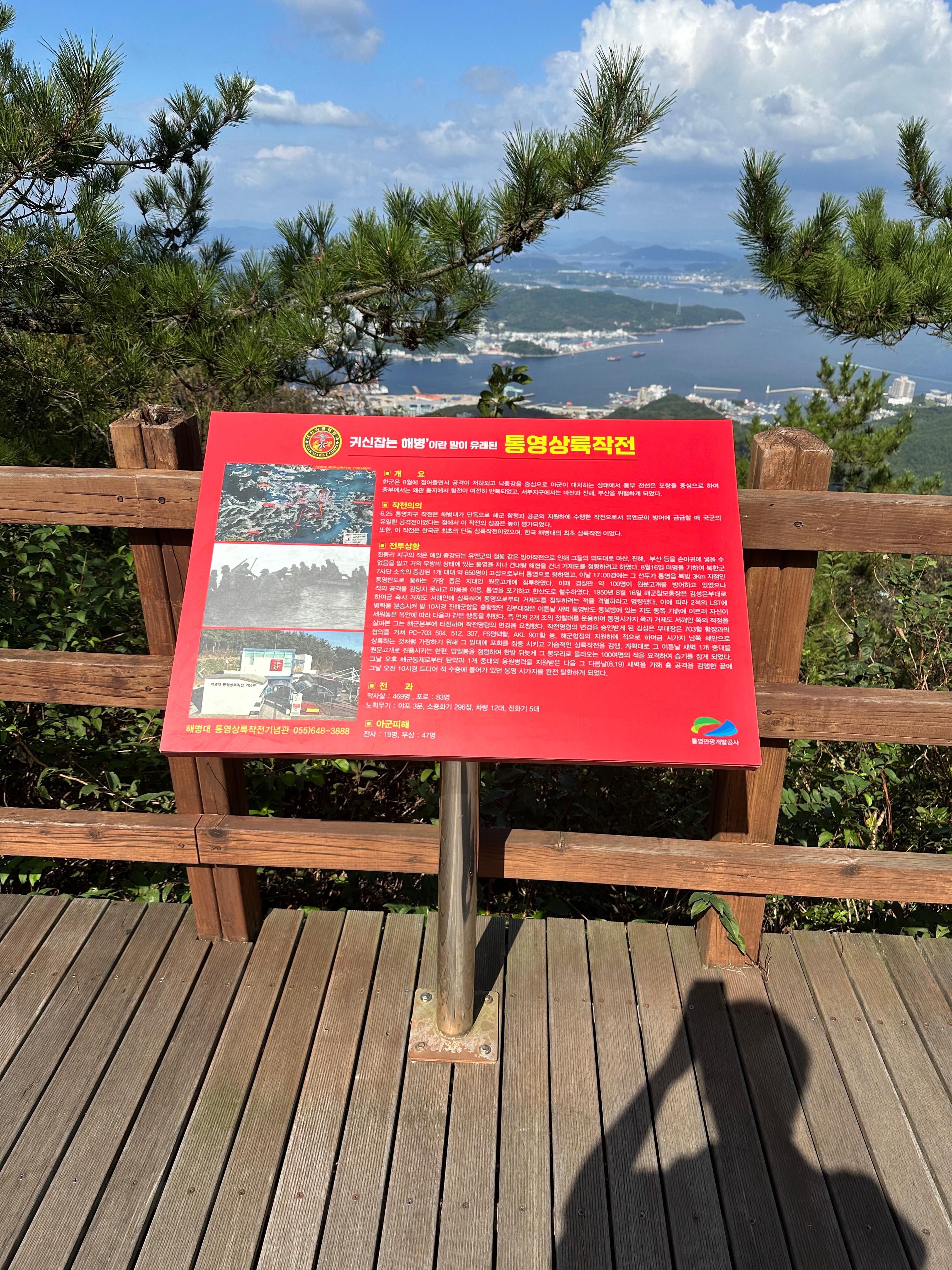 사실 신선대전망대까지 왔다고 하면 미륵산 정산까지는 앞으로 10분도 안남았다고 보면 되는데요. 물론 나이가 젊고 체력이 좋은 남녀라면 5분이면 금방올라갑니다. 올라가는 길 중간에는 통영상륙작전 전망대도 볼 수 있었는데요. 우리나라가 625전쟁이 일어났을 때 이곳 미륵산 정상 올라가는길에도 통영상륙작전이라고 해서 일어났다고 해요. 귀신잡는 해병이 유래된 곳이 바로 이곳 통영 미륵산에서 통영상륙작전에서 유래되었다고 해요.