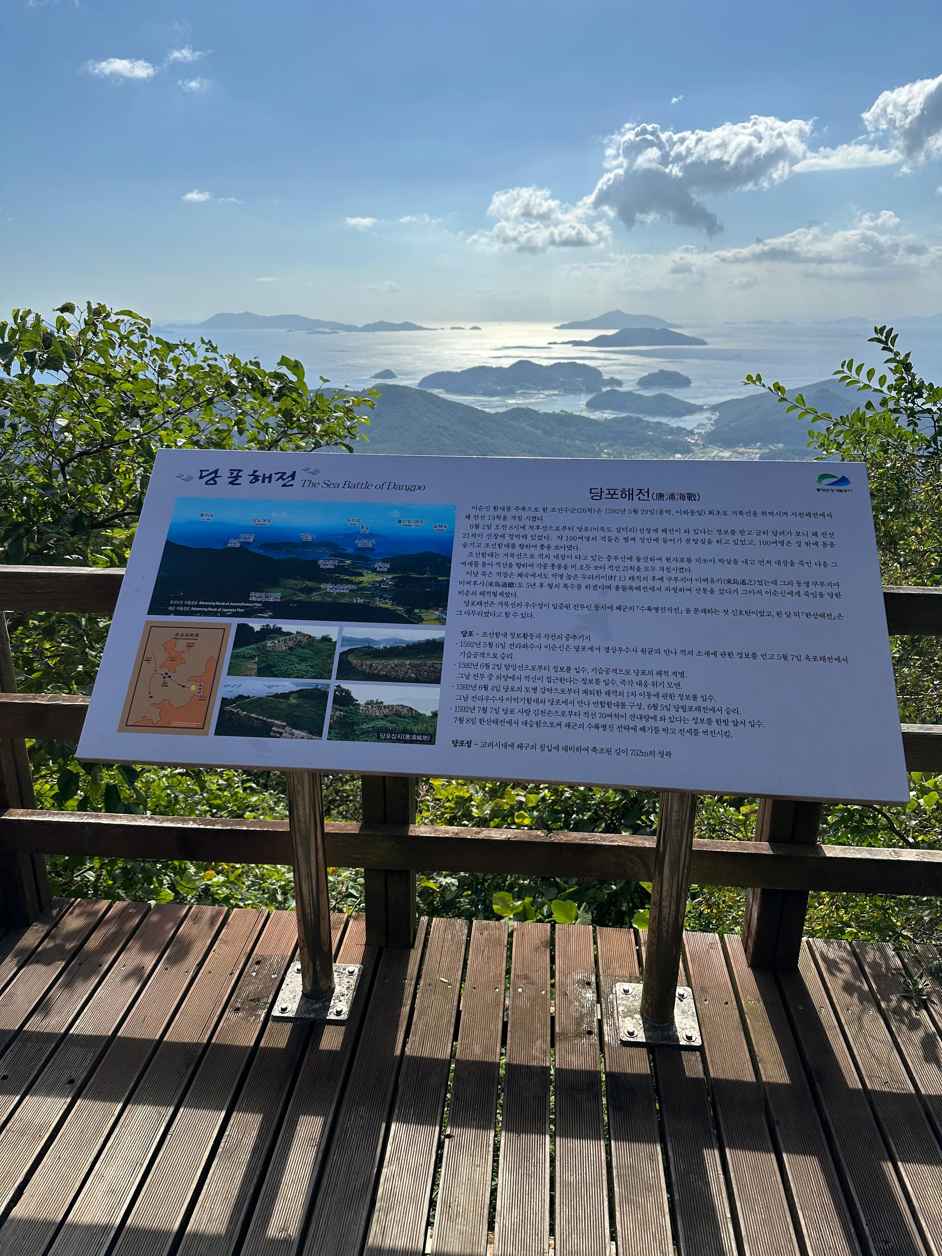 박경리묘소를 지나 당포해전 전망대가 계단 아래에 있었습니다. 당포해전 전망대와 박경리묘소 전망 쉼터는 통영의 도시가 아니 시골과 통영의 작은 섬들이 보이는 조용한 뷰였습니다. 사실 통영도 시골입니다. 워낙에 관광객이 자주 찾고 티비와 인터넷 매체를 통해 알려지다보니 관광지로 유명해지다보니 시골이 아닌 도시의 모습을 갖춘것 같습니다.