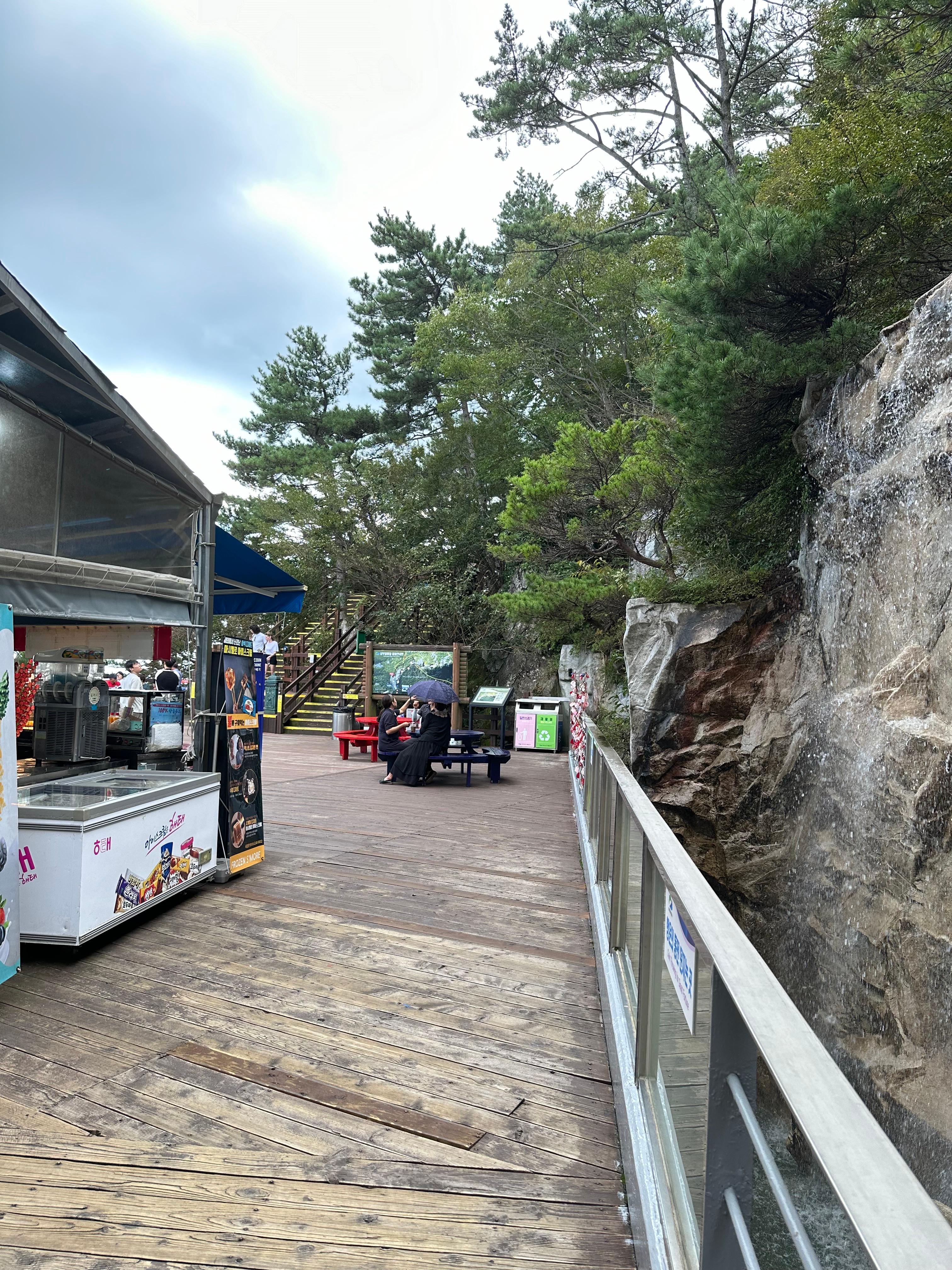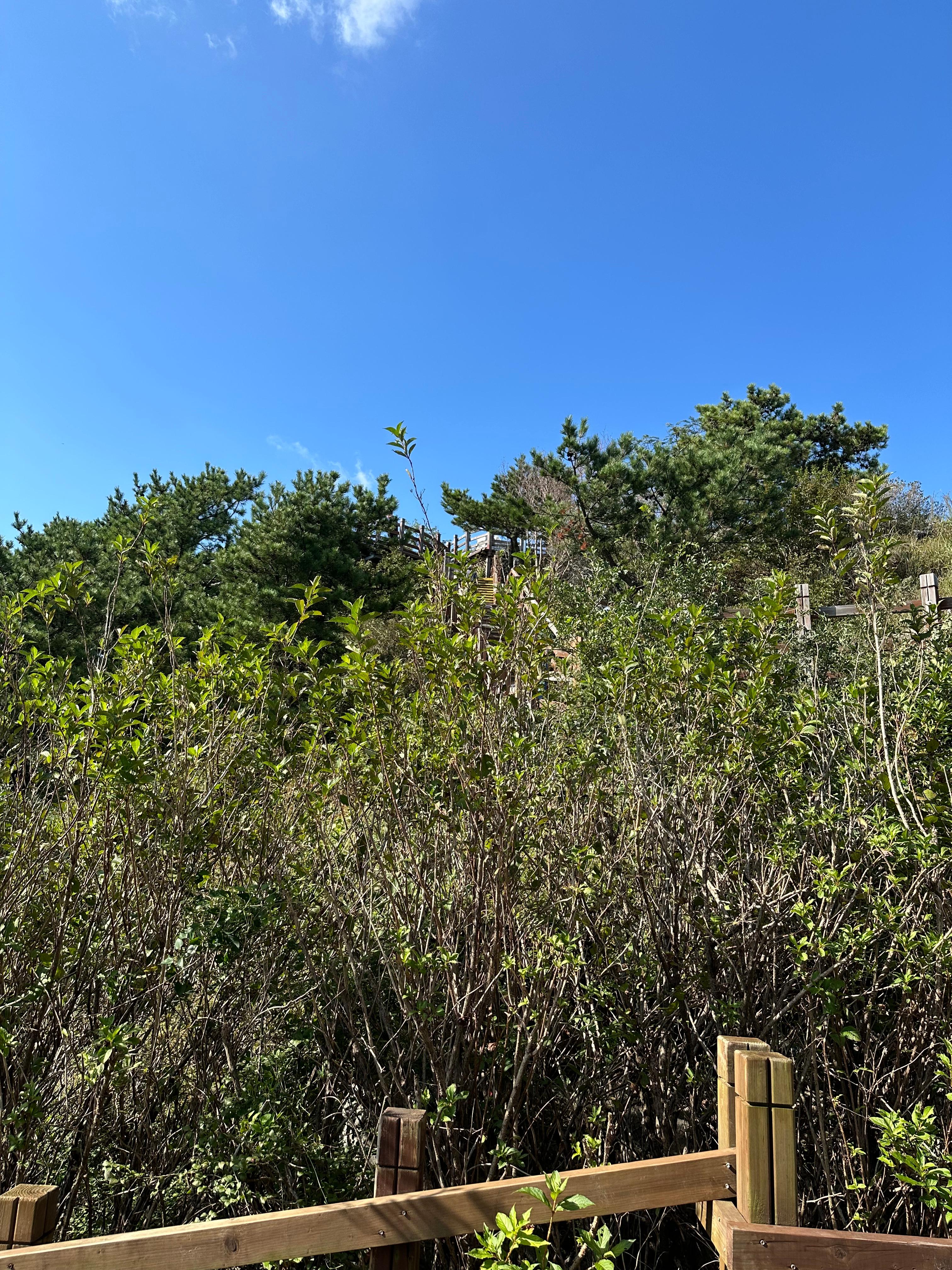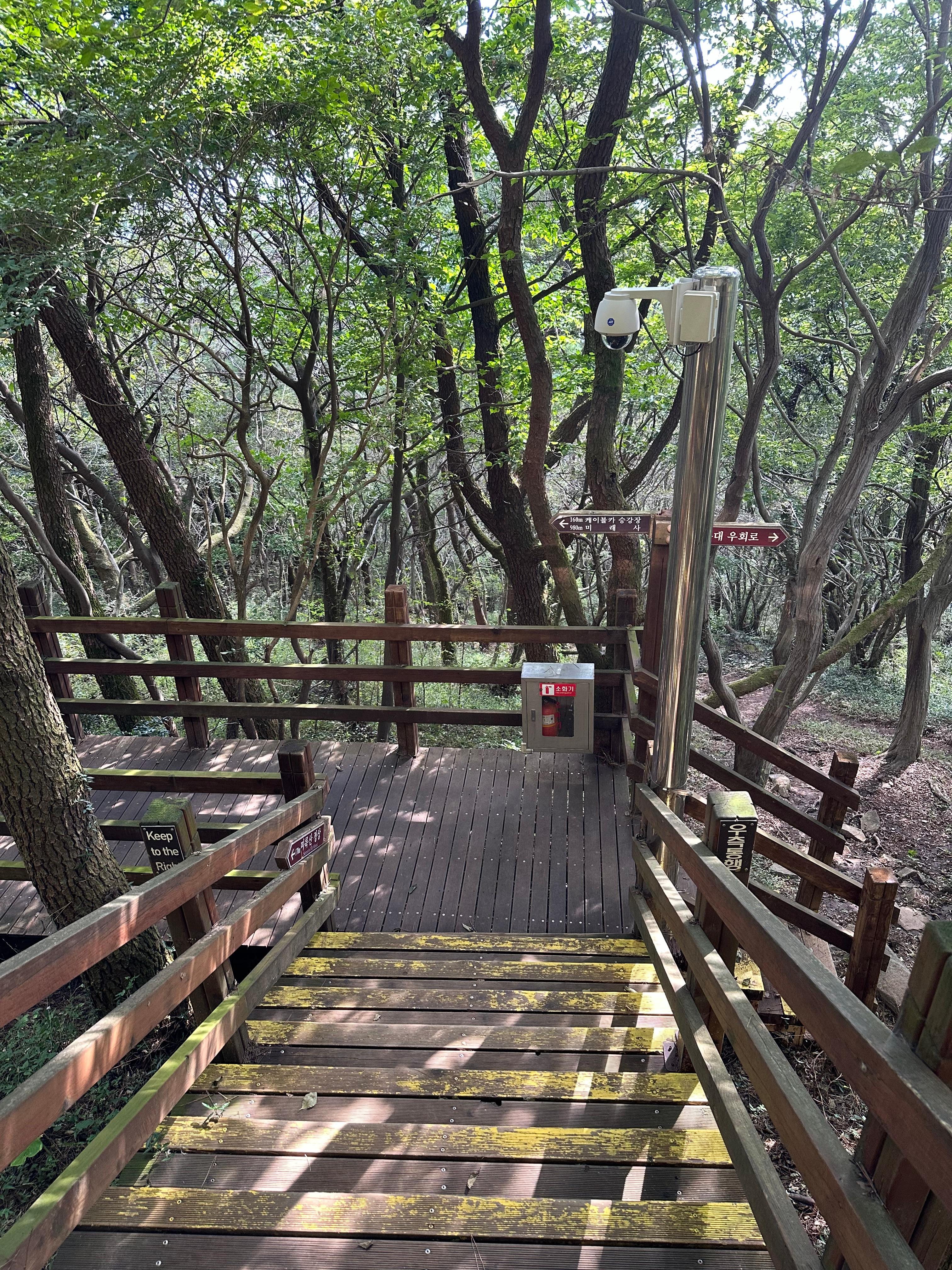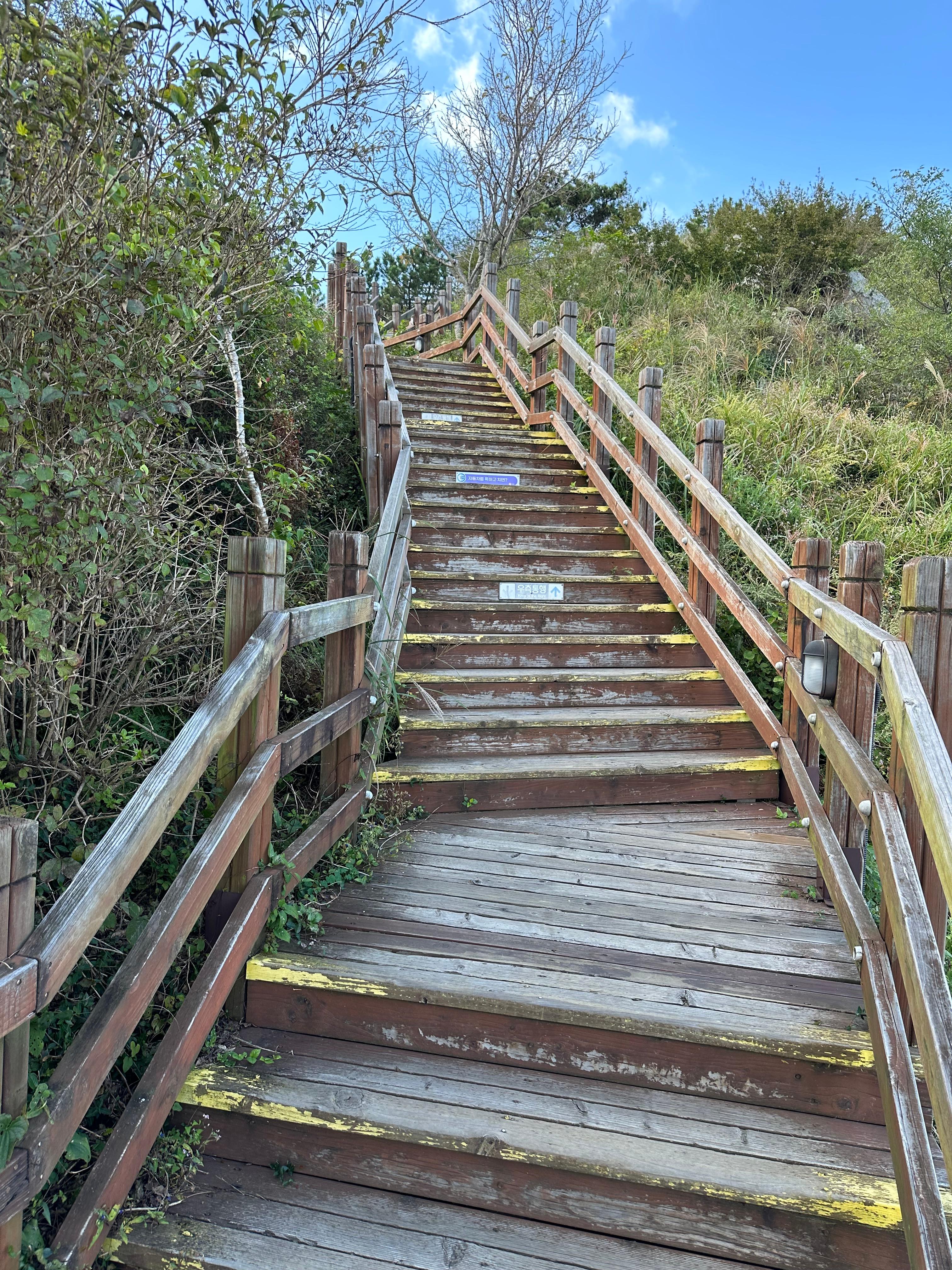 내려가는길은 올라가는 길에 비해 더 빨리 케이블카 상부정류장까지 빨리 도착할 수 있었습니다. 박경리묘소 전망쉼터와 당포해전 전망대를 지나니까 처음 보았던 숲길 계단을 다시 마주하게되었습니다. 1년에 한두번은 꼭 찾는 통영이지만 여전히 하부 승강장으로 내려가기 싫었습니다. 추석이 지난 가을에 도입하는 계절이라 선선했습니다. 숲길 사이에서 가만히 서서 자연을 그대로 보고 느끼는데 너무 좋았습니다.
