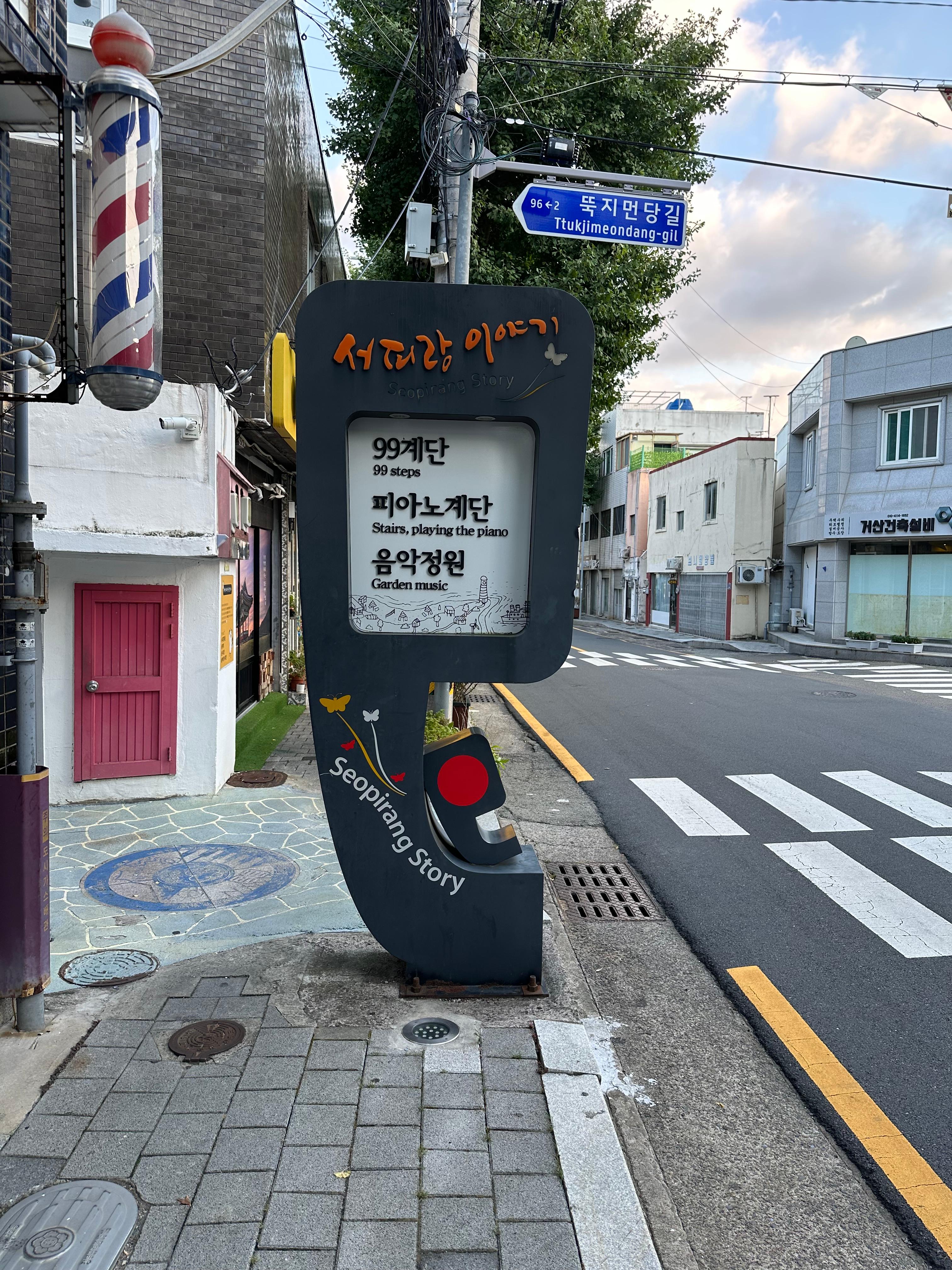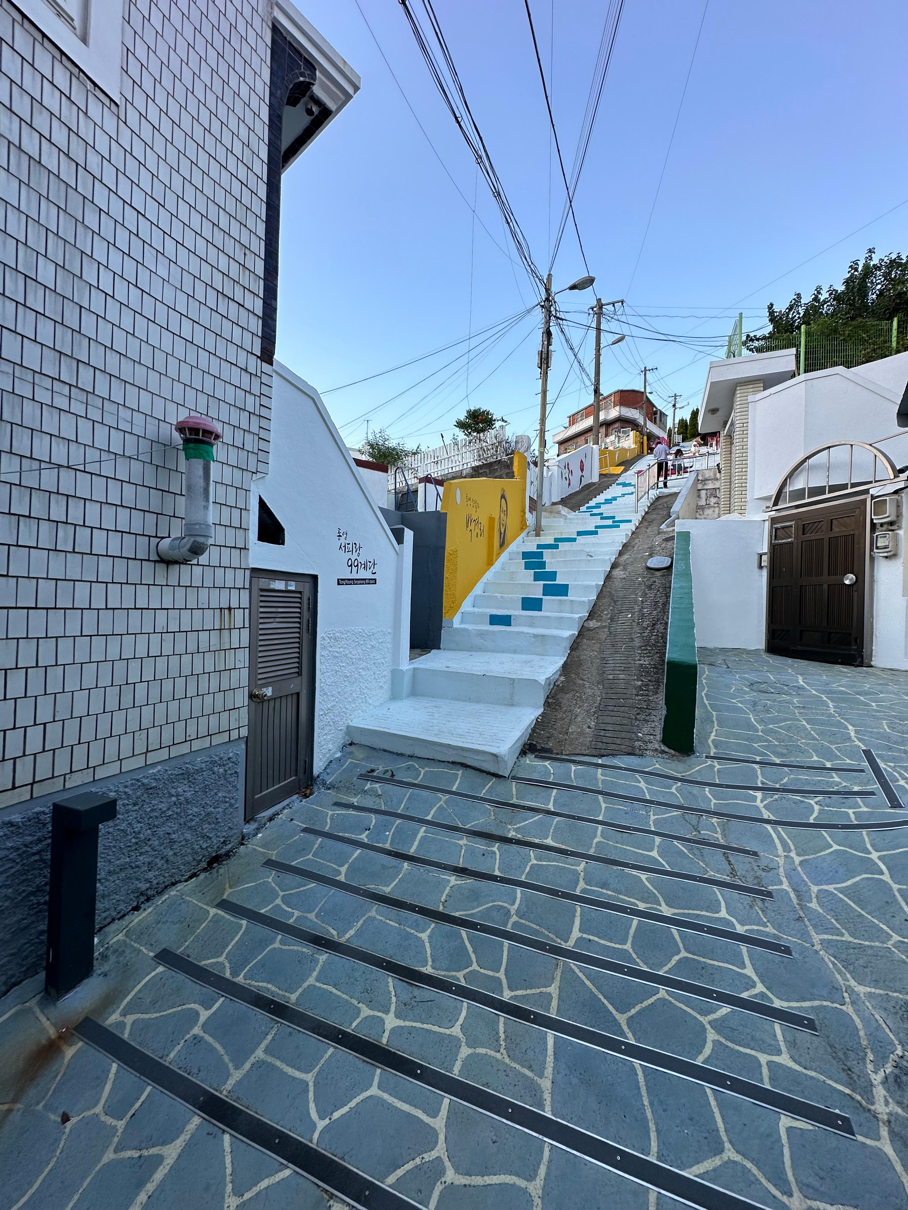 - 동피랑 마을과 다르게 강구안에서 떨어져 있기는 하지만 친절한 네이버지도나 카카오맵 따라 걸으면 99계단, 피아노계단, 음악정원까지 금방 갈 수 있습니다.