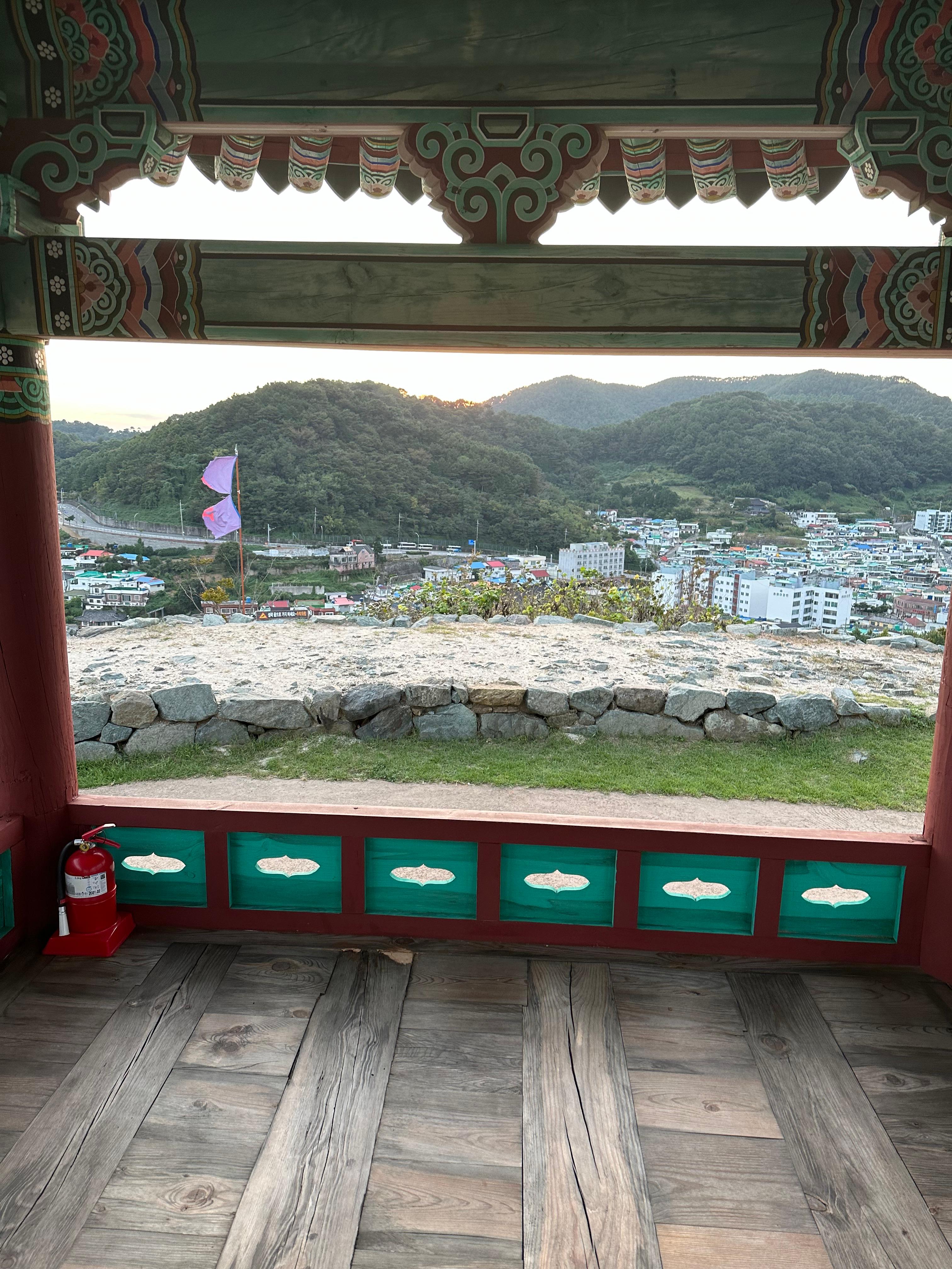 제가 추석 지나고 바로 그다음주에 와서 그럴 수도 있구요. 서피랑은 두번째 여행이긴 하지만 조용하다는게 특징입니다. 서피랑공원 입구에서 빠른걸음으로 5분이면 금방 올라올 수 있습니다. 서포루 정자 위에서는 멀리로는 강구안 바다와 서쪽 통영 서피랑 마을의 전망을 볼 수 있습니다. 특히 해가 짧지 않은 9월의 날씨로 18시가 넘었는데도 아직은 해가 떠있었습니다. 특히 서피랑 마을 정상위에 있는 서포루에서 바라보는 일몰을 기가막히게 아름다웠습니다.