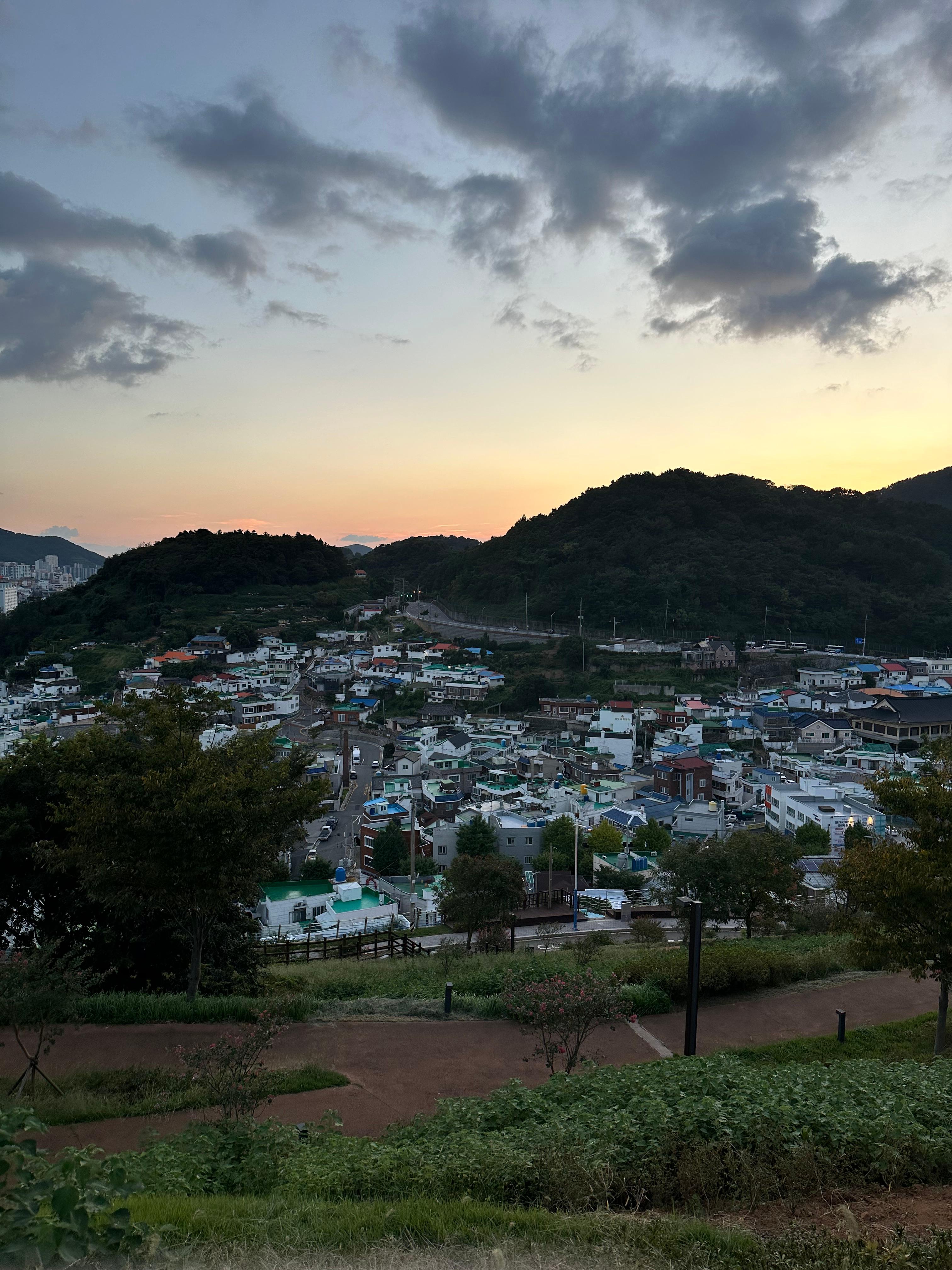 추석이 지나다보니 6월과 7월, 8월 여행할 때보다는 해가 많이 짧아졌다는 것을 볼 수 있습니다. 지난 6월 송도해상케이블카를 타러갔을때는 8시가 넘어도 어둡지 않은 것을 볼 수 있는데요. 확실히 추석이 지나니까 폭염도 누그러들고 해도 빨리지는 것을 볼 수 있습니다. 당시에 오후 18시가 넘으니까 서피랑공원과 서피랑 마을에는 해가 지고 일몰의 모습을 볼 수 있었습니다. 정말 지난 2024년 추석은 너무 더웠습니다. 올해 2025년 여름이 오지 않았으면 할정도로 너무 더웠습니다. 날이 빨리 어두워지다보니 저도 서포루에서 바라보는 일몰에서 아쉽지만 천천히 내려가기로 했습니다.