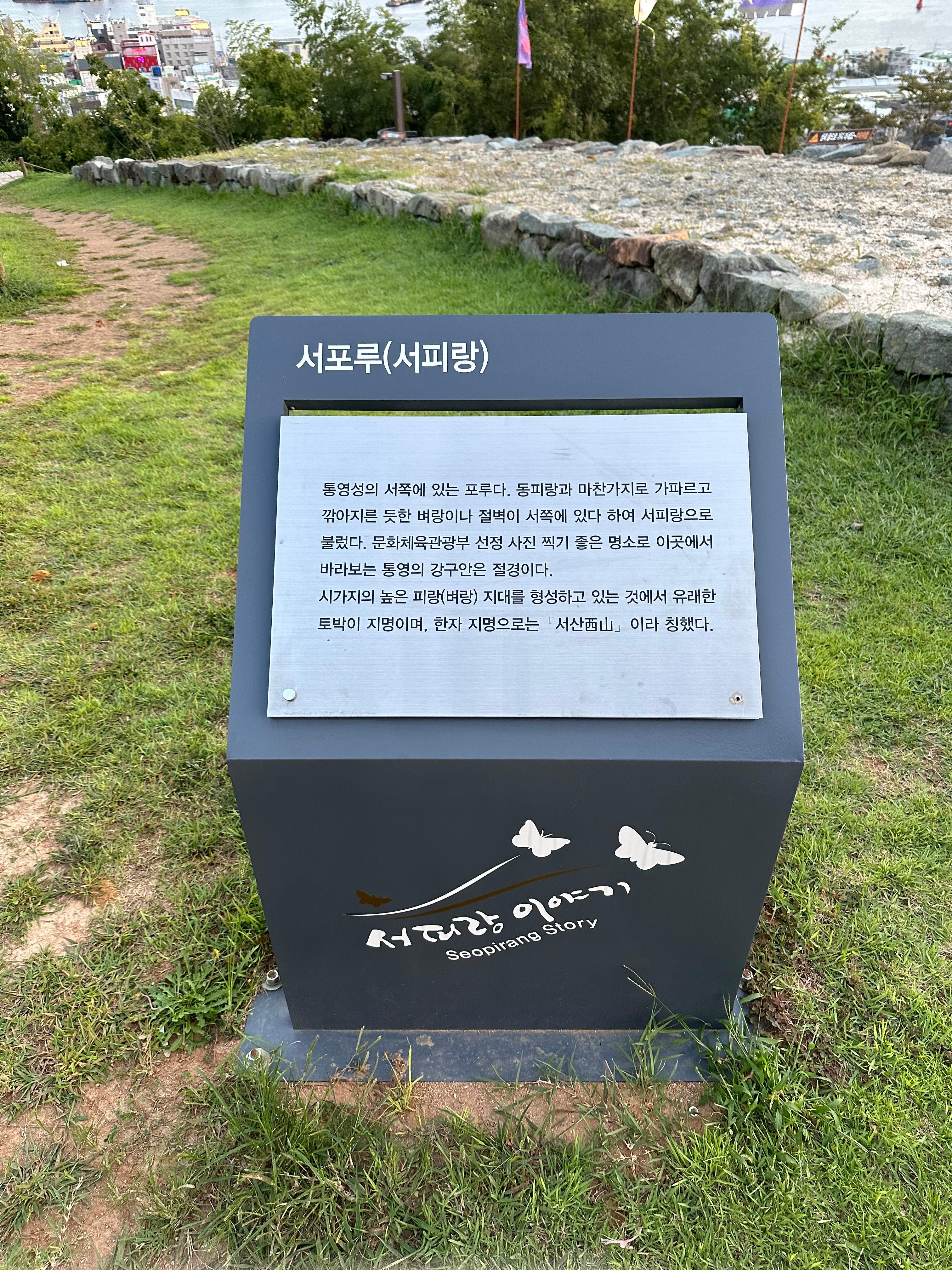 이상으로 통영 여행 10년 하면서 처음으로 들렀던 99계단과 음악정원을 지나 조용한 서피랑 마을 포스팅을 마치도록 하겠습니다. 통영에는 두개의 마을이 있습니다. 통영의 동쪽에는 동피랑 마을과 서쪽에는 서피랑 마을이 있습니다. 원래 이 이 두마을은 성안에 있는 마을이었습니다. 하지만 조선이 망하고 일제강점기를 거치면서 성곽들은 사라졌는데요. 서피랑 마을을 지나 서피랑공원위에는 아직도 당시 성곽이 모습들이 흔적과 함께 서포루가 있었습니다. 반대편 동피랑 마을에도 성곽의 흔적이 남아있었습니다. 한가지 포스팅하면서 아쉬운점은 원래 벌써 재작년이라고 하게 되는데요. 2023년 겨울 통영여행 때 서피랑 마을을 처음 갔습니다. 그리고 동피랑 마을도 함께 포스팅을 해서 올렸는데요. 어찌된 영문인지 해당 포스팅이 삭제가 되었습니다. 실수라고 생각하겠습니다. 하지만 당시에는 블로그 처음 하던 시절이라 심가네 해물짬봉 포스팅안에 서피랑마을과 동피랑 마을까지 포스팅 내용을 짬봉시켜서 이 포스팅이 무슨 포스팅인지 알 수 없는데요. 아무튼 삭제가 되고 다시 작성하지만 이번 2024년 9월 통영 포스팅에서 보너스로 동피랑마을과 심가네해물짬뽕까지 다시 한번 포스팅 해보려고 합니다. 통영 여행하면서 조용하면서 먼 강구안바다의 일몰을 보고 싶다면 서피랑 마을의 99계단과 자연과 함께 만들어진 음악정원 속 피아노 계단을 걸어보며 힐링하는 것은 어떨까요.