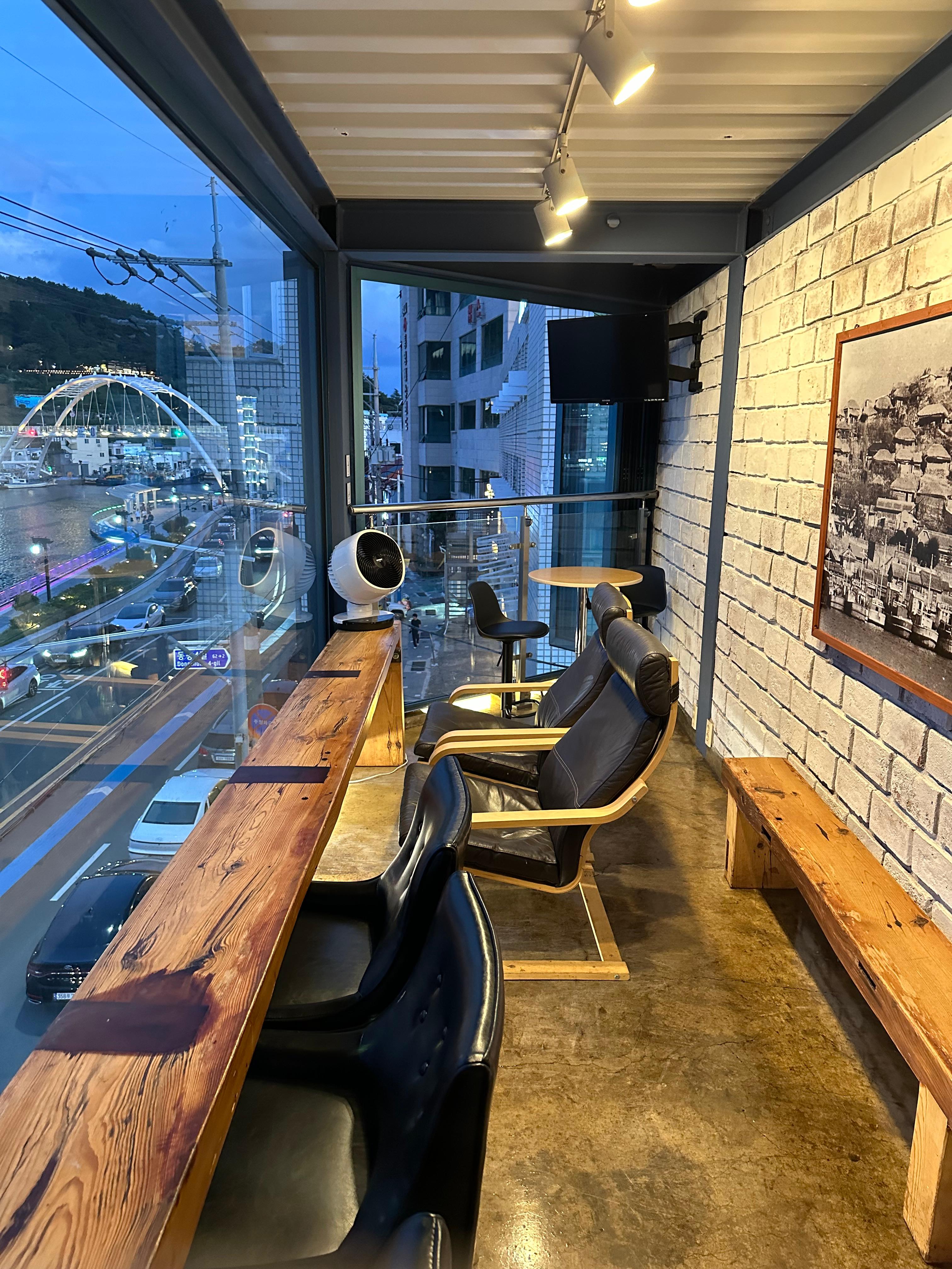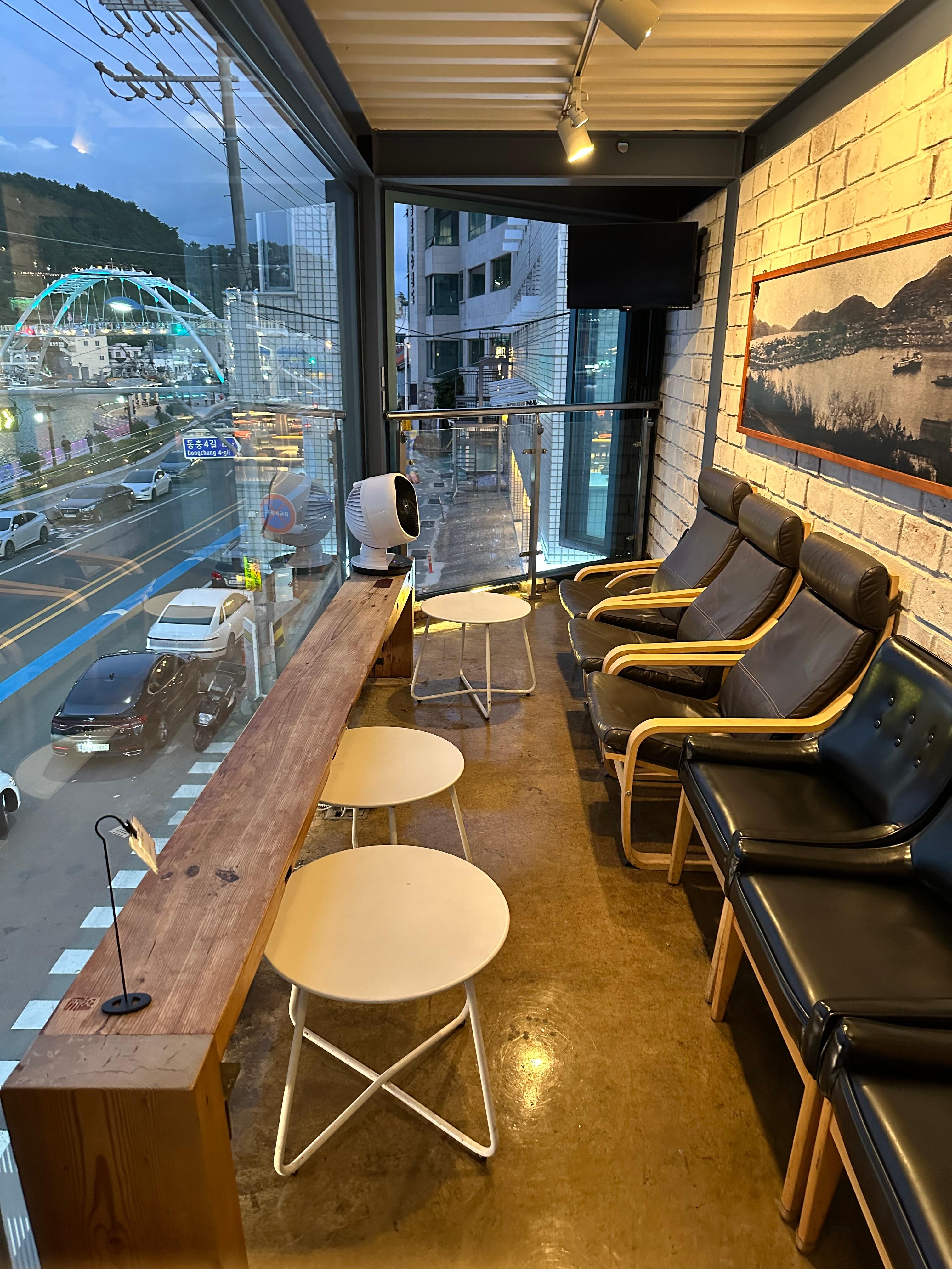 4층에는 끝에는 창문이 열려있어서 바다 느낌과 냄새가 그대로 느낄 수 있었습니다. 아직은 추석이 지난지 일주일밖에 지나지 않아서 창문을 열어두었던 것같습니다. 에어컨도 있긴 하지만 좌석 앞에는 미니 선풍기와 서큘레이터가 보였습니다.