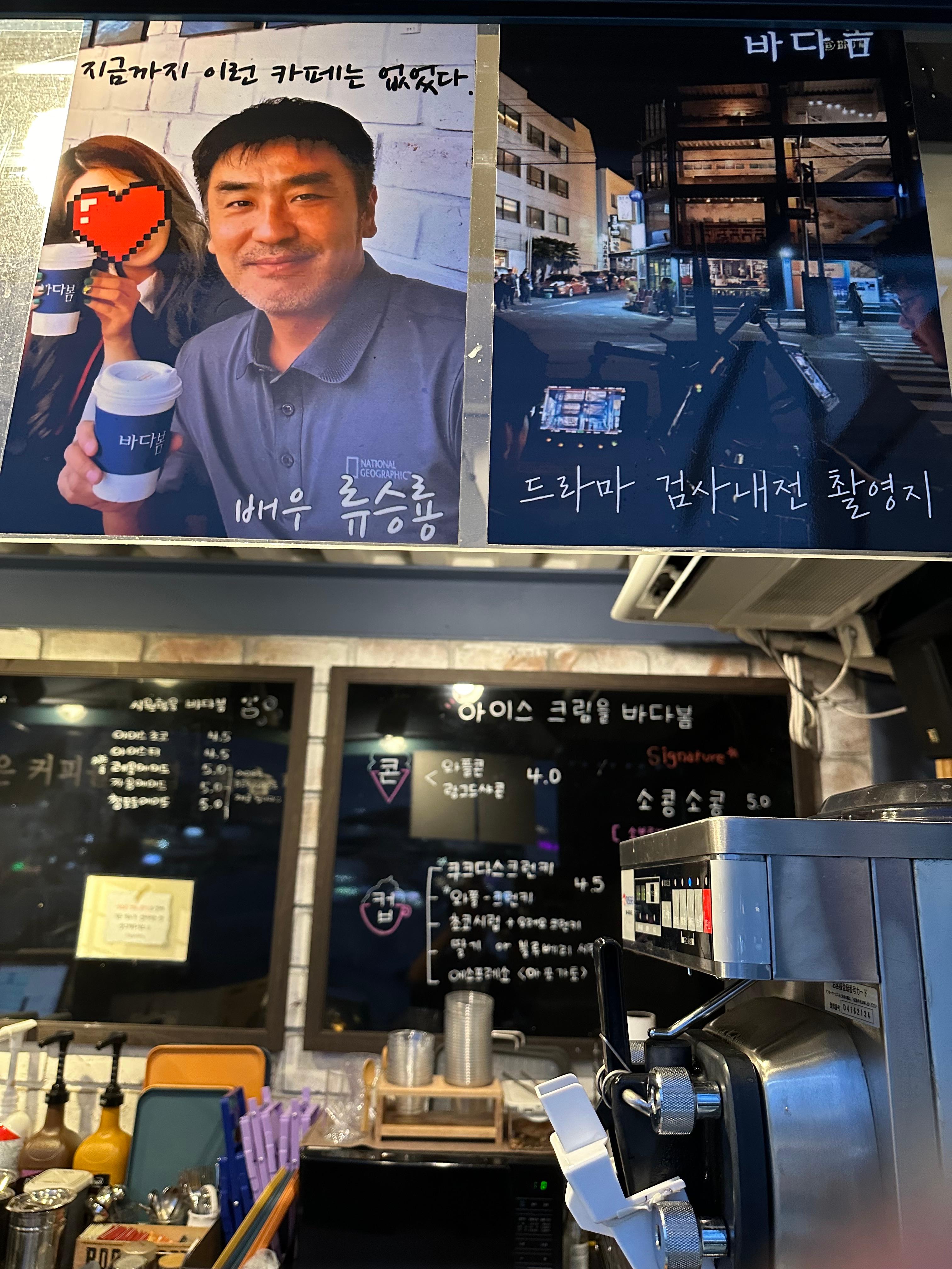 통영 바다봄 카페는 드라마 촬영지로도 유명한데요. 통영 역시 드라마로 유명하기도 합니다. 드라마 뿐만 아니라 예능에서도 나왔는데요. 10년전 1박2일에서 우짜가 나오면서 당시 통영으로 처음 여행왔던 저는 내일로 여행러들과 함께 첫 통영에서 우짜를 먹어보았습니다. 우짜는 우동과 짜장의 조합으로 통영에서 유일하게 먹을 수 있습니다. 다시 돌아가면 통영 바다봄 카페에는 드라마 검사내전의 촬영지였습니다. 저는 검사내전은 보지않았지만 검사내전의 촬영지였다고 합니다. 드라마 닥터슬럼프 배우 박신혜와 류승룡이 방문했던 사진도 볼 수 있었습니다.